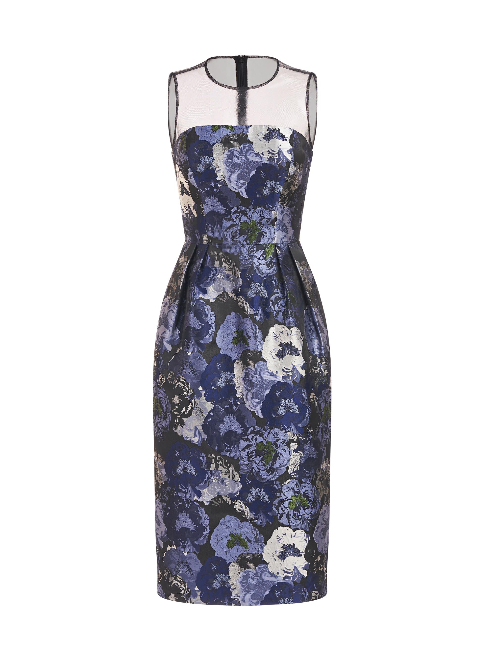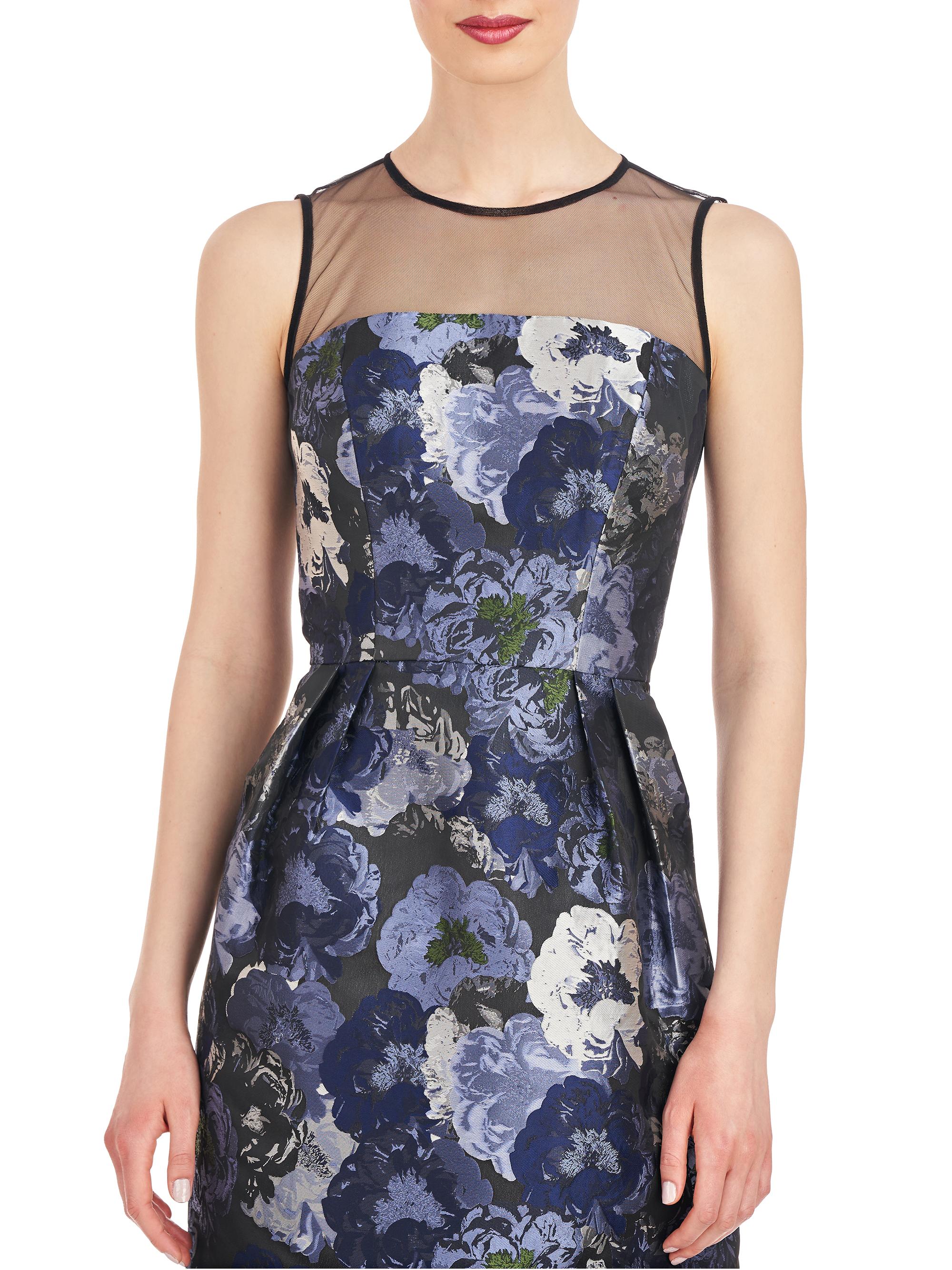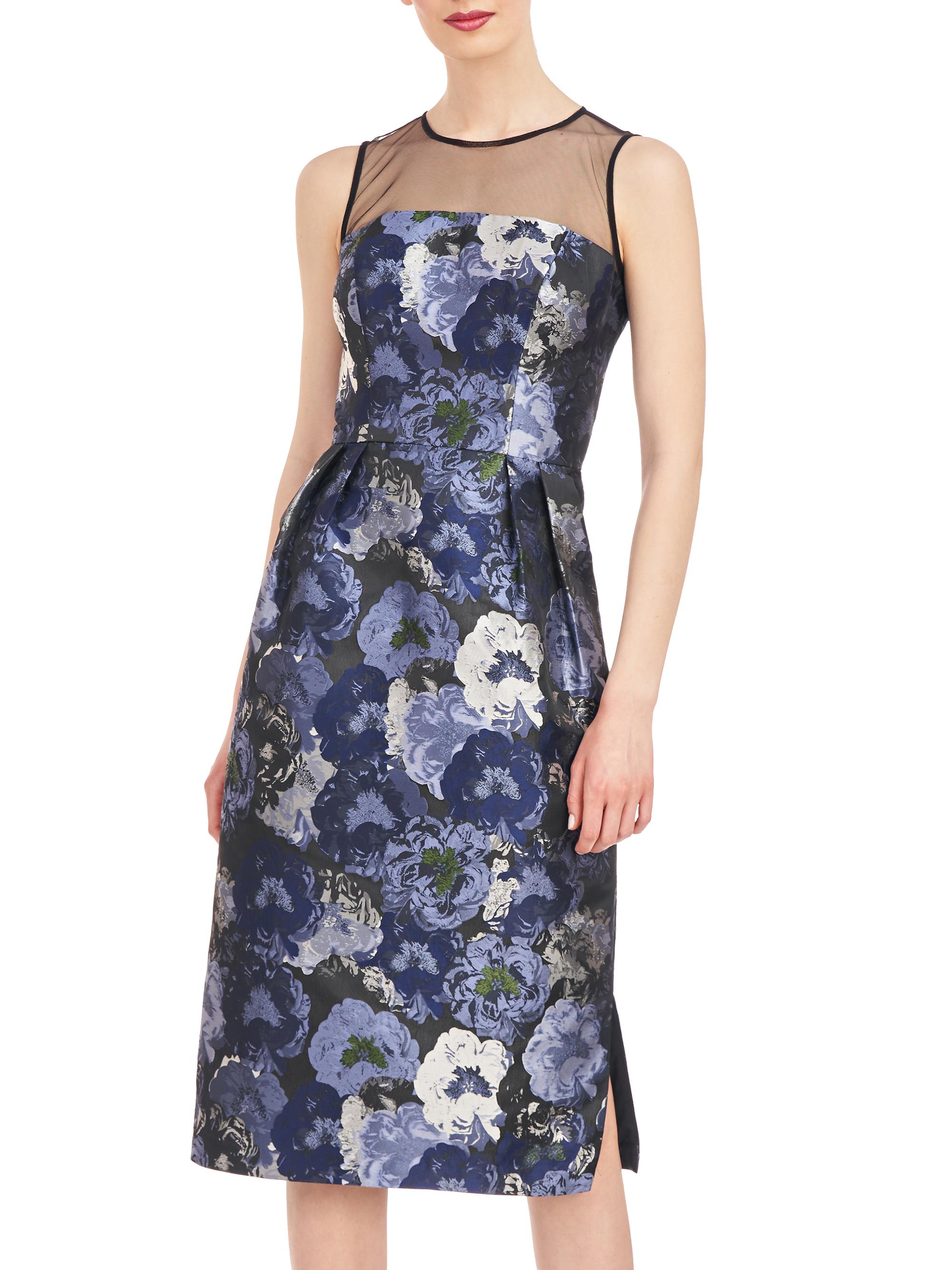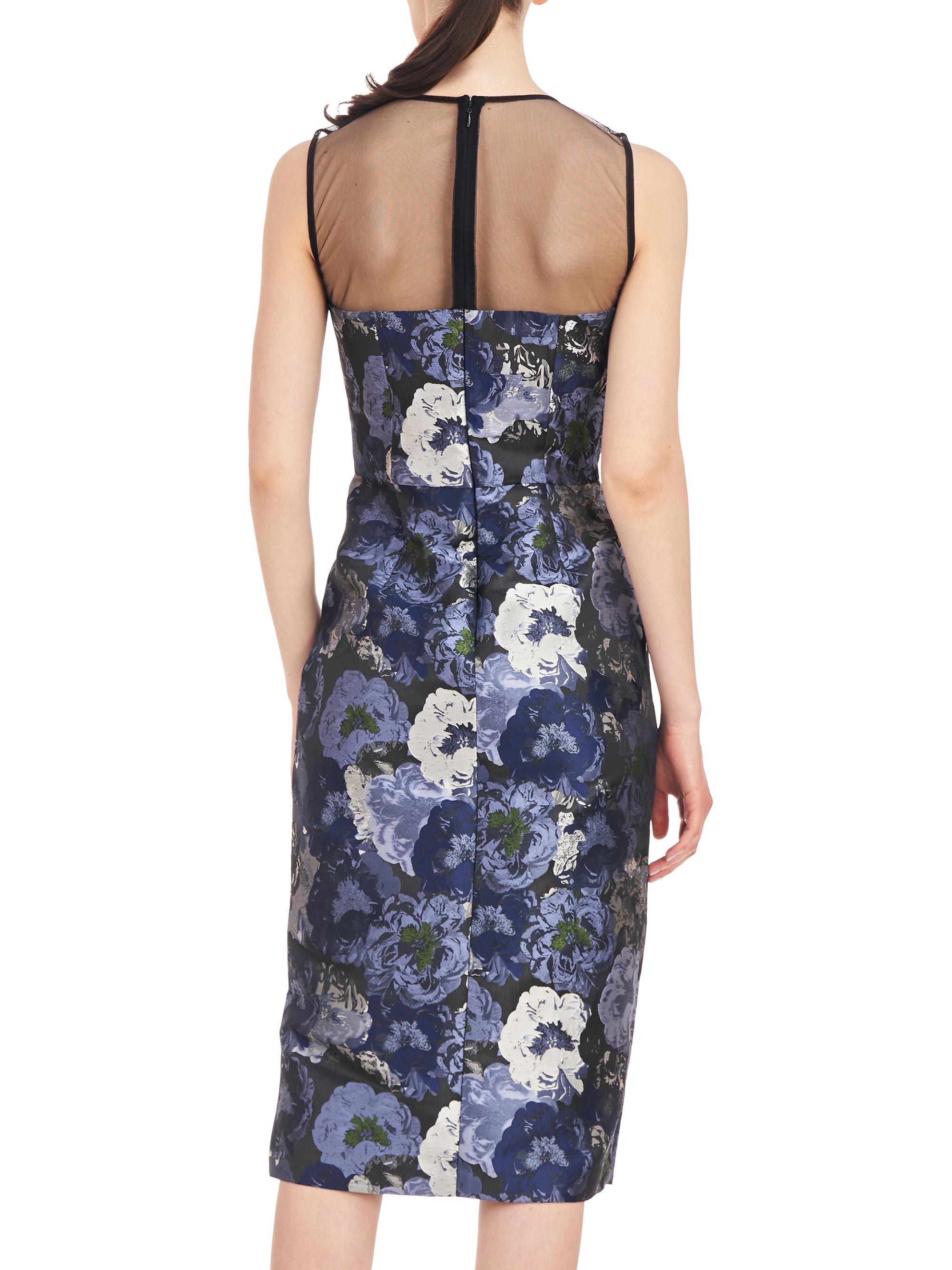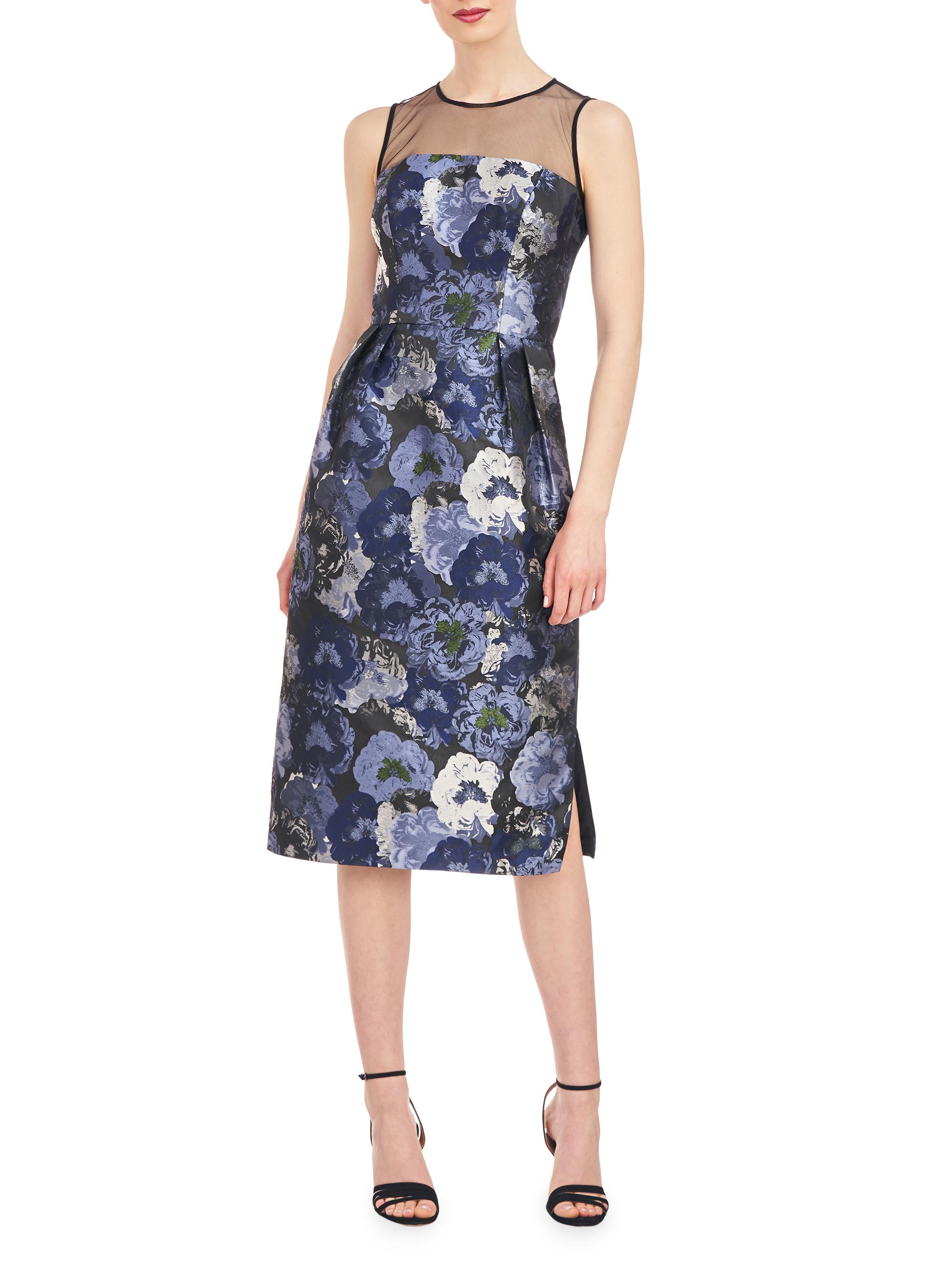 Kay Unger Dottie Floral Jacquard Illusion Midi-Dress