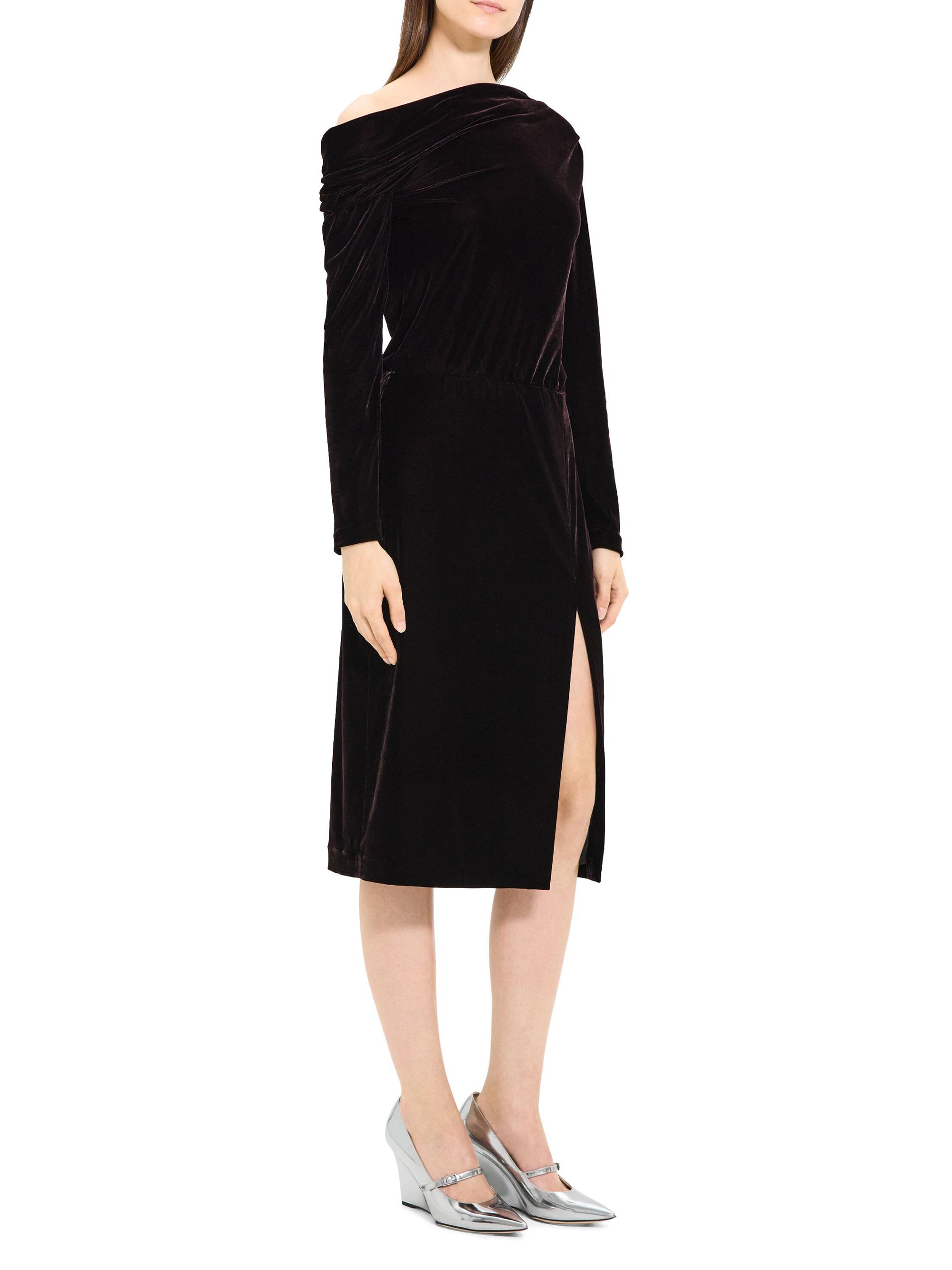 Theory Off-The-Shoulder Velvet Midi-Dress
