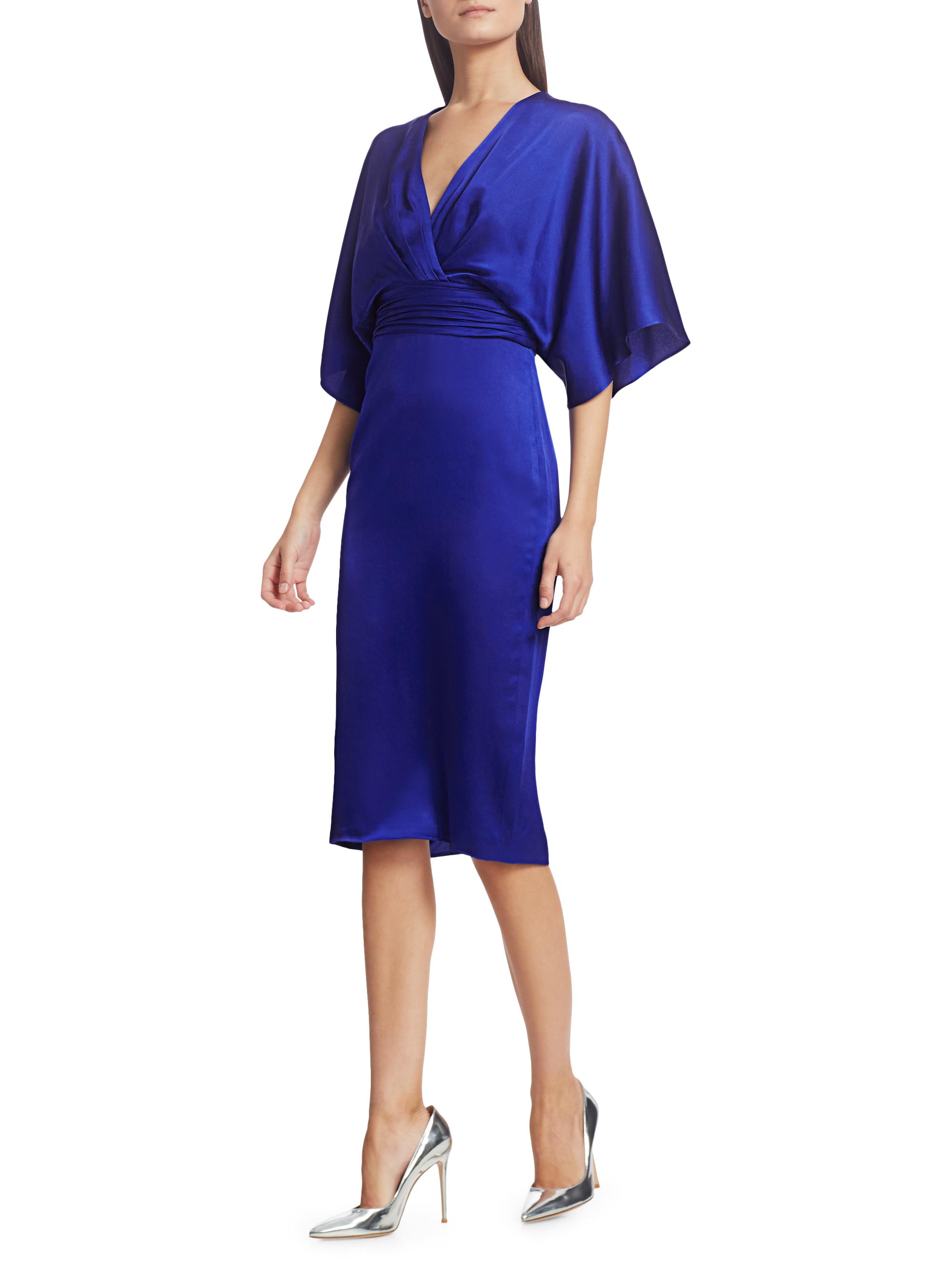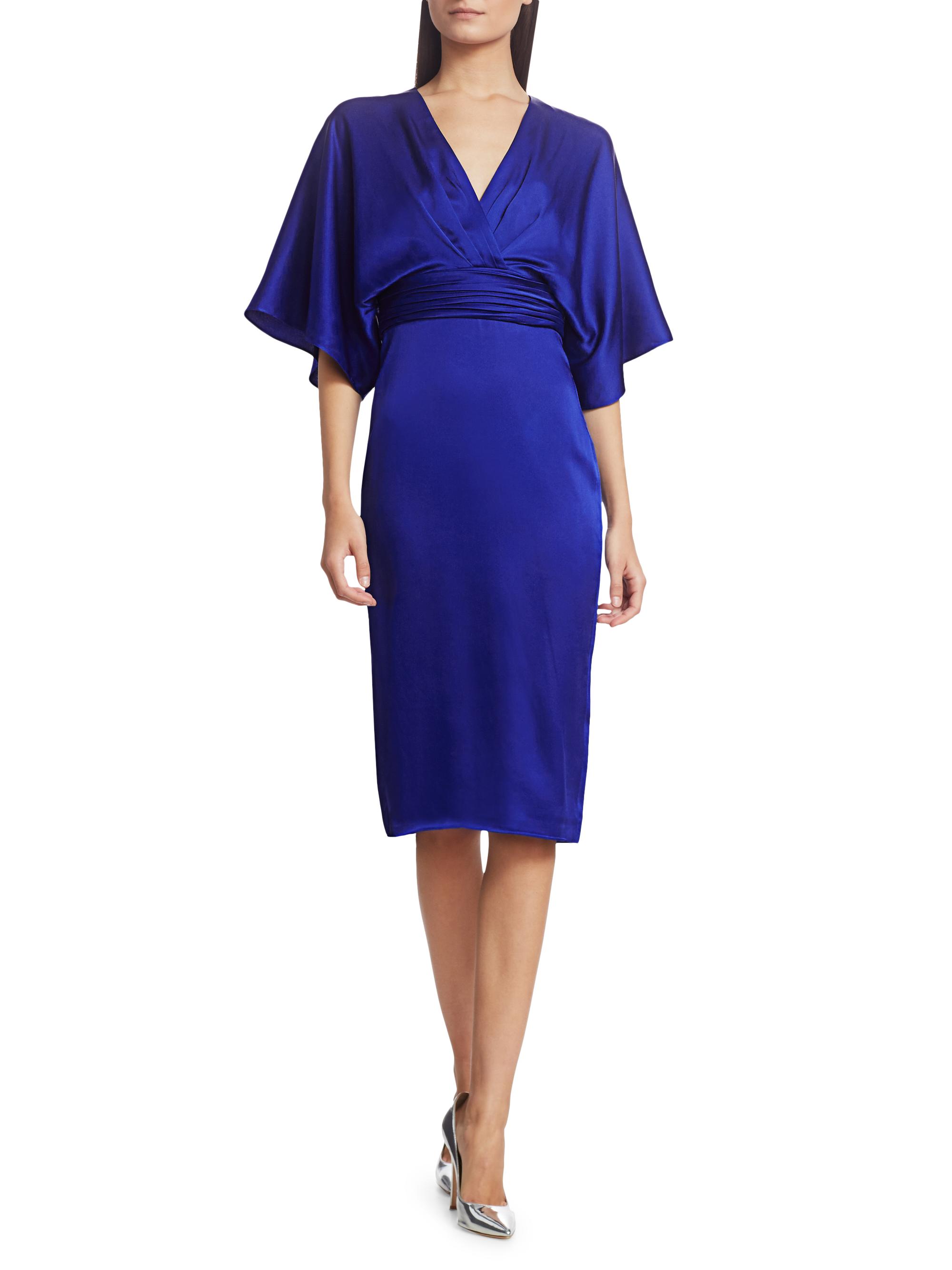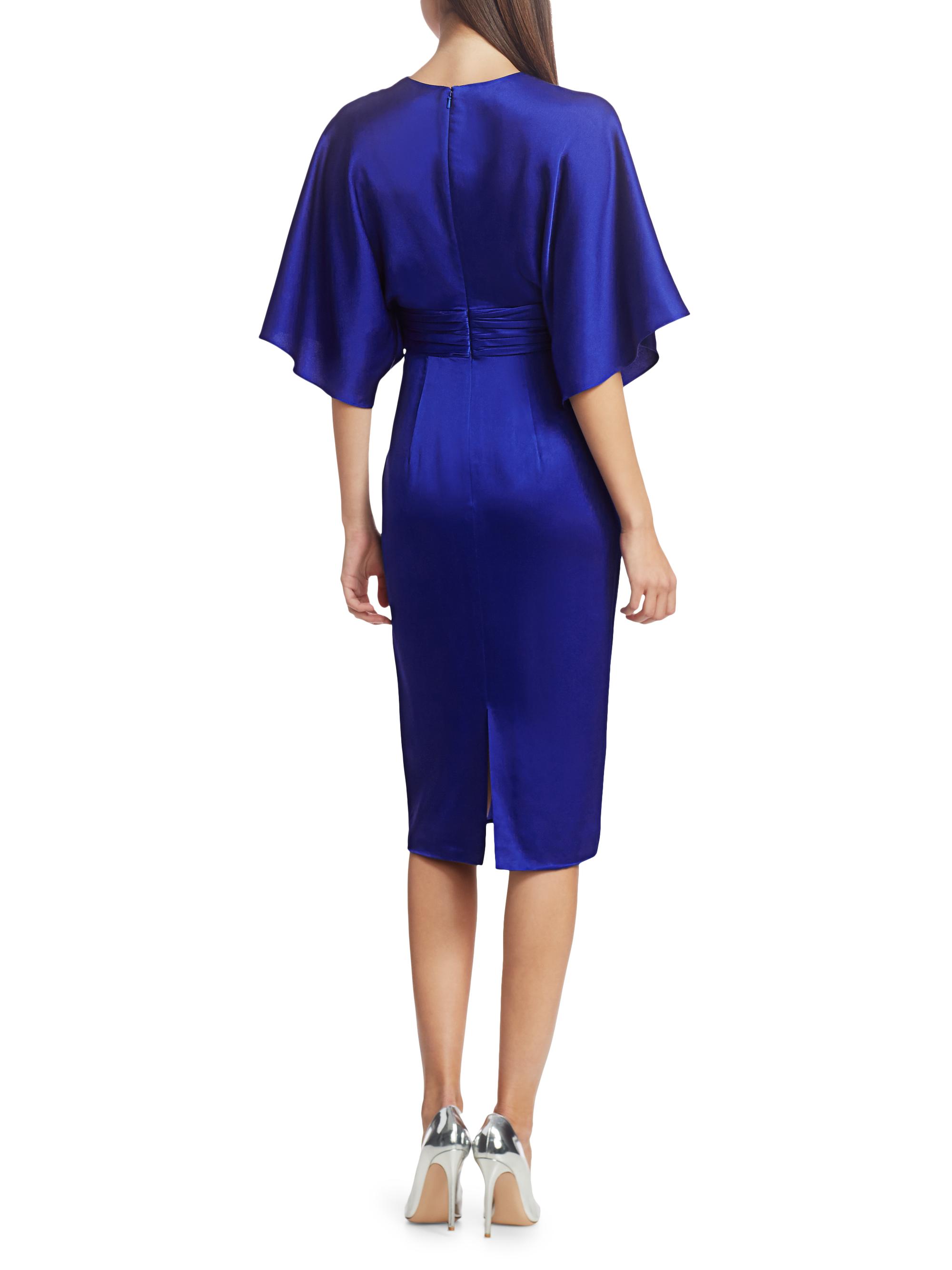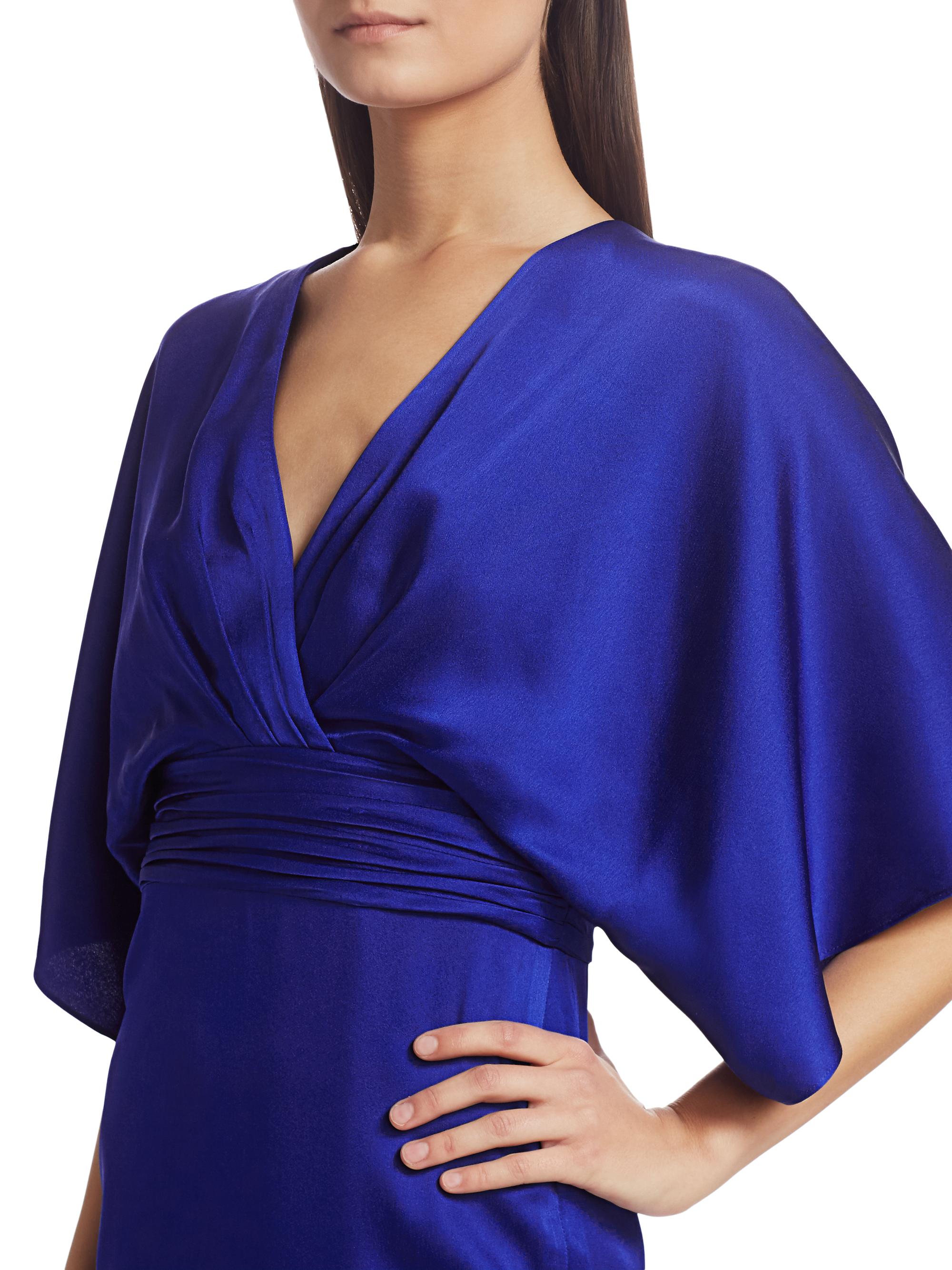 Theia V-Neck Satin Dress