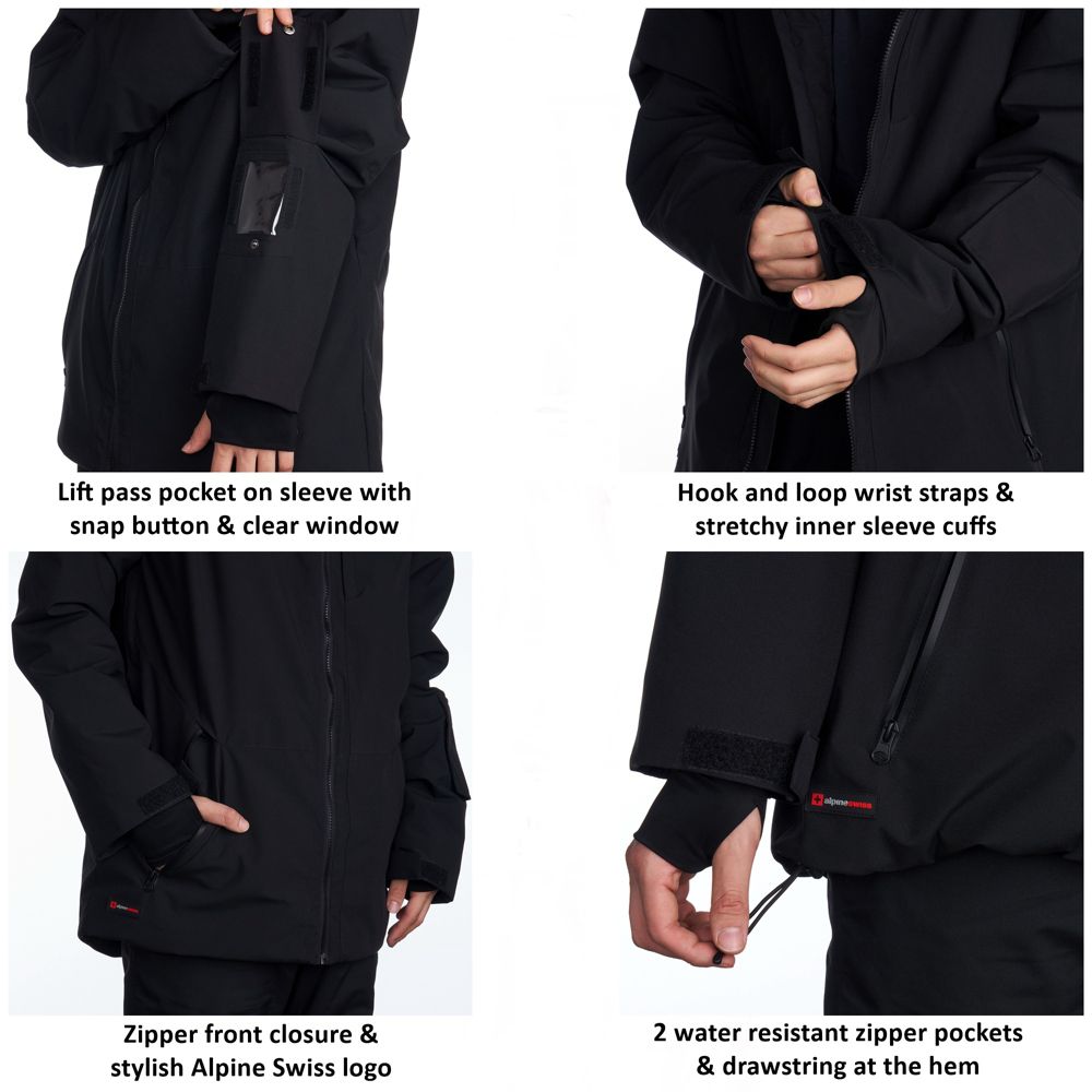 Alpine Swiss Mens Waterproof Ski Jacket Snowboarding Winter Snow Coat Raincoat