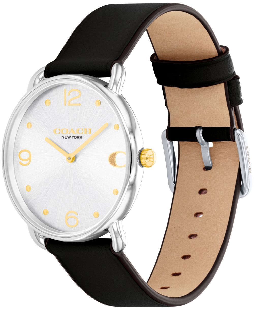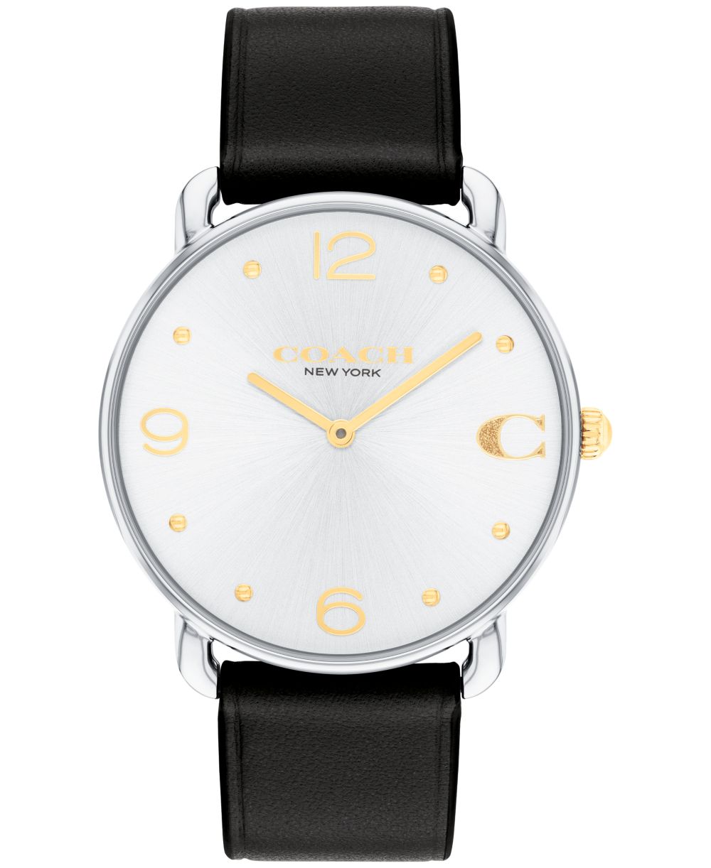 COACH Unisex Three Hand Quartz Black Leather Strap Watch 36mm