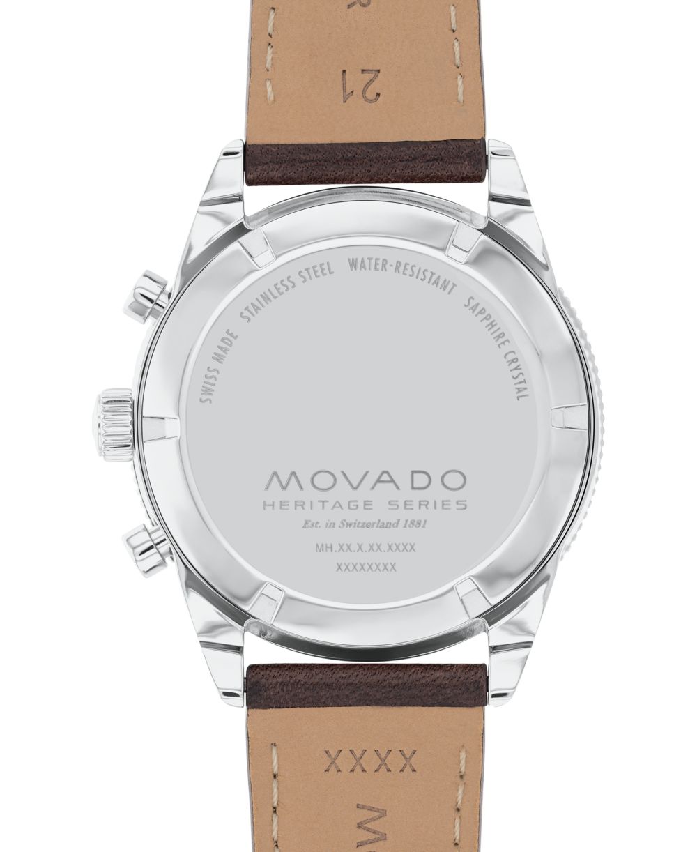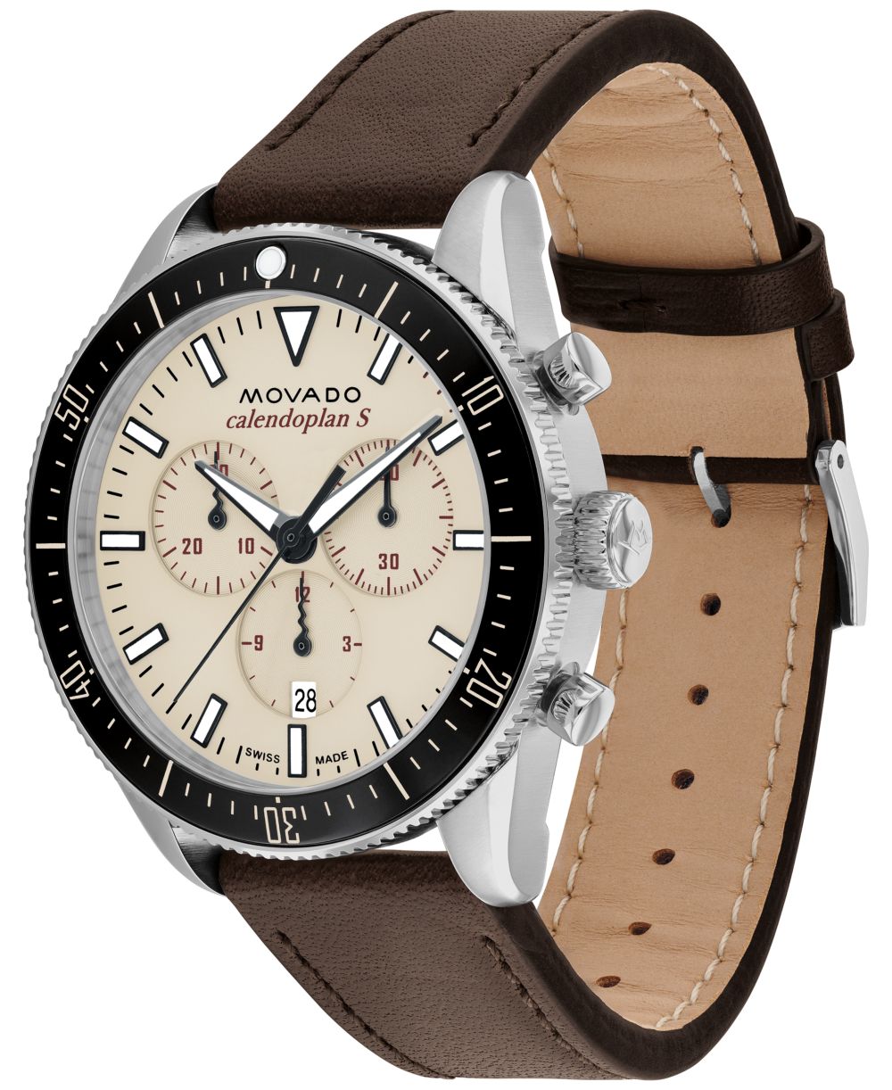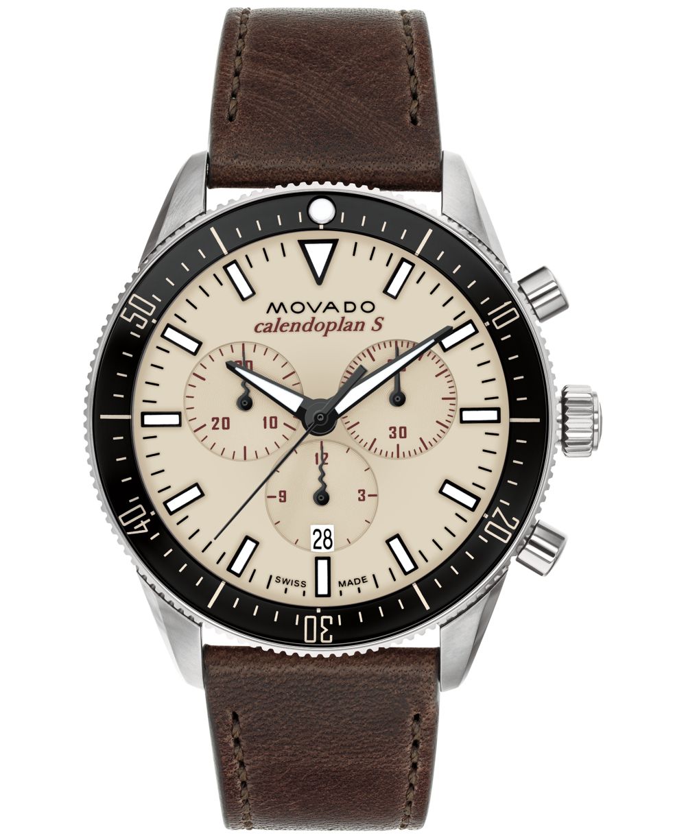 Movado Mens Swiss Chronograph Calendoplan S Cognac Leather Strap Watch 42mm