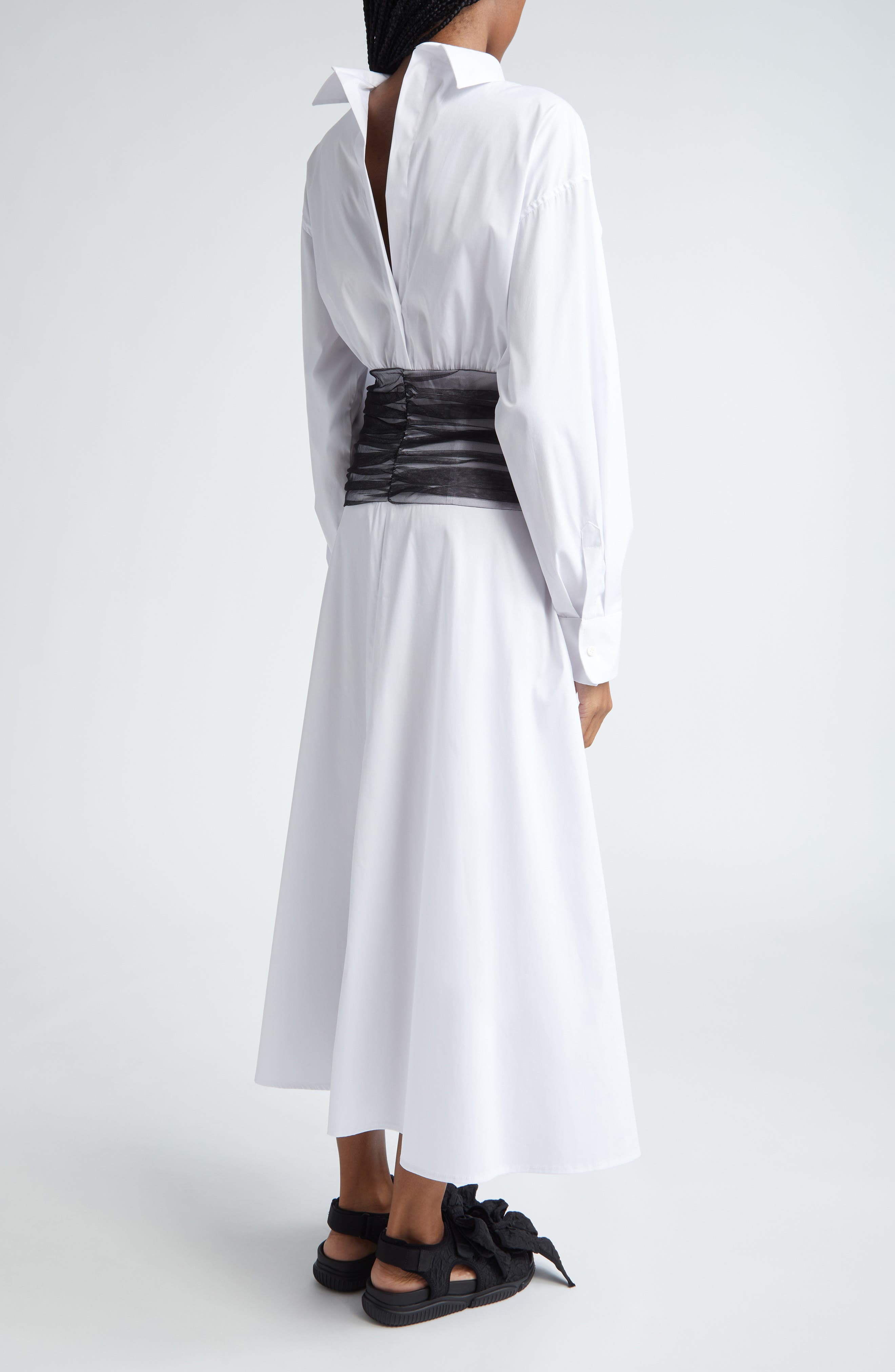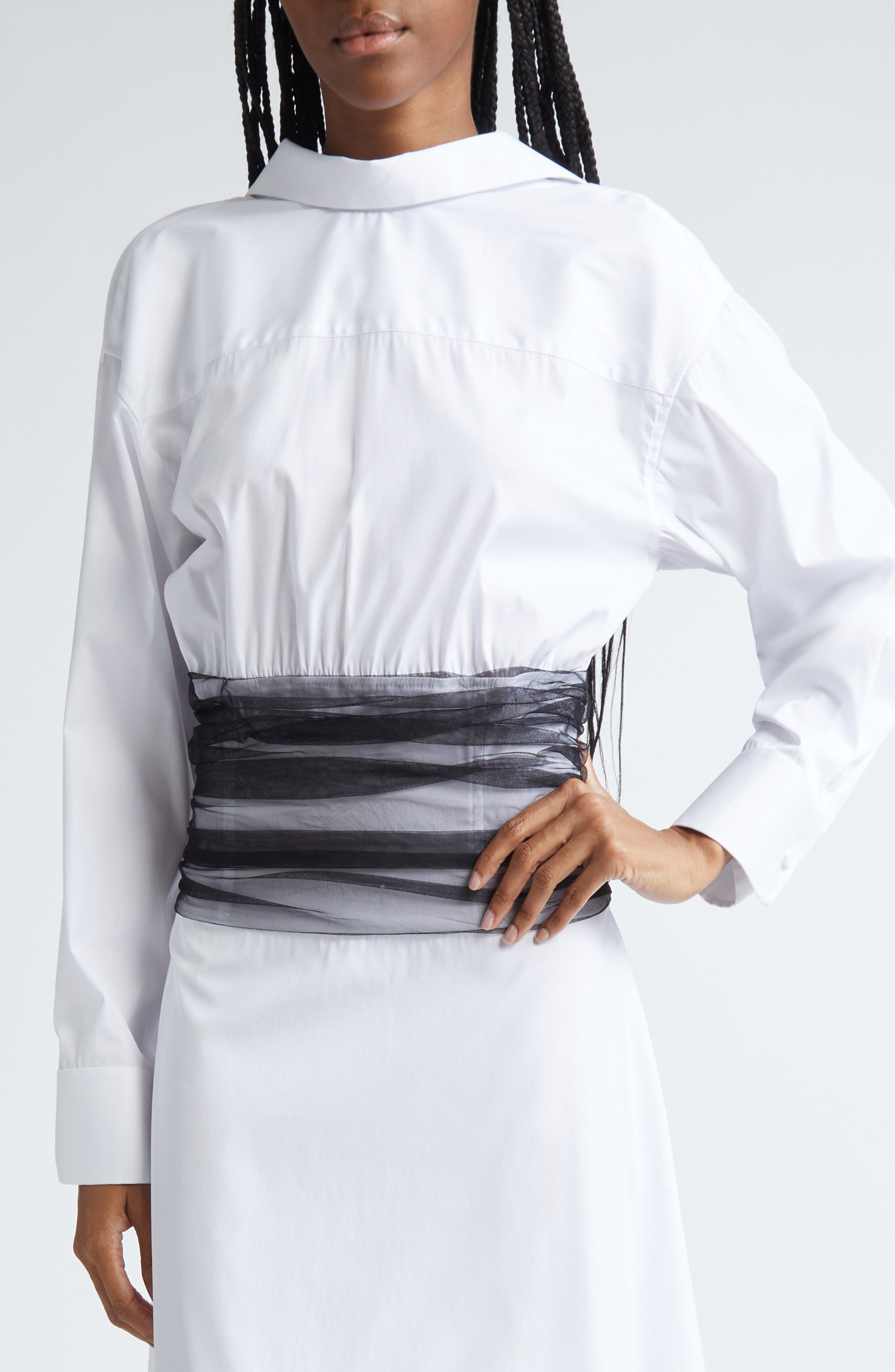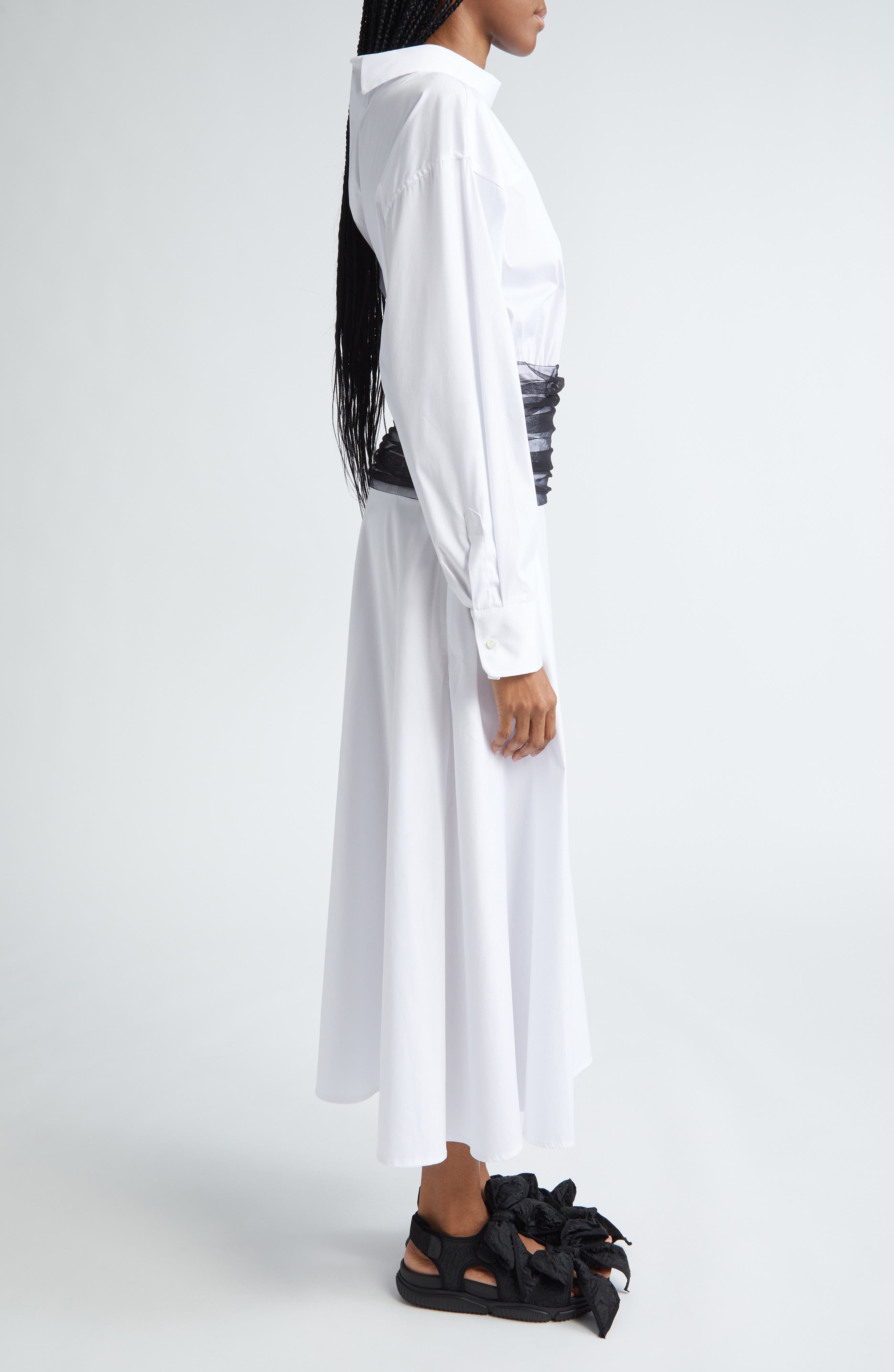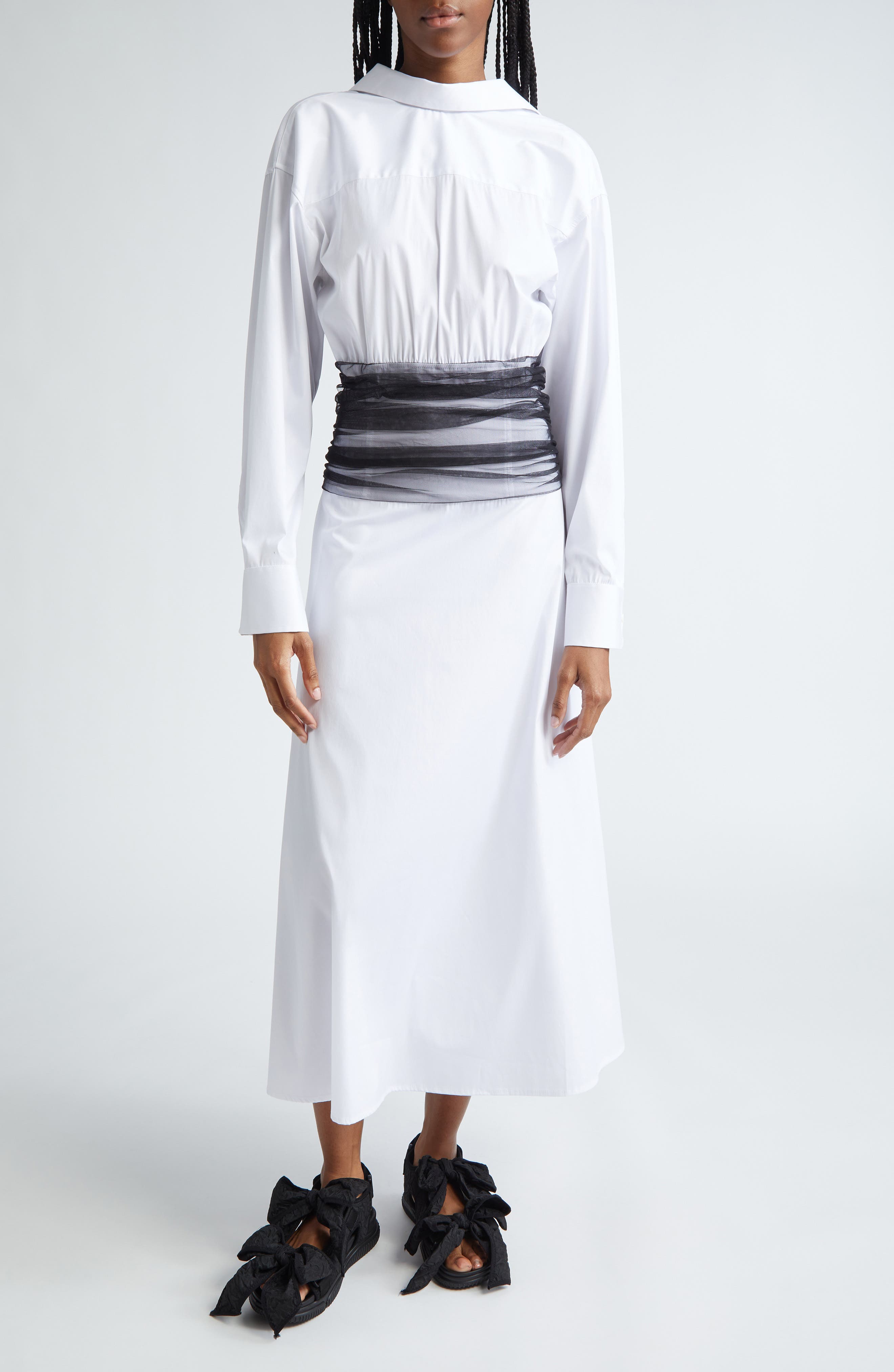 renaissance renaissance Drew Tulle Waist Long Sleeve Poplin Shirtdress_White