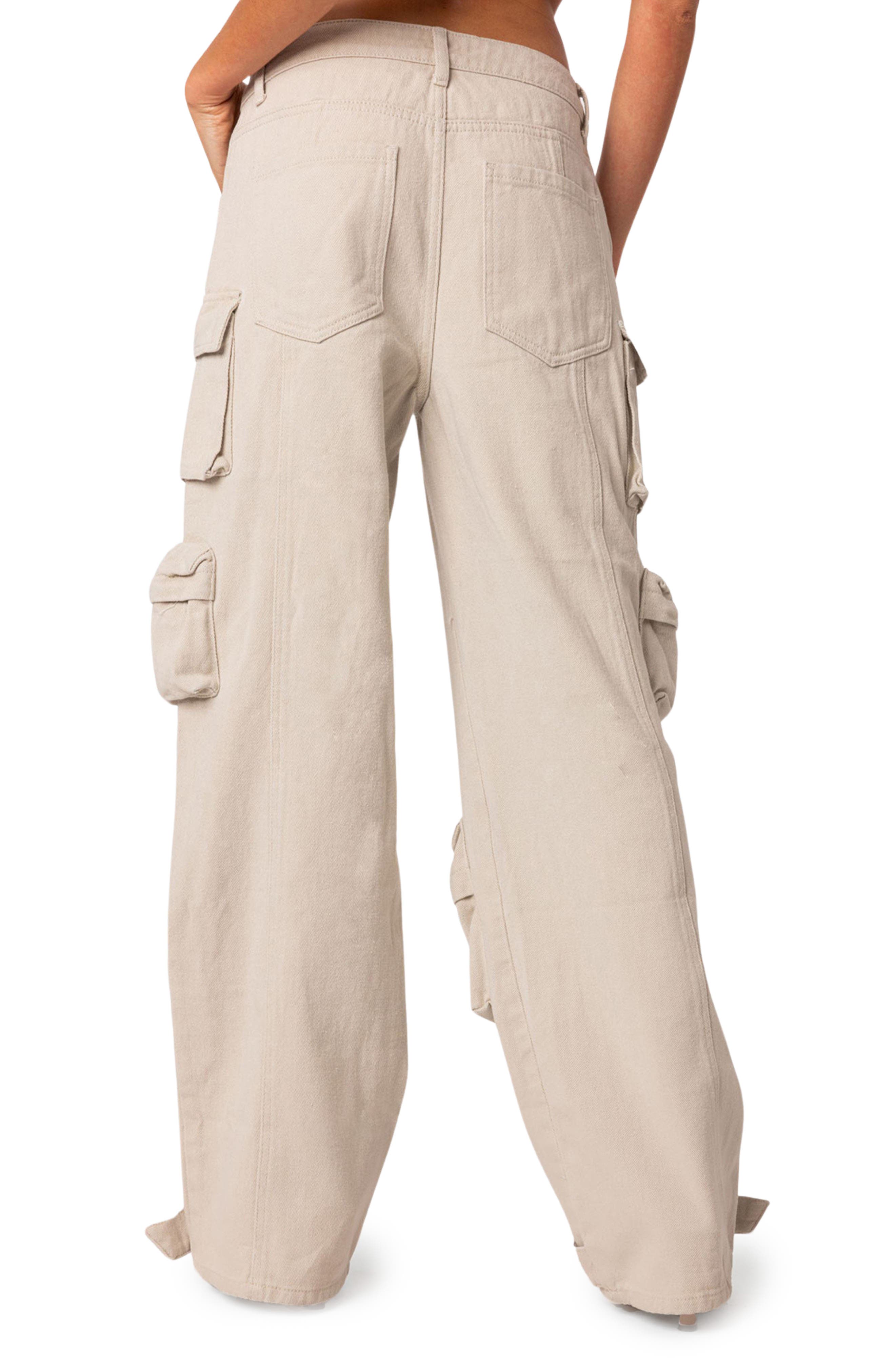 EDIKTED Oversize Boyfriend Cargo Jeans_Stone