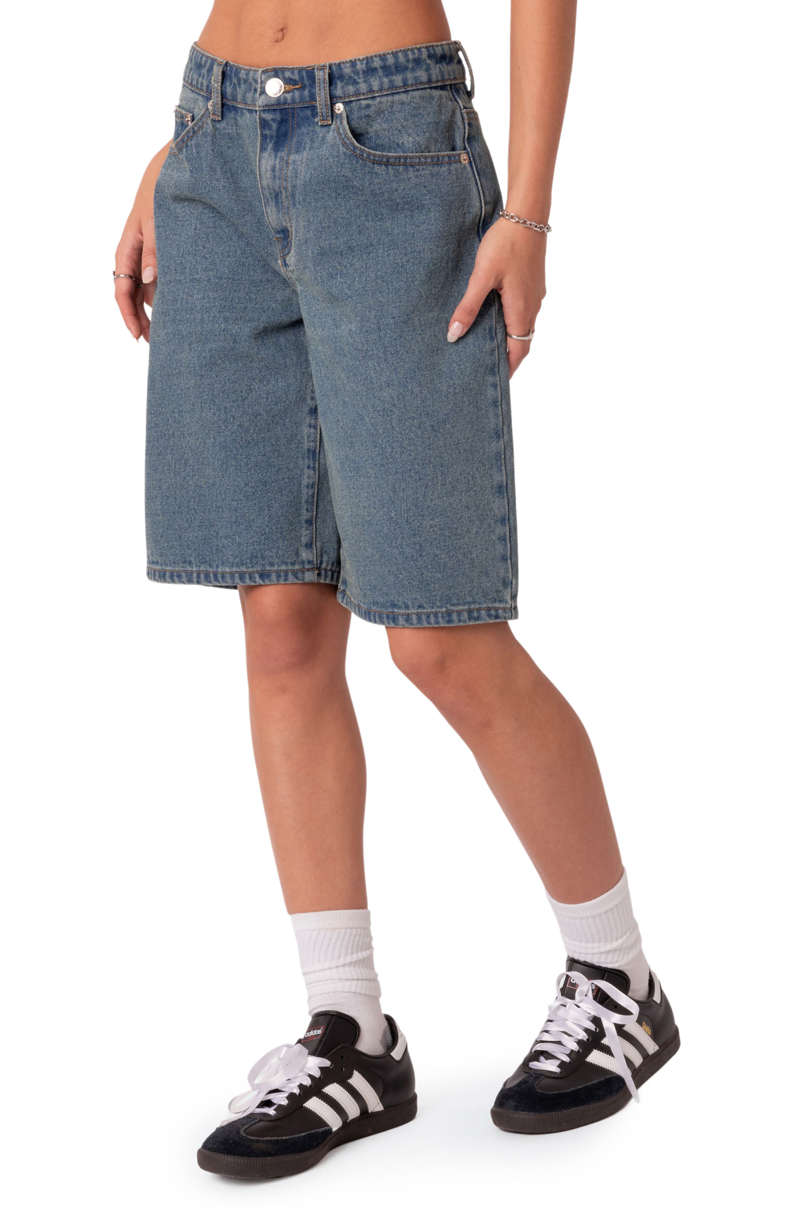 EDIKTED Oversize Low Rise Denim Bermuda Shorts_Blue-Washed