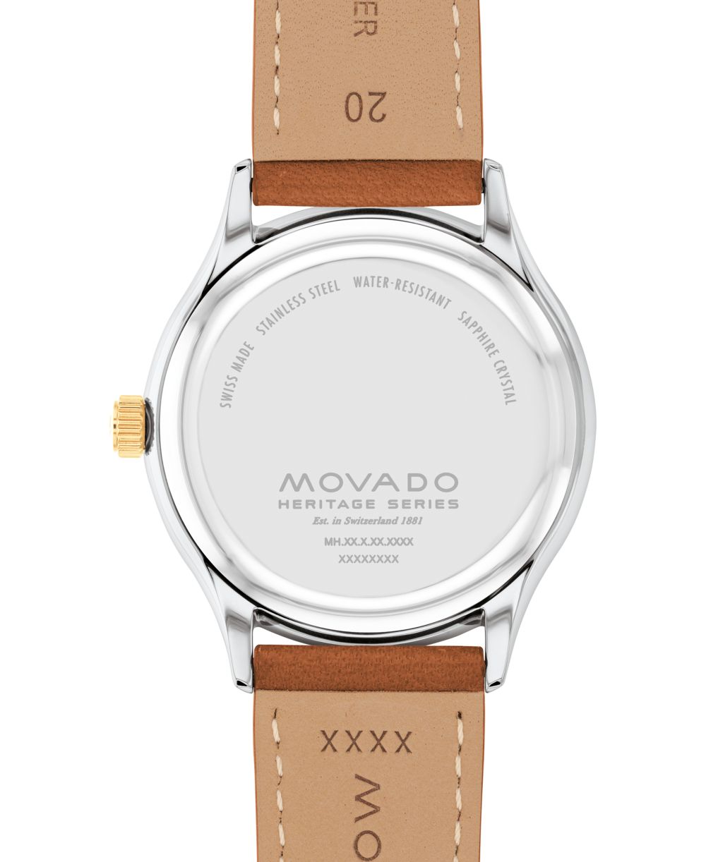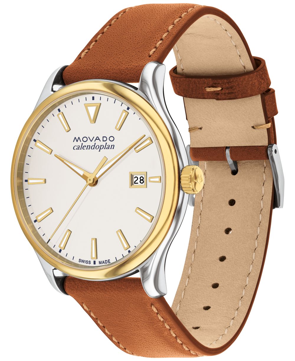 Movado Mens Swiss Calendoplan Cognac Brown Leather Strap Watch 40mm