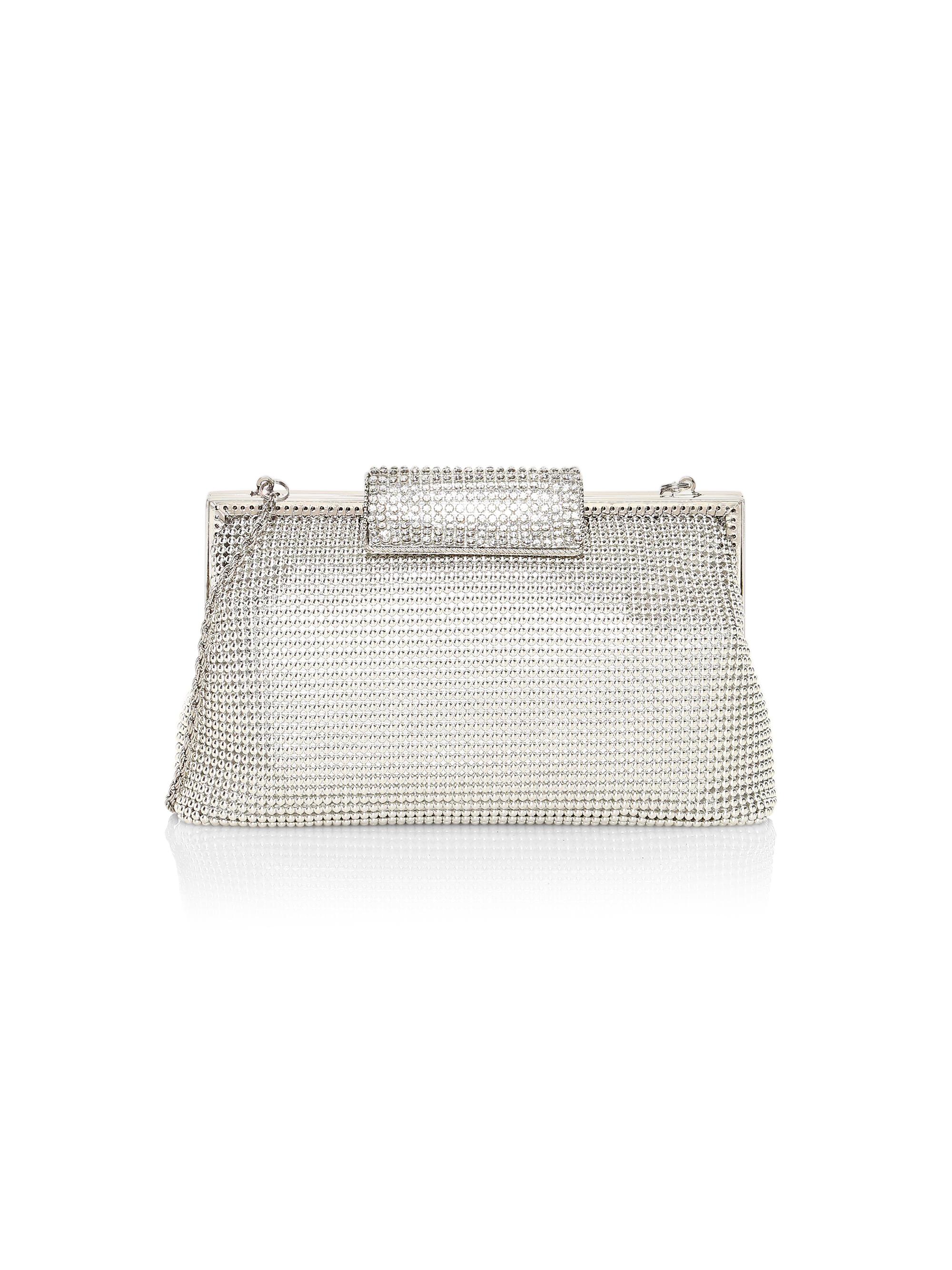 Whiting & Davis Crystal Clasp Metal Mesh Clutch