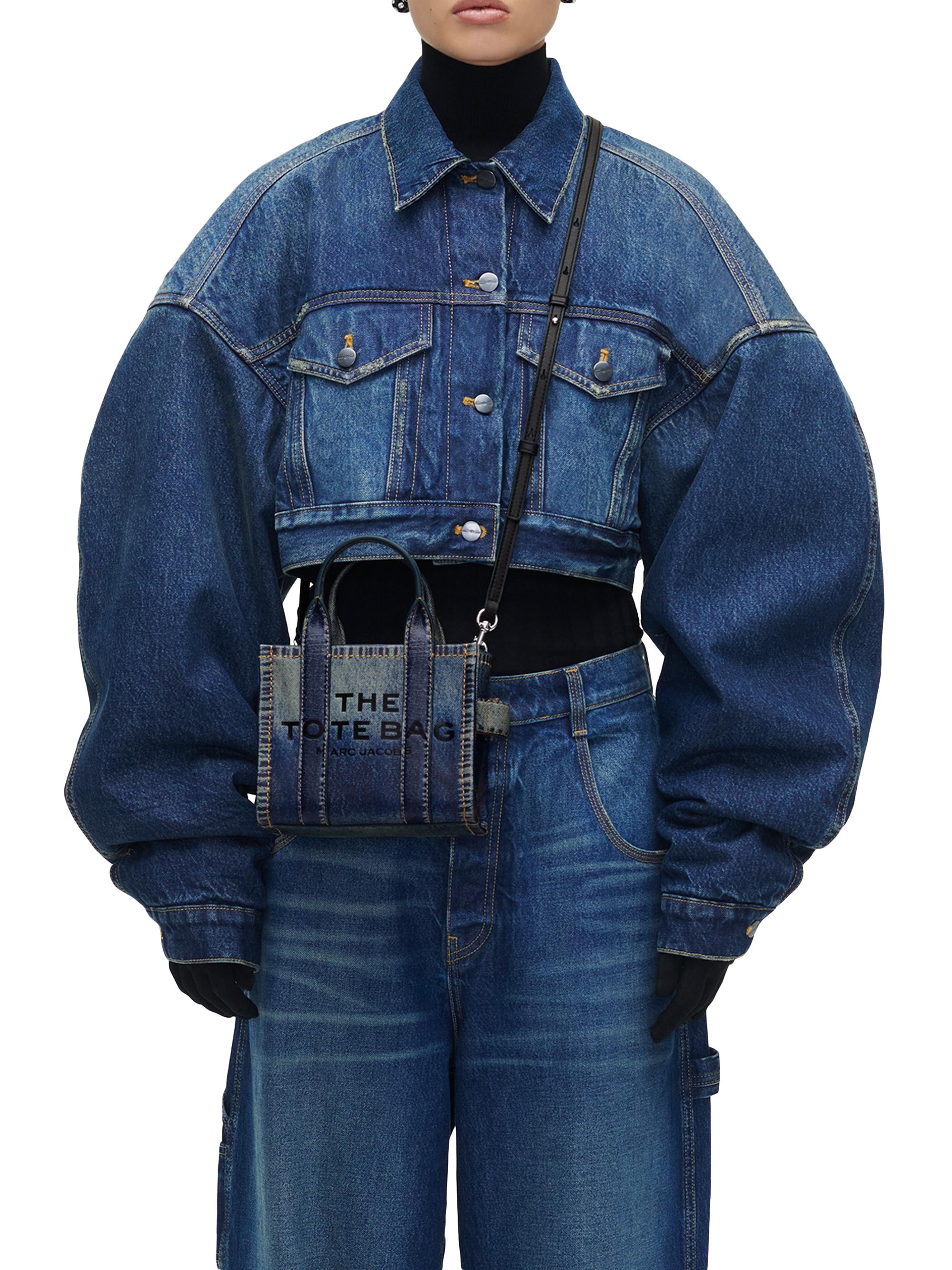 Marc Jacobs The Denim-Printed Leather Crossbody Tote Bag