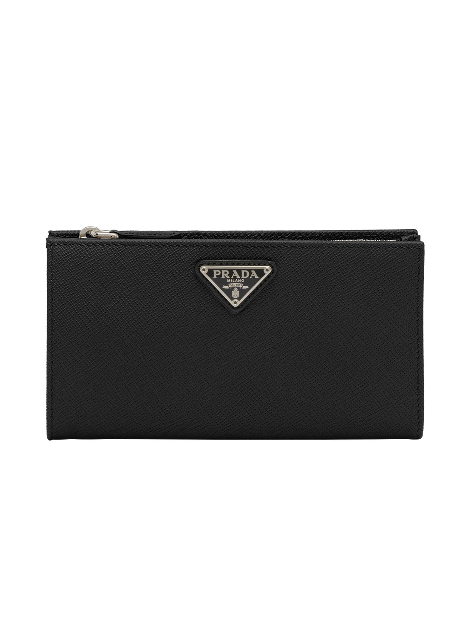 Prada Large Saffiano Leather Wallet BLACK SILVER