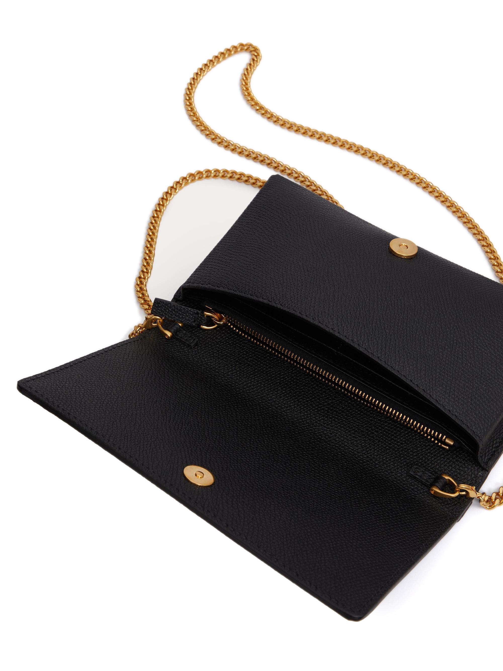 Valentino Garavani Vlogo Signature Grainy Calfskin Wallet with Chain