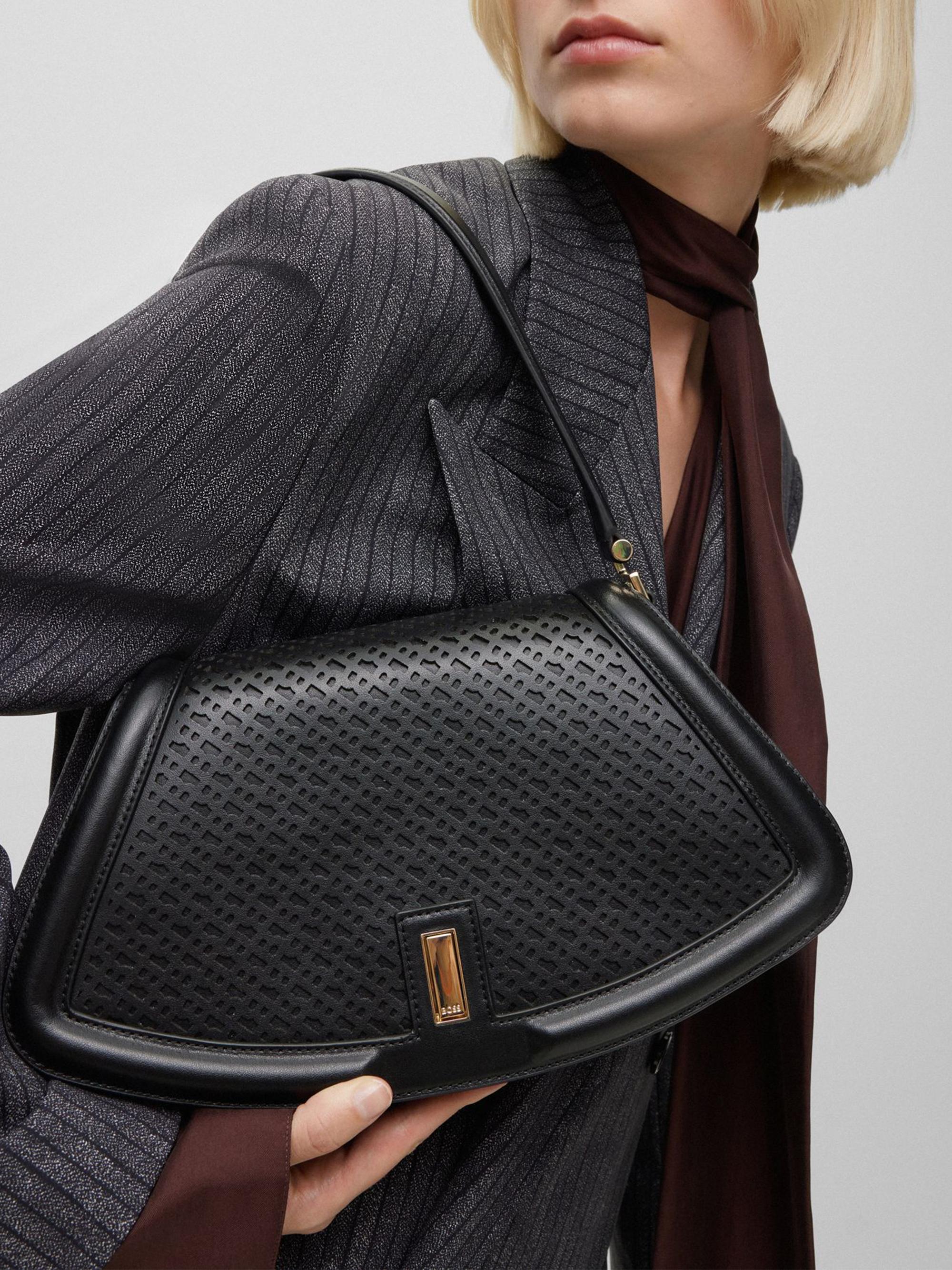 BOSS Leather Shoulder Bag With Monogram Pattern
