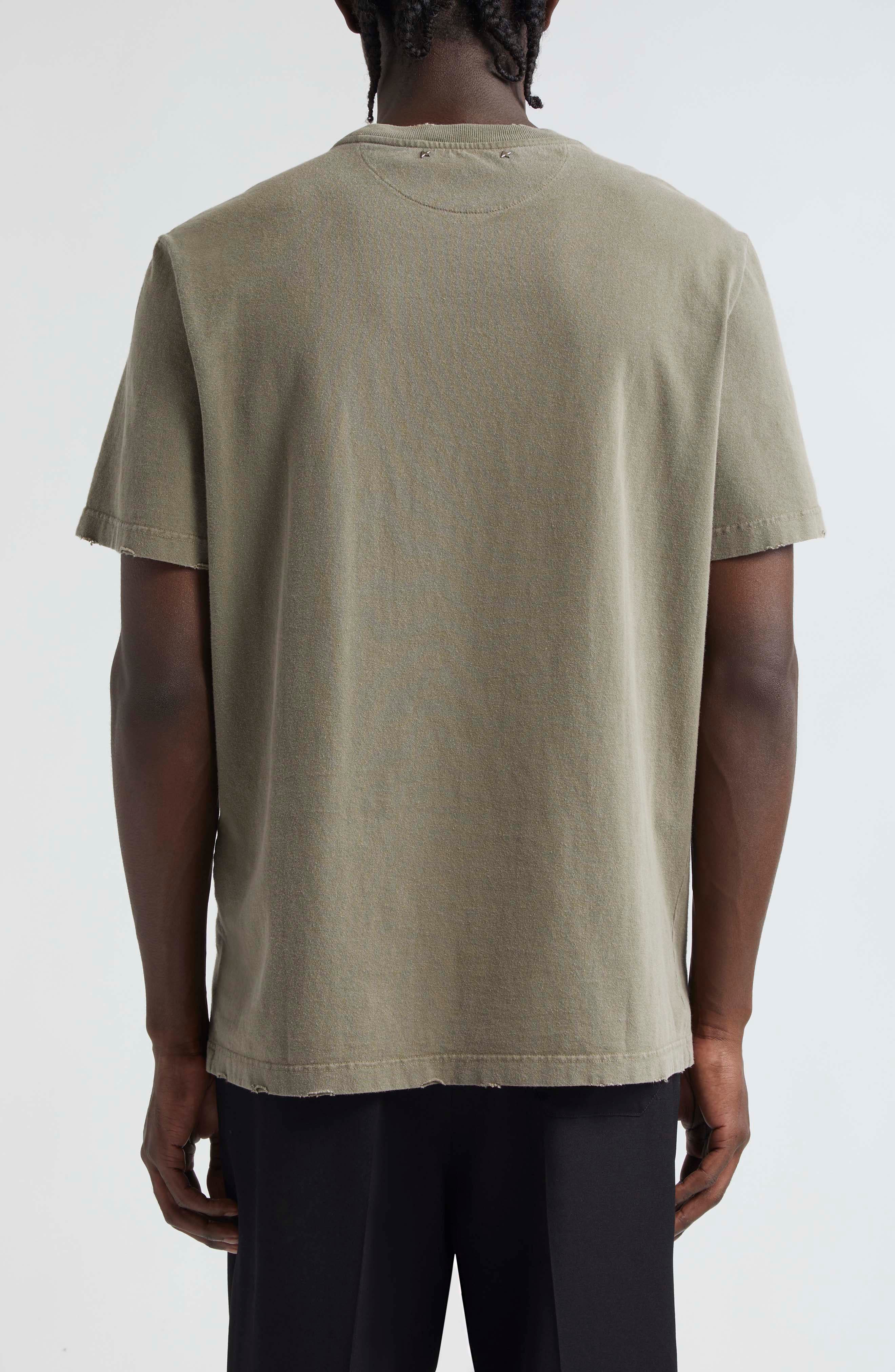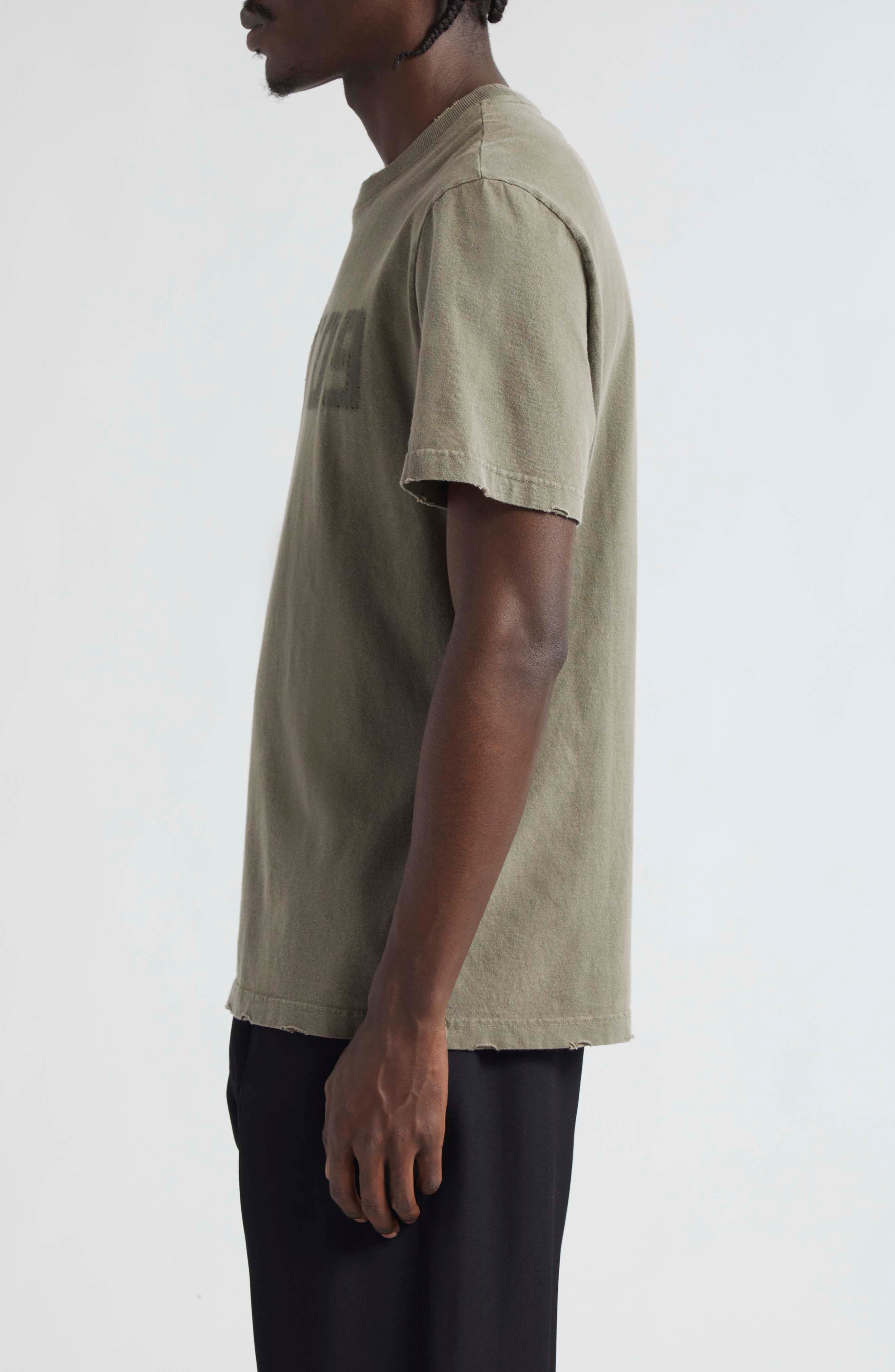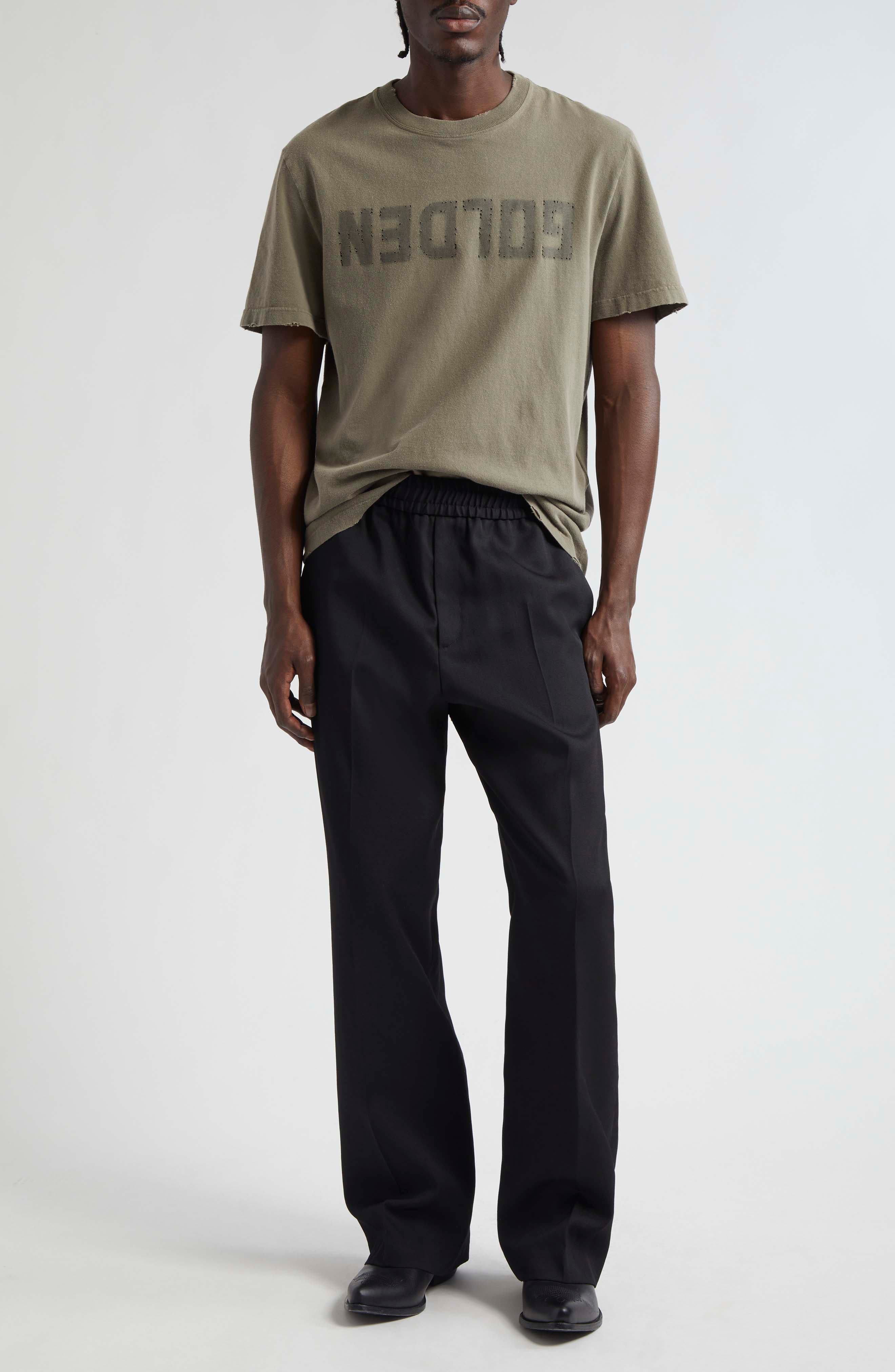 Golden Goose Distressed Upside Down Logo Cotton Graphic Tee_Dusty Olive