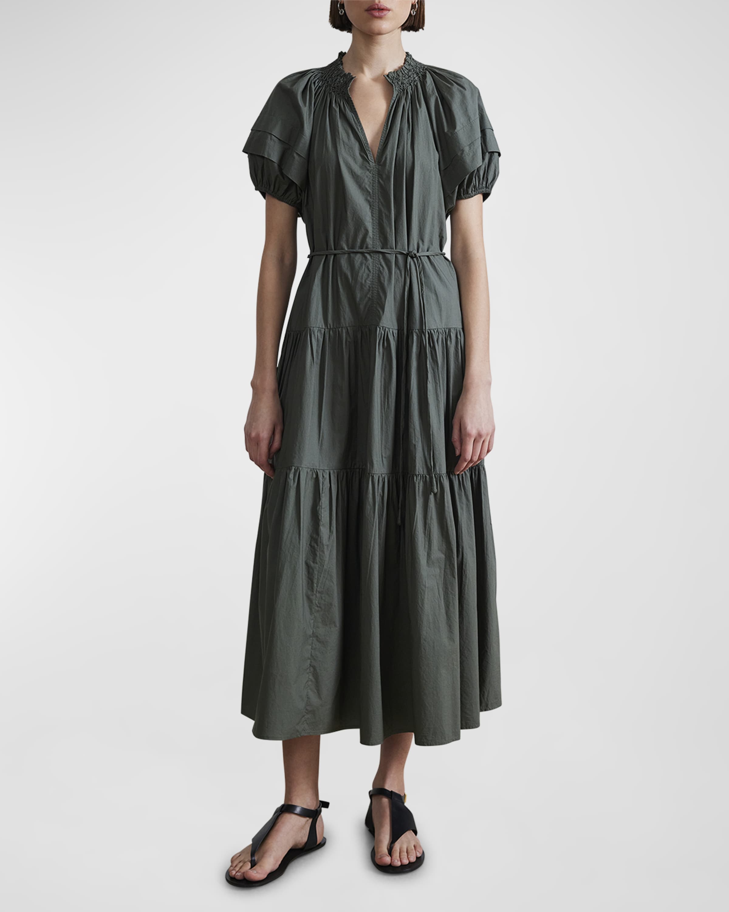 Apiece Apart Uva Tiered Puff-Sleeve Smocked Maxi Dress
