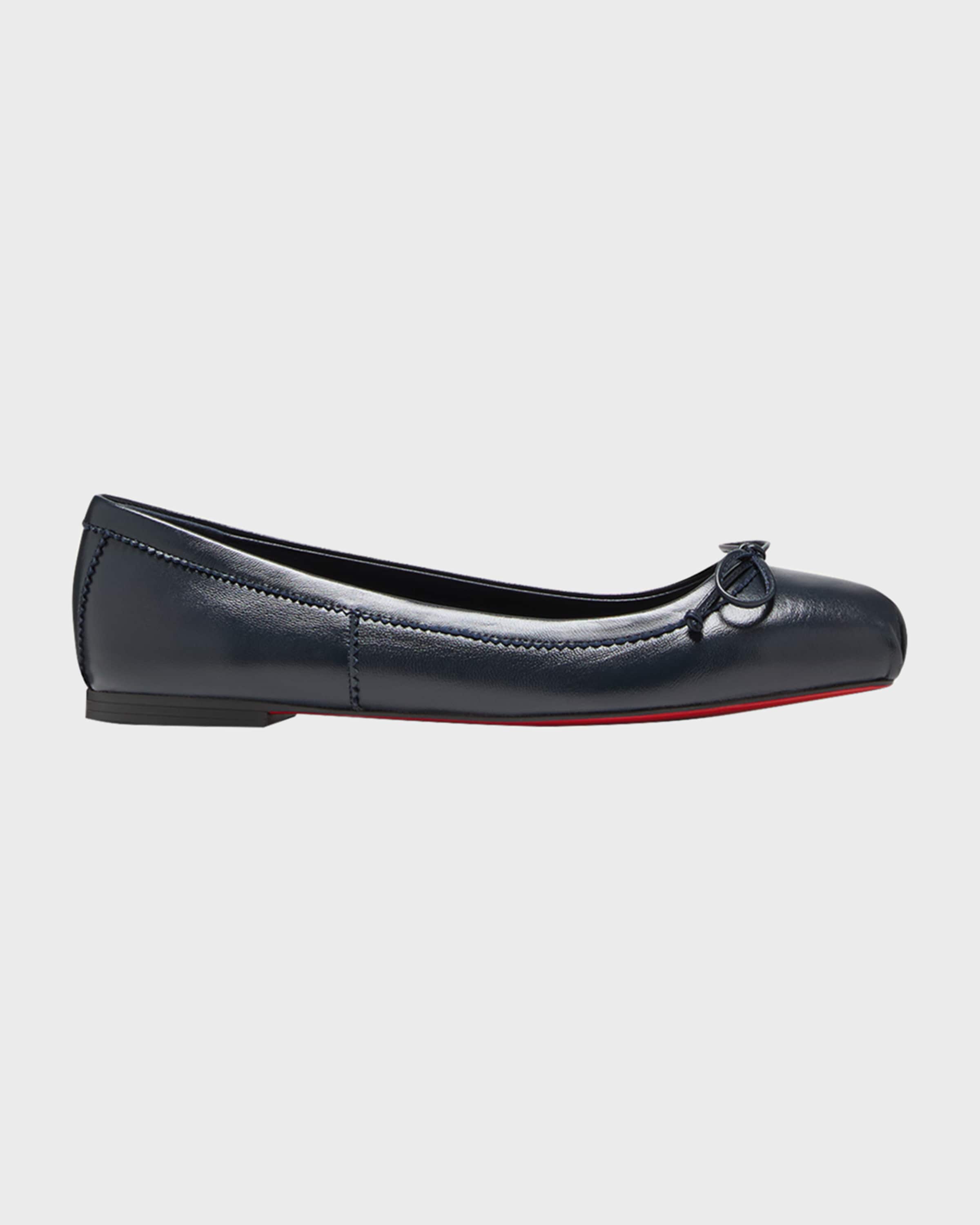 Christian Louboutin Mamadrague Napa Bow Red Sole Ballerina Flats