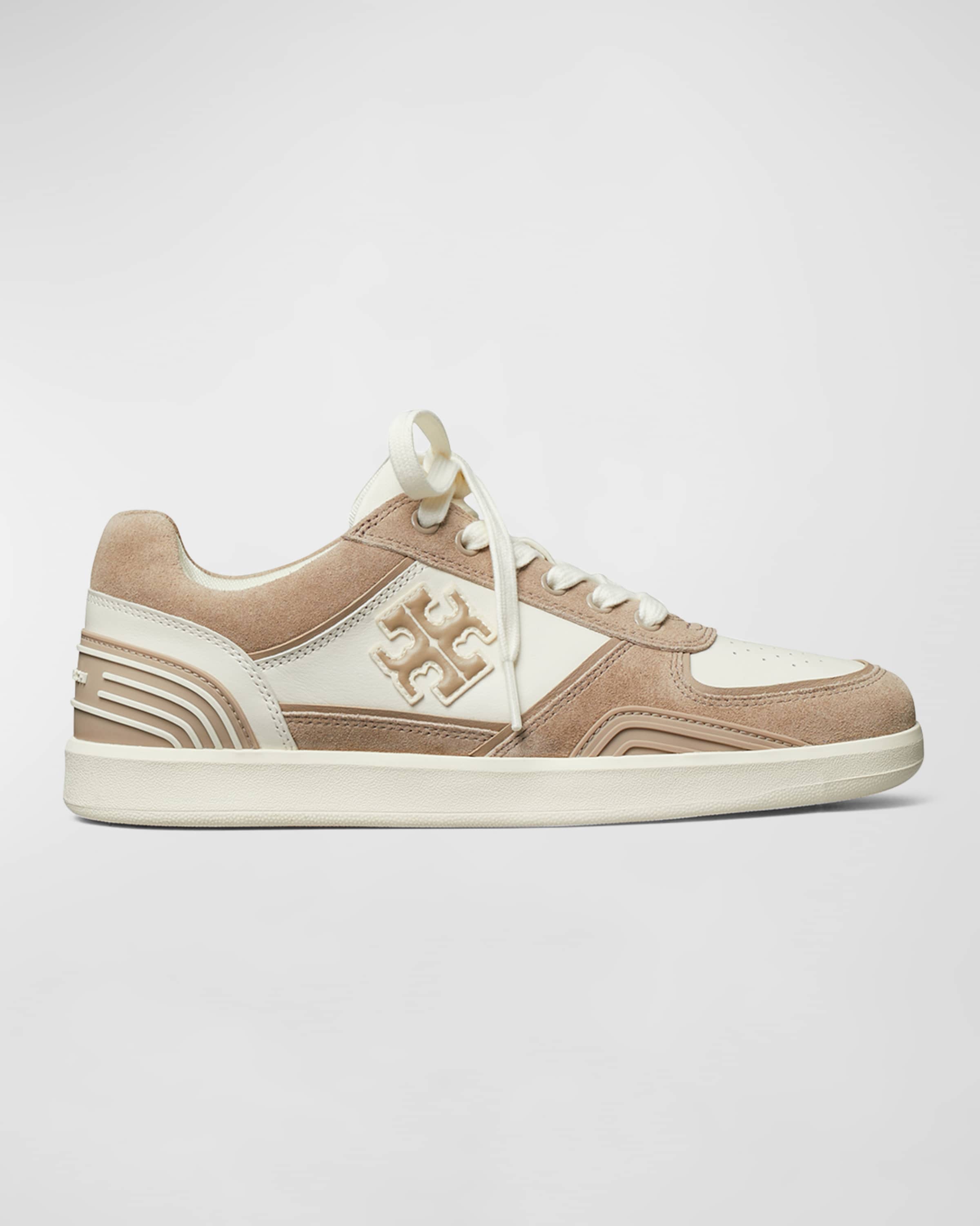 Tory Burch Clover Mixed Leather Low-Top Sneakers