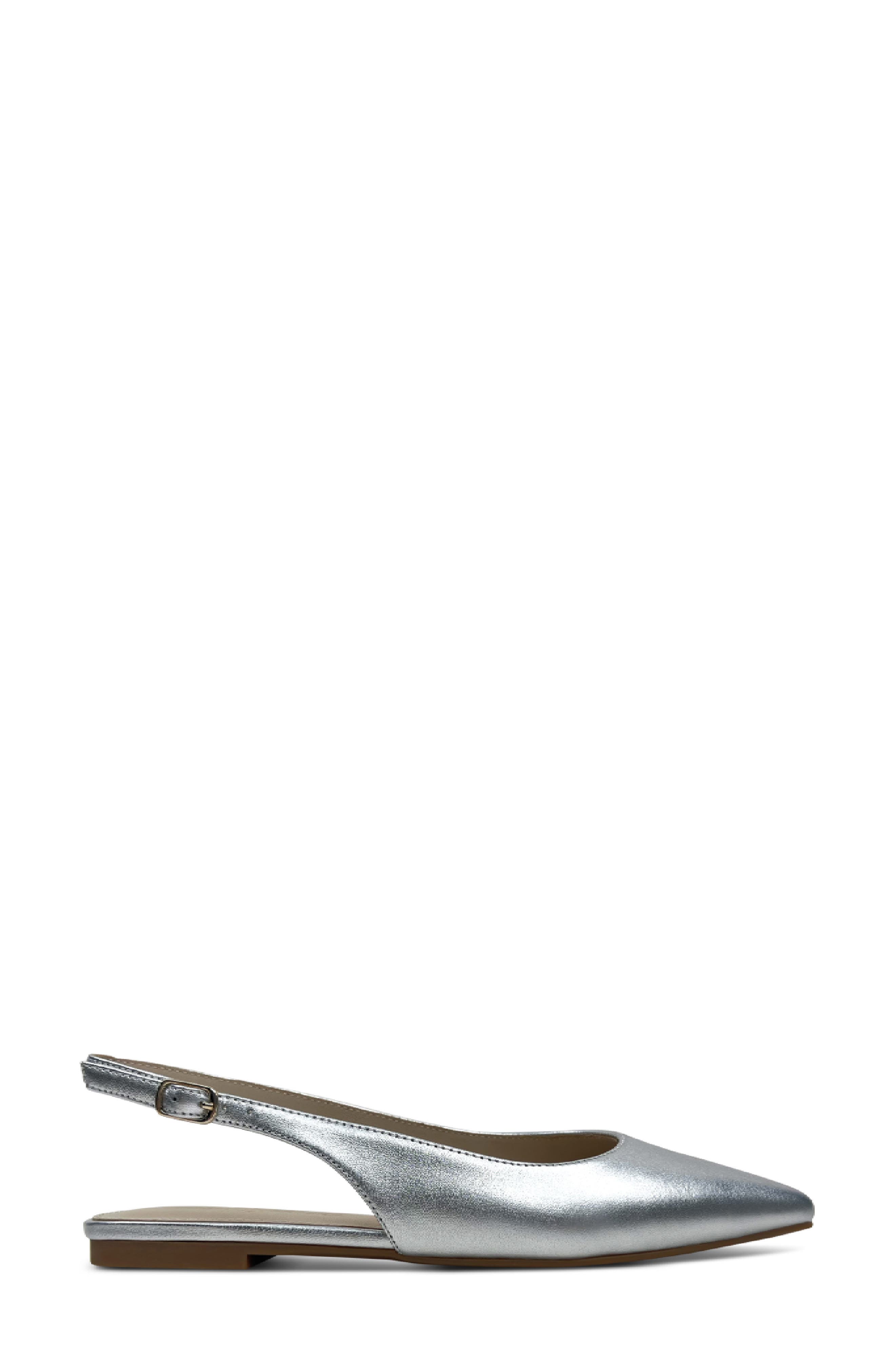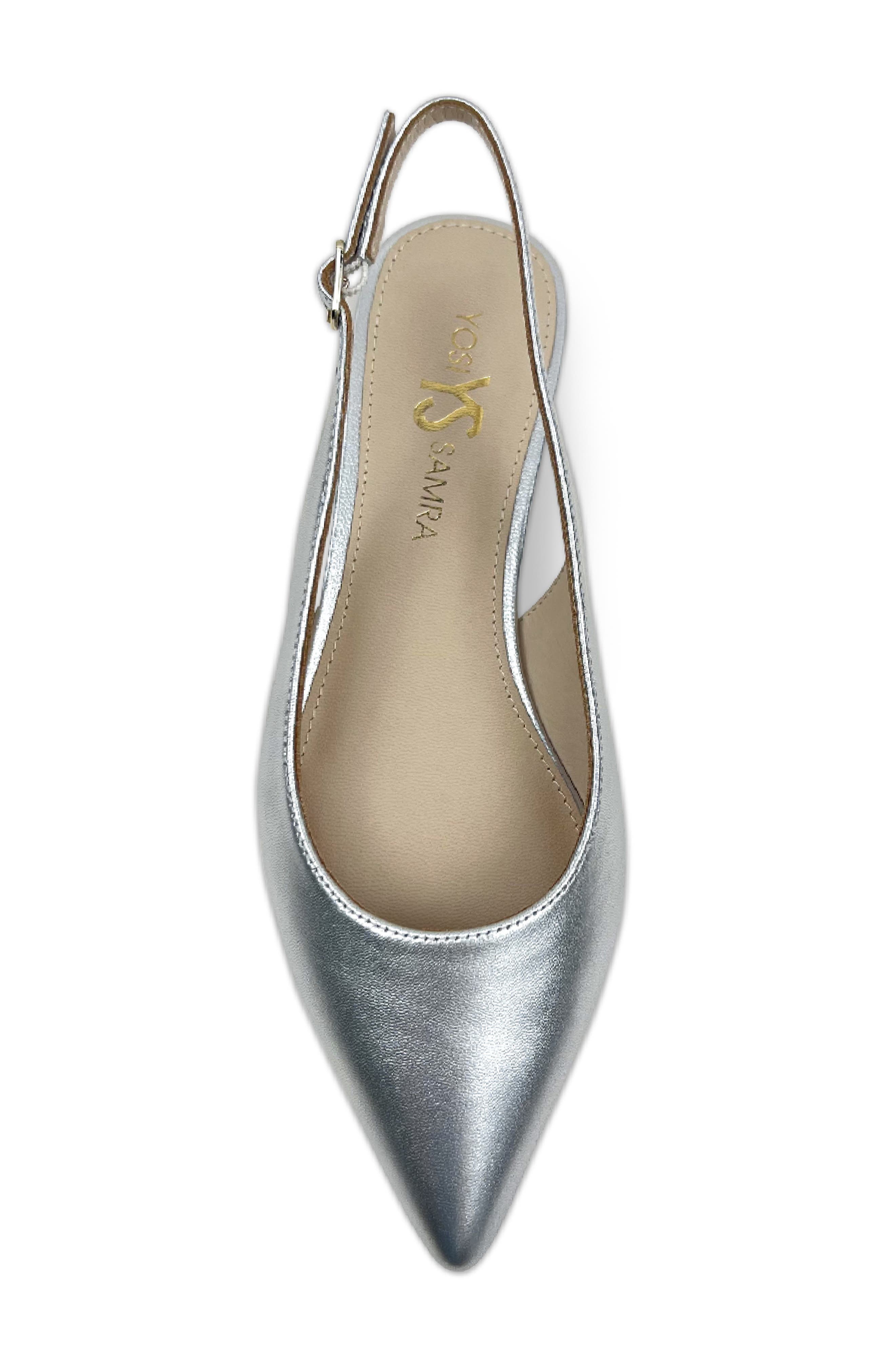 Yosi Samra Vera Pointed Toe Slingback Flat_Silver Metallic