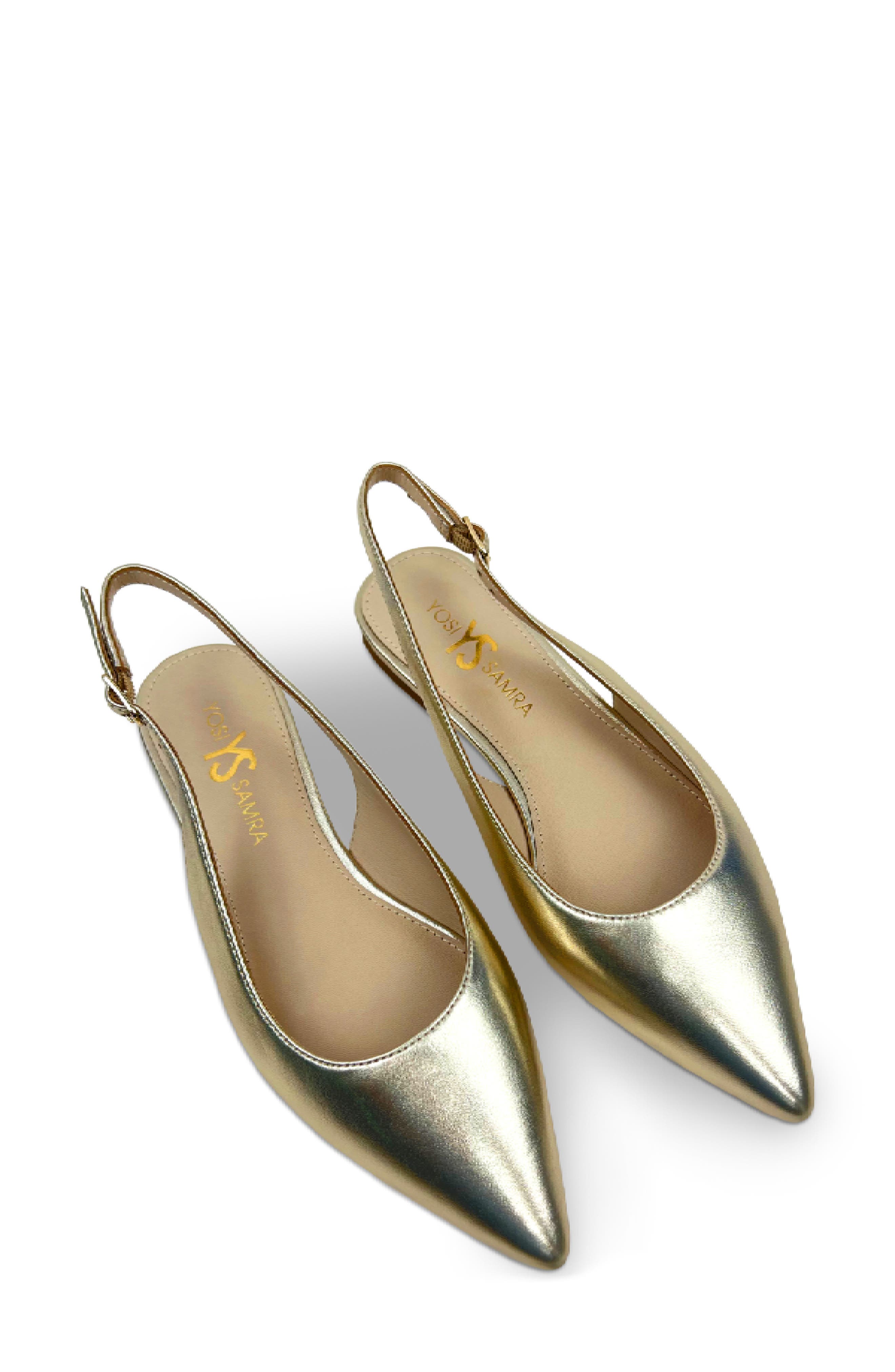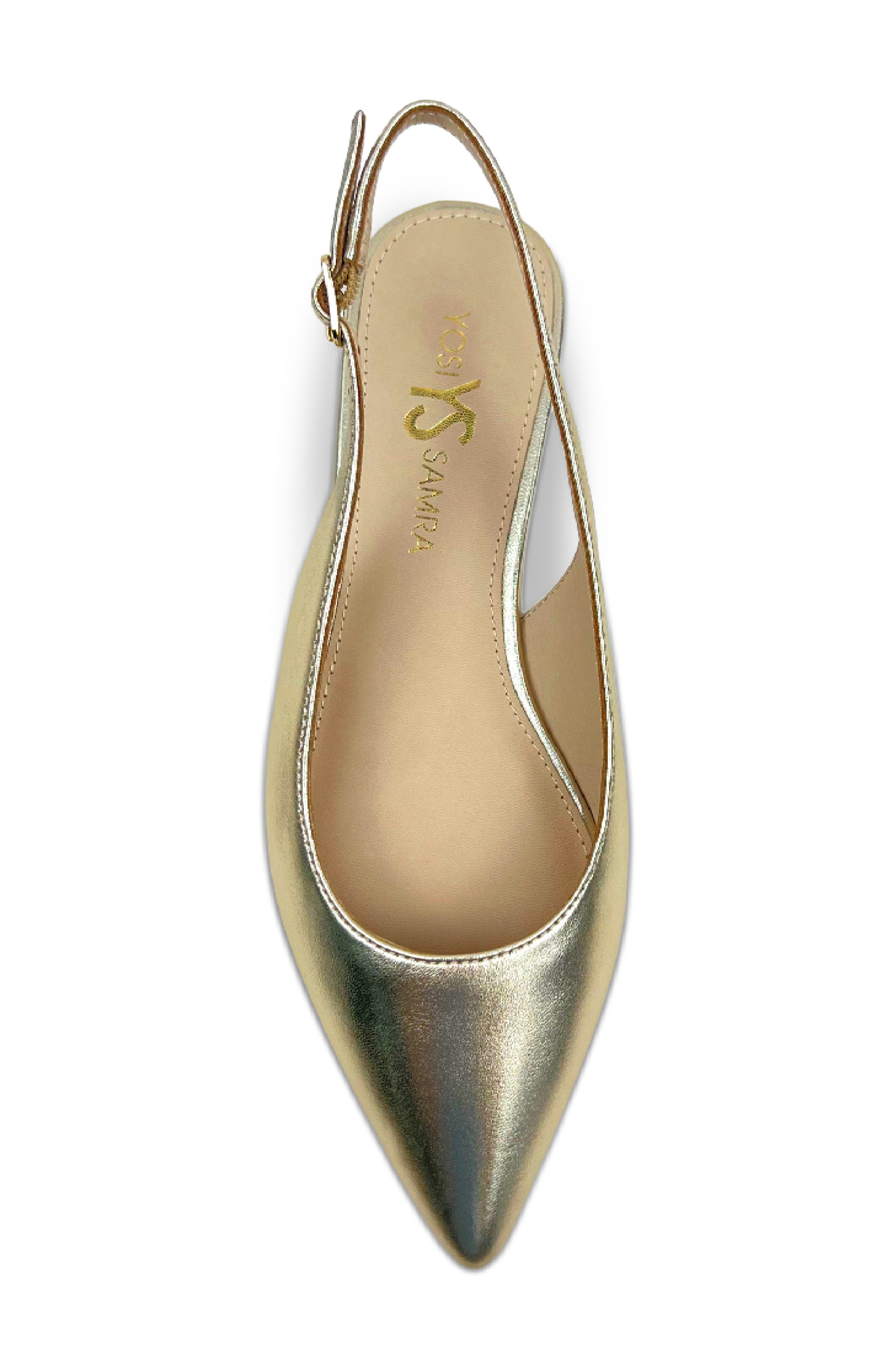 Yosi Samra Vera Pointed Toe Slingback Flat_Light Gold Metallic