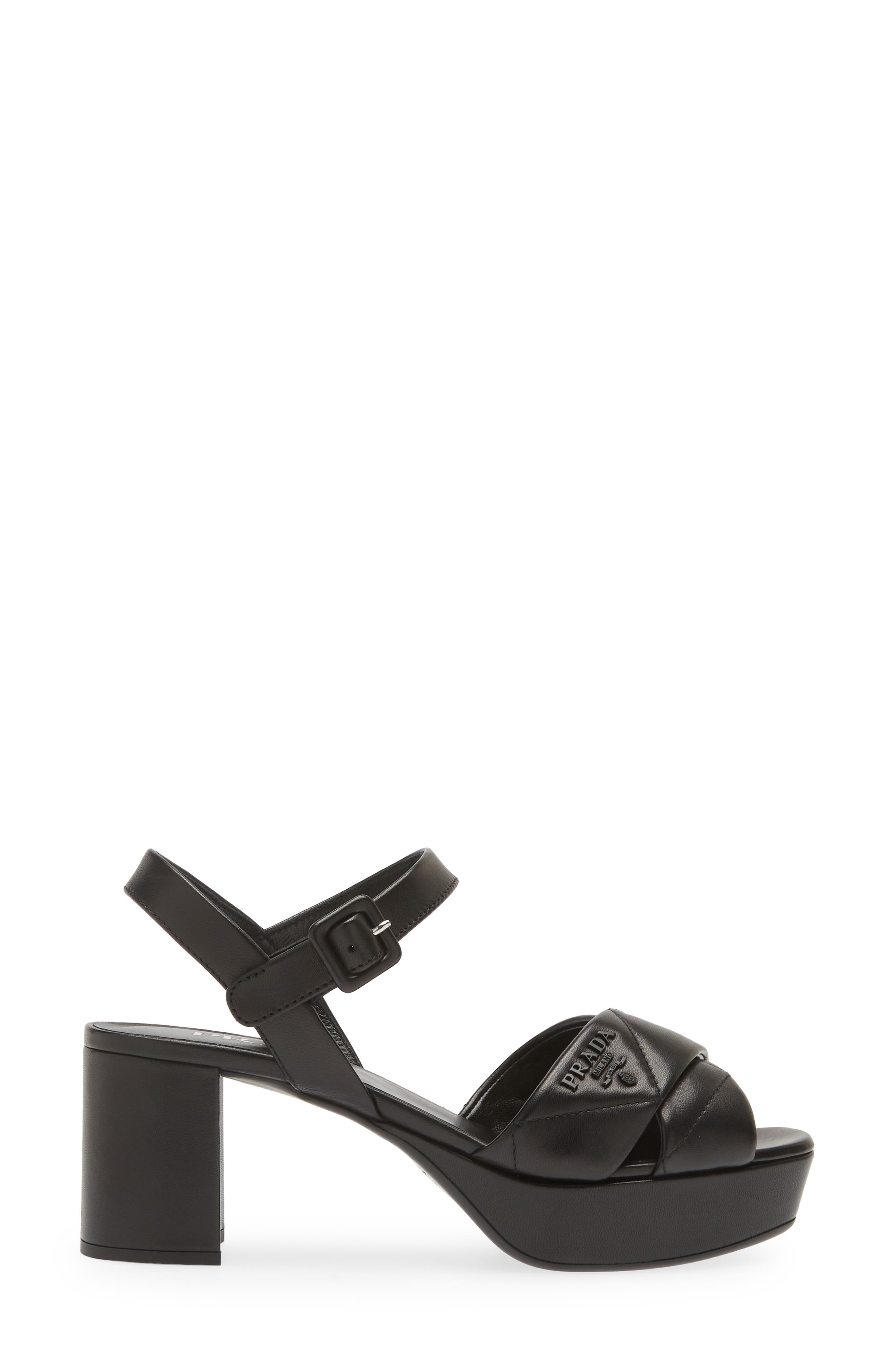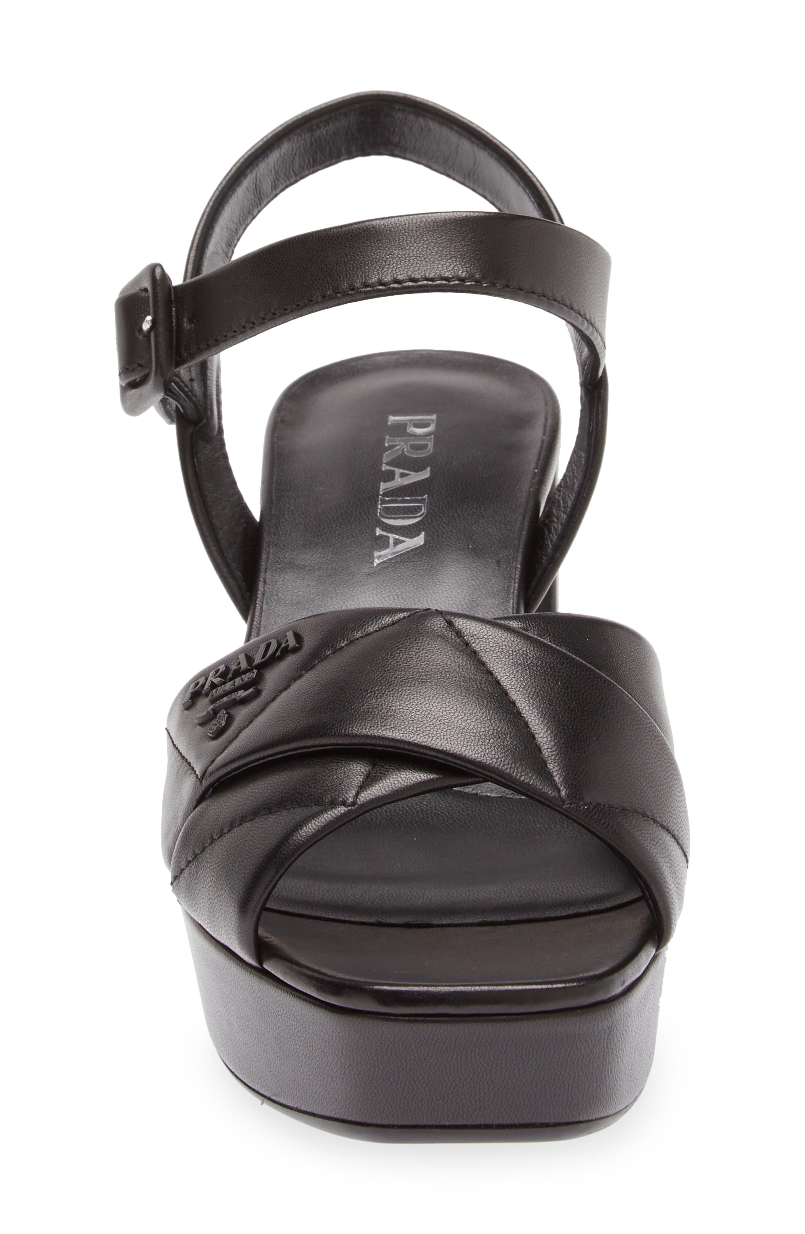 Prada Diagram Quilted Leather Platform Sandal_Black