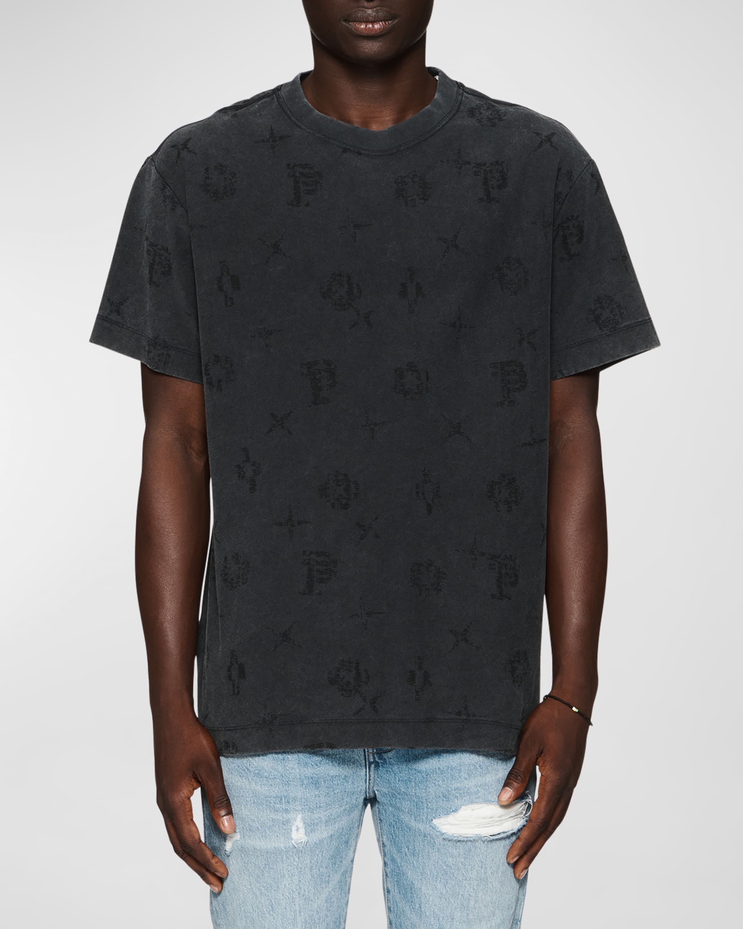 PURPLE Mens Textured Icon Motif T-Shirt