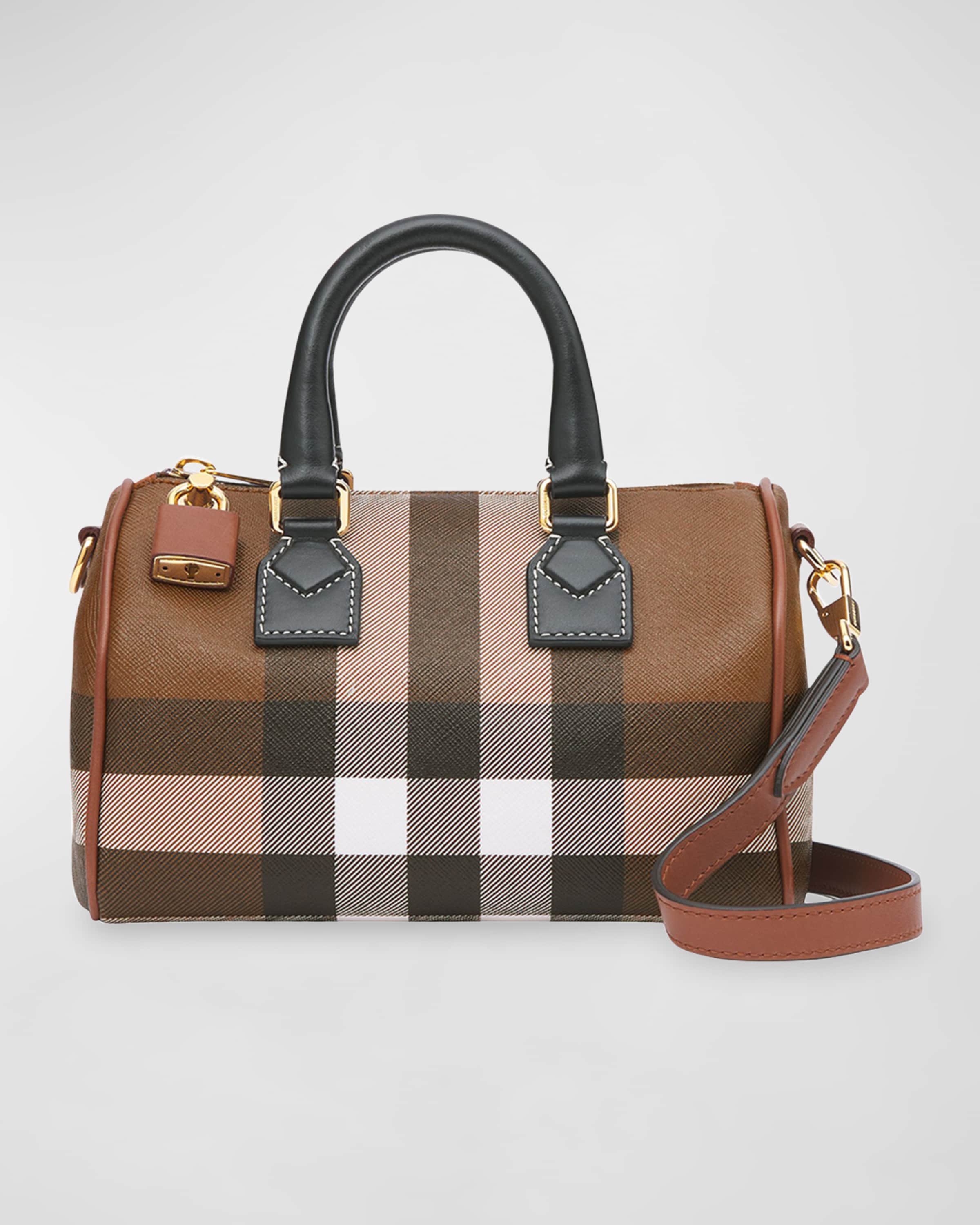 Burberry Check E-Canvas Bowling Top-Handle Bag