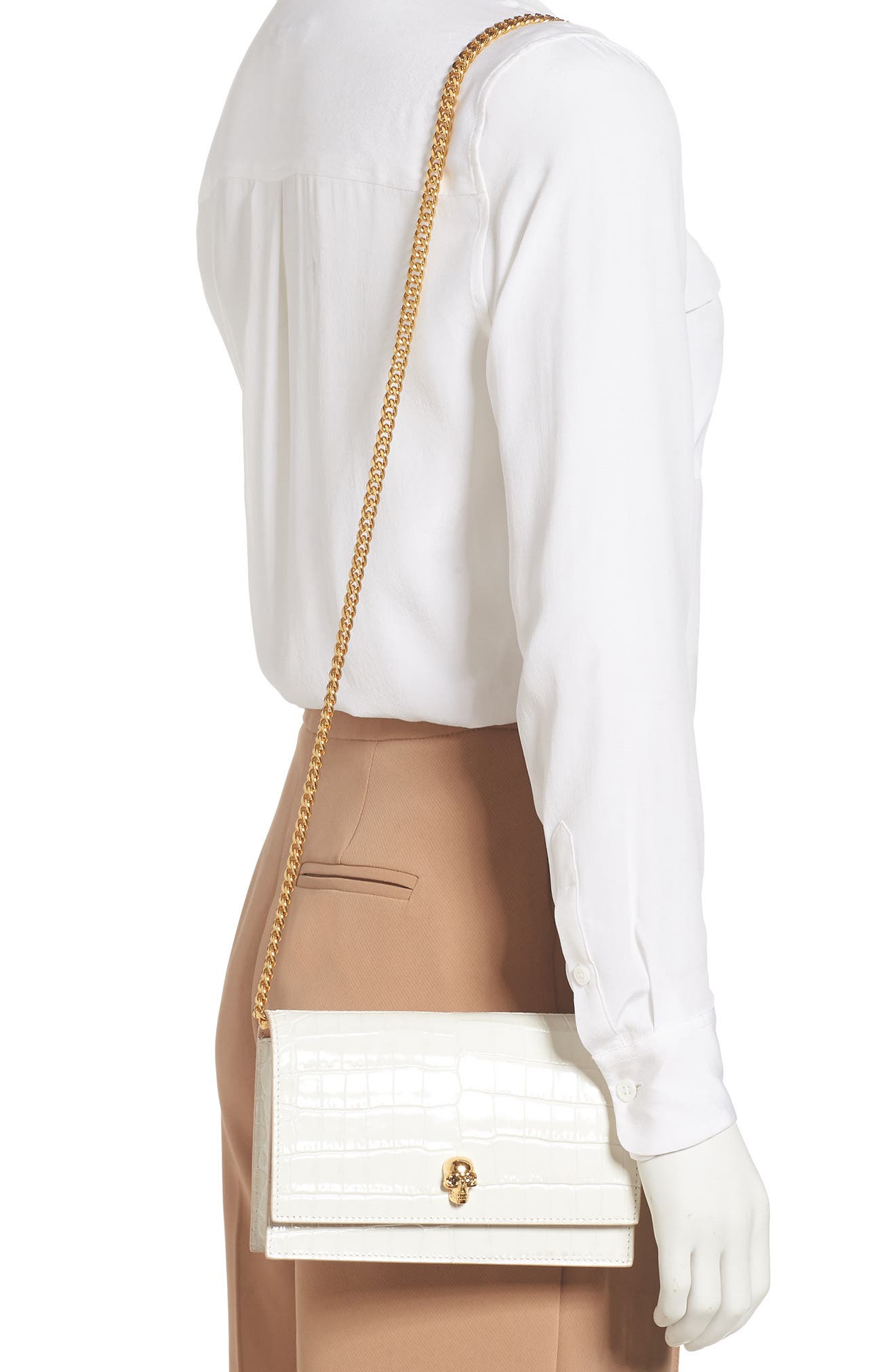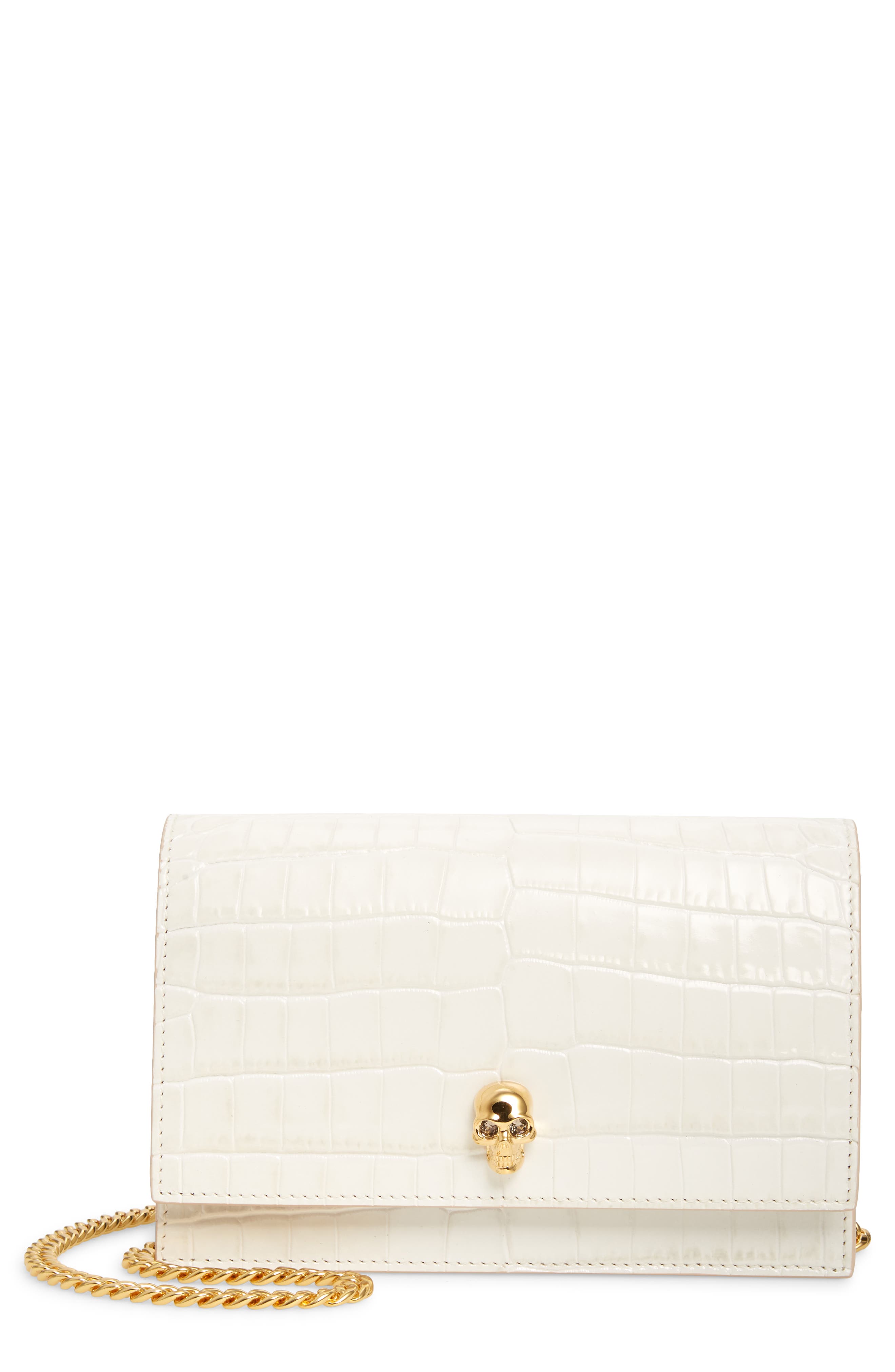 McQueen Alexander McQueen Mini Skull Croc Embossed Leather Bag_Deep Ivory