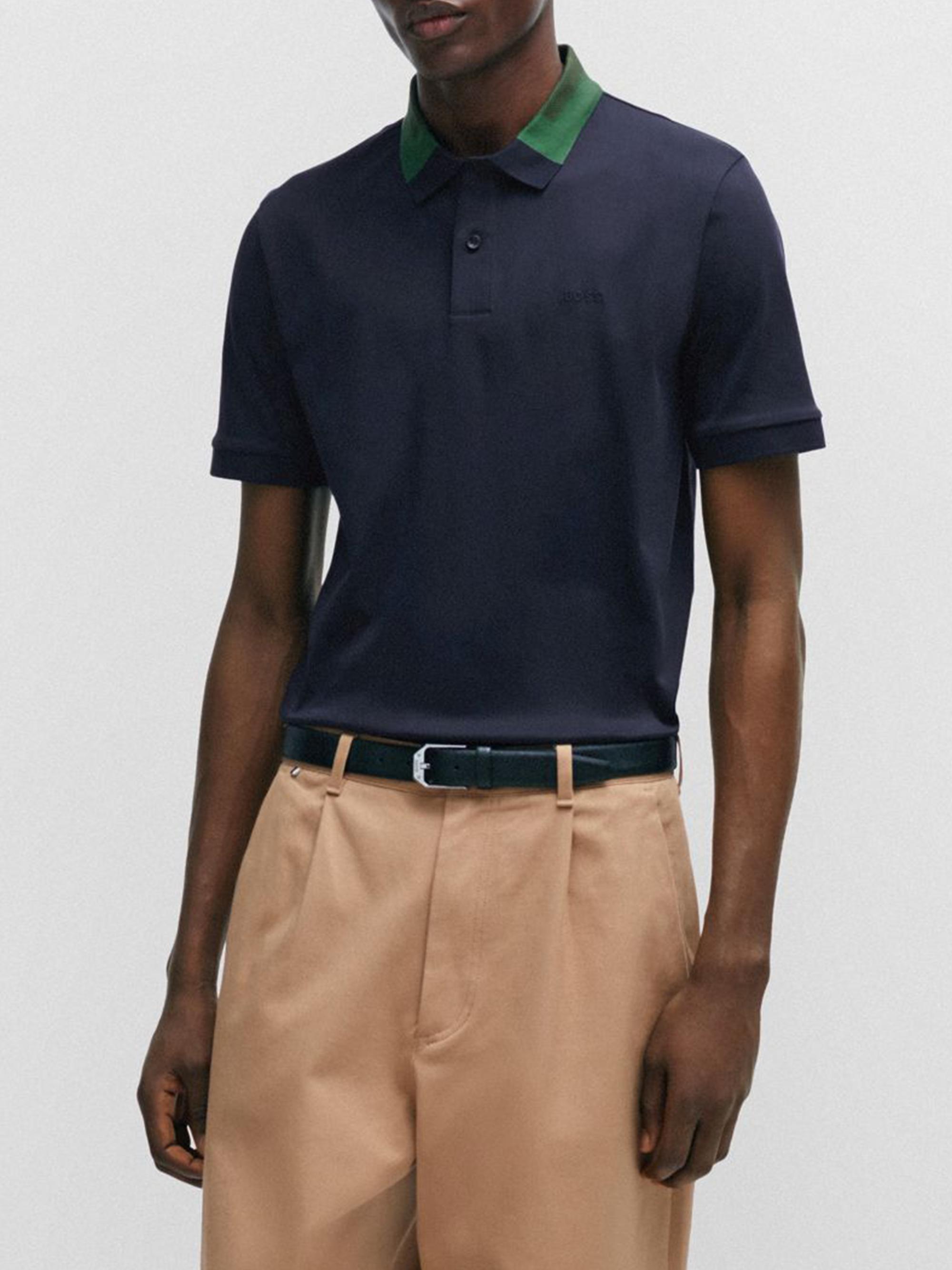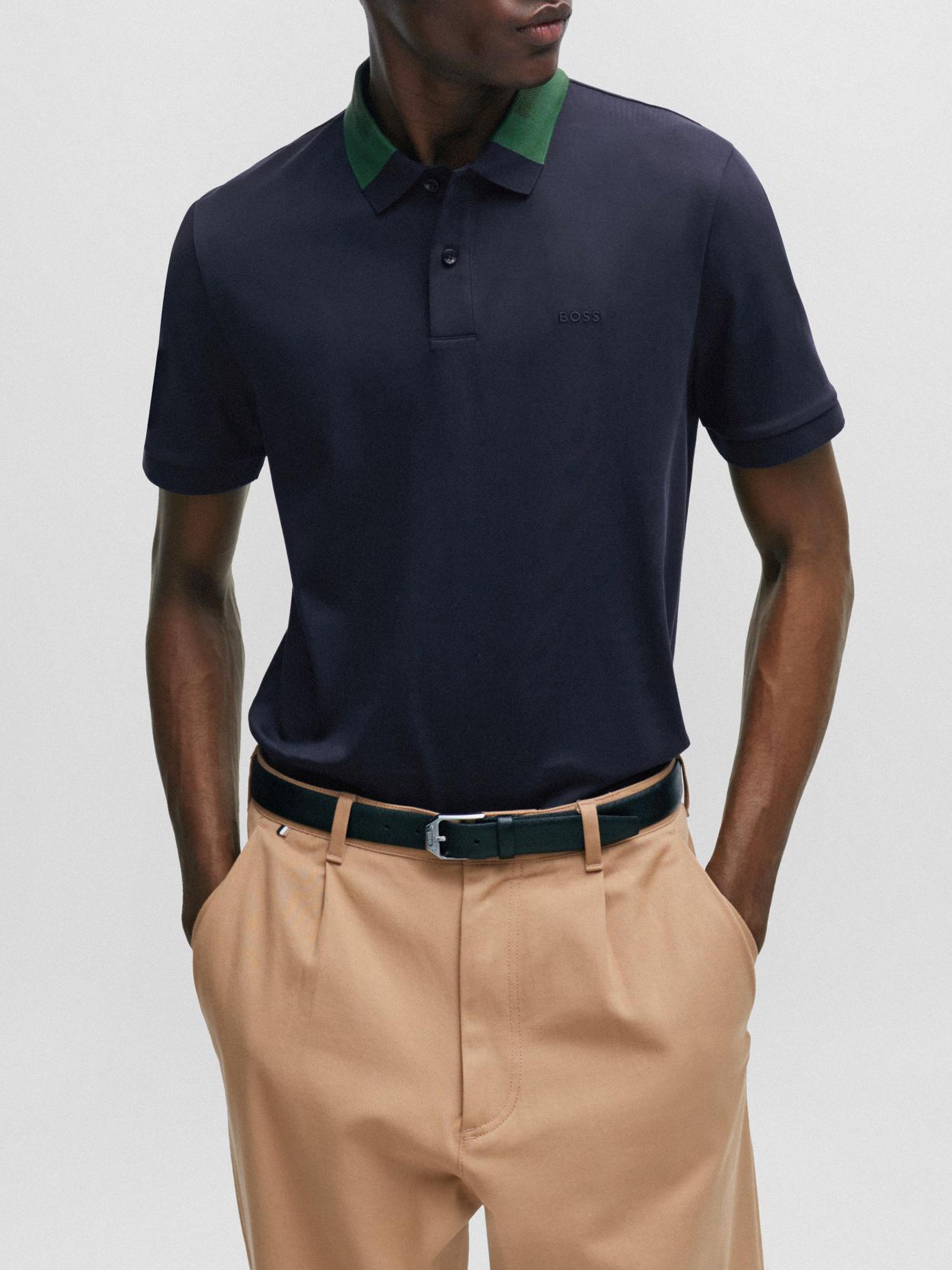BOSS Interlock-Cotton Polo Shirt with Color-Blocked Collar