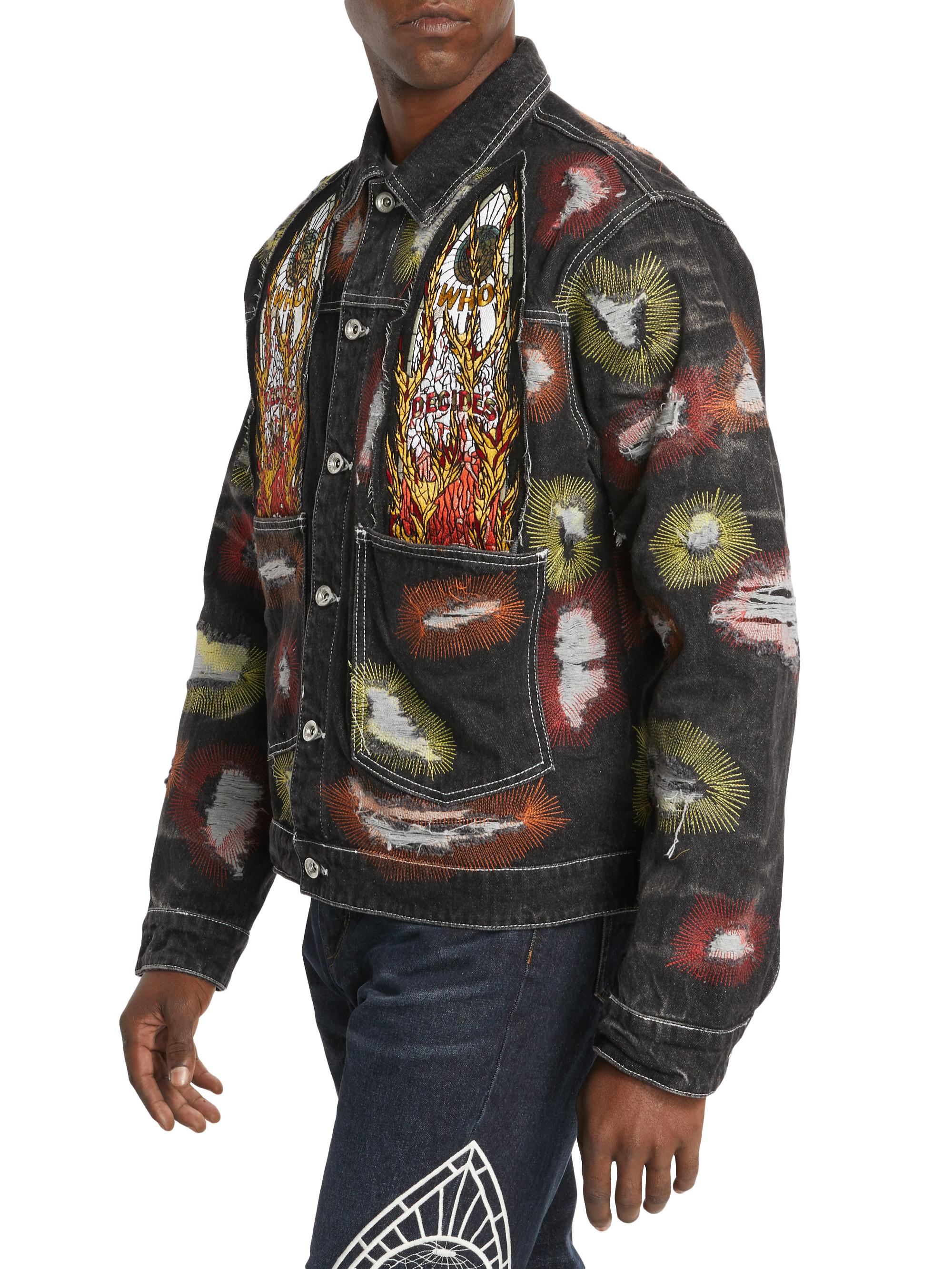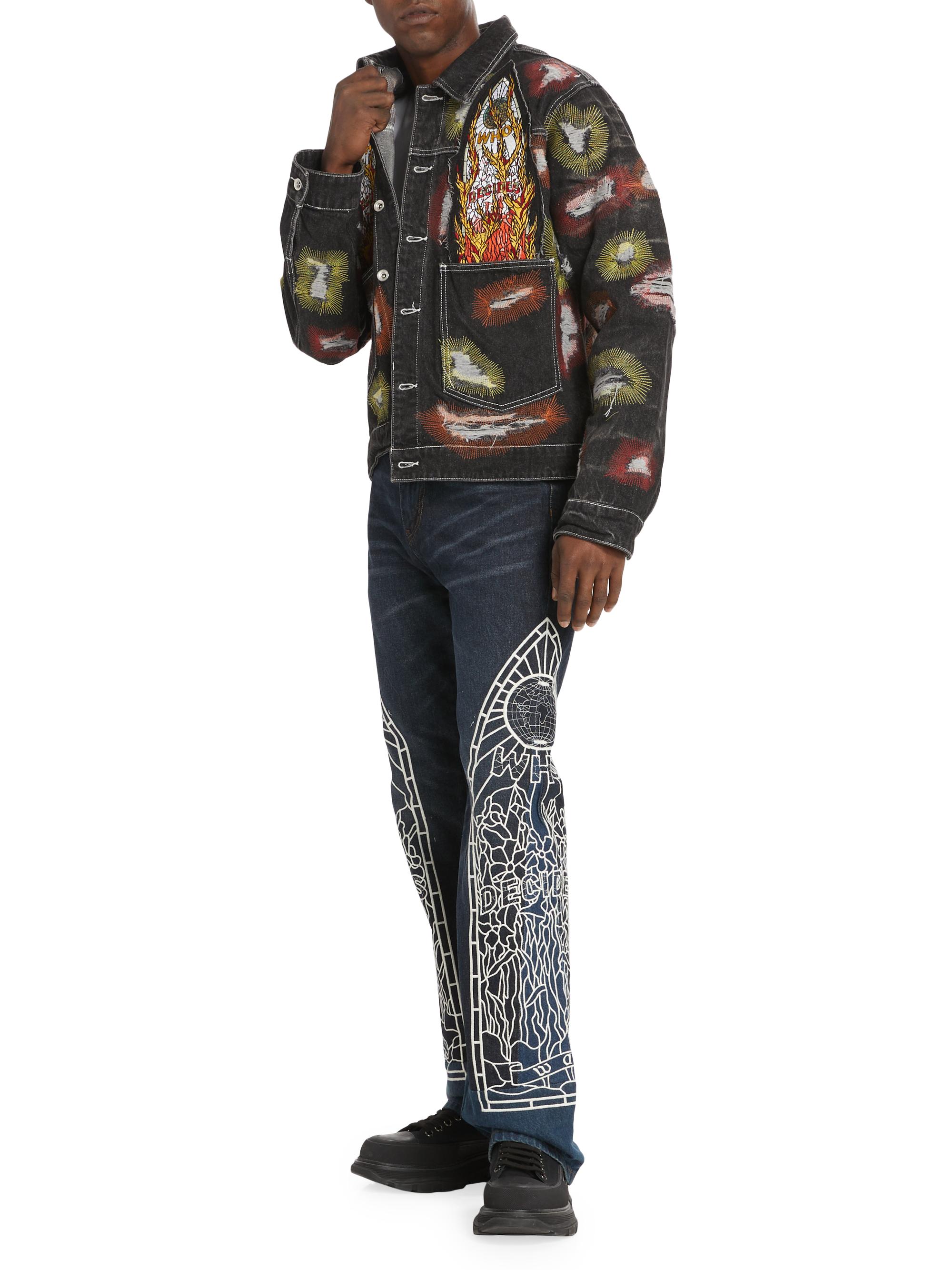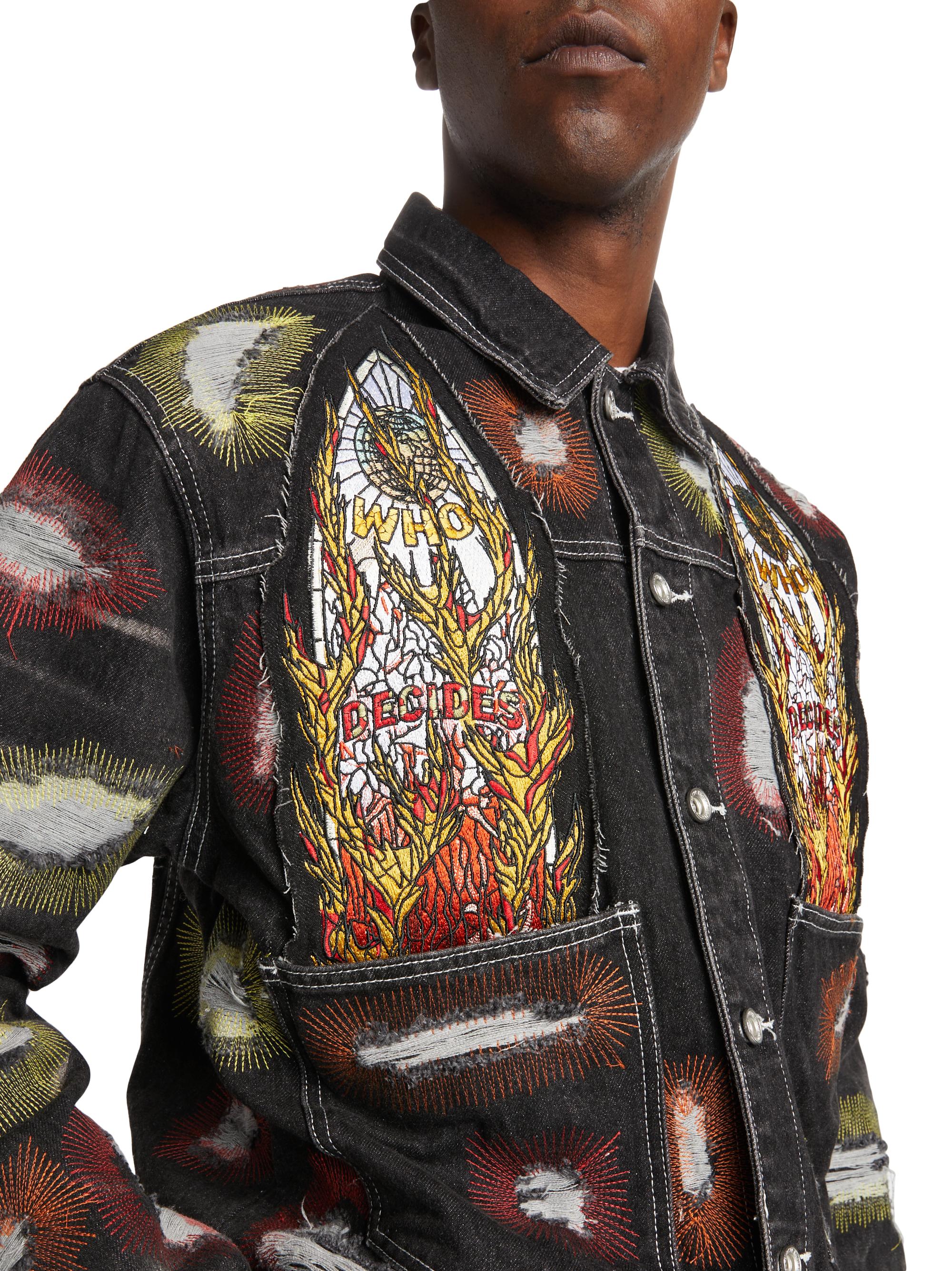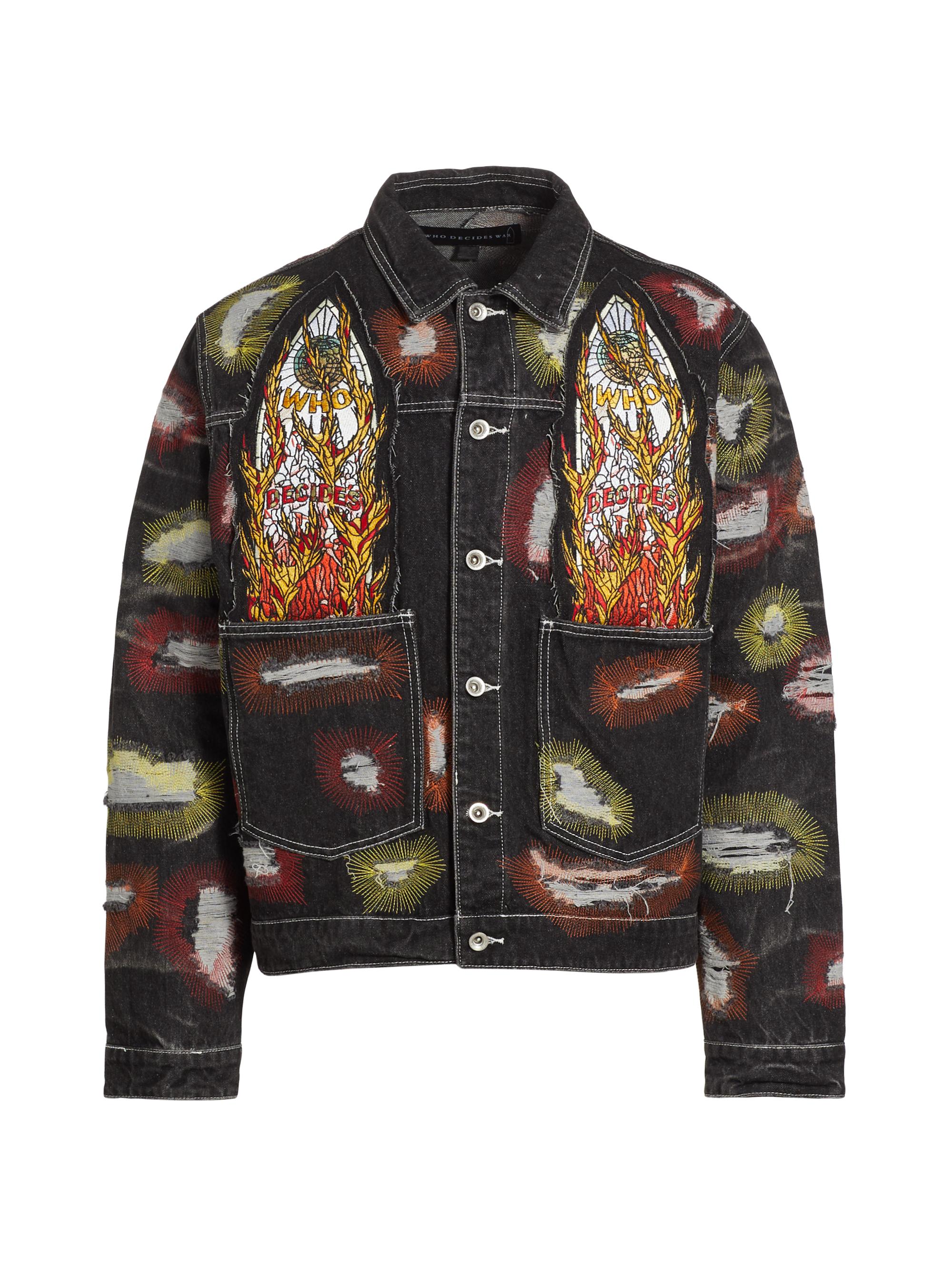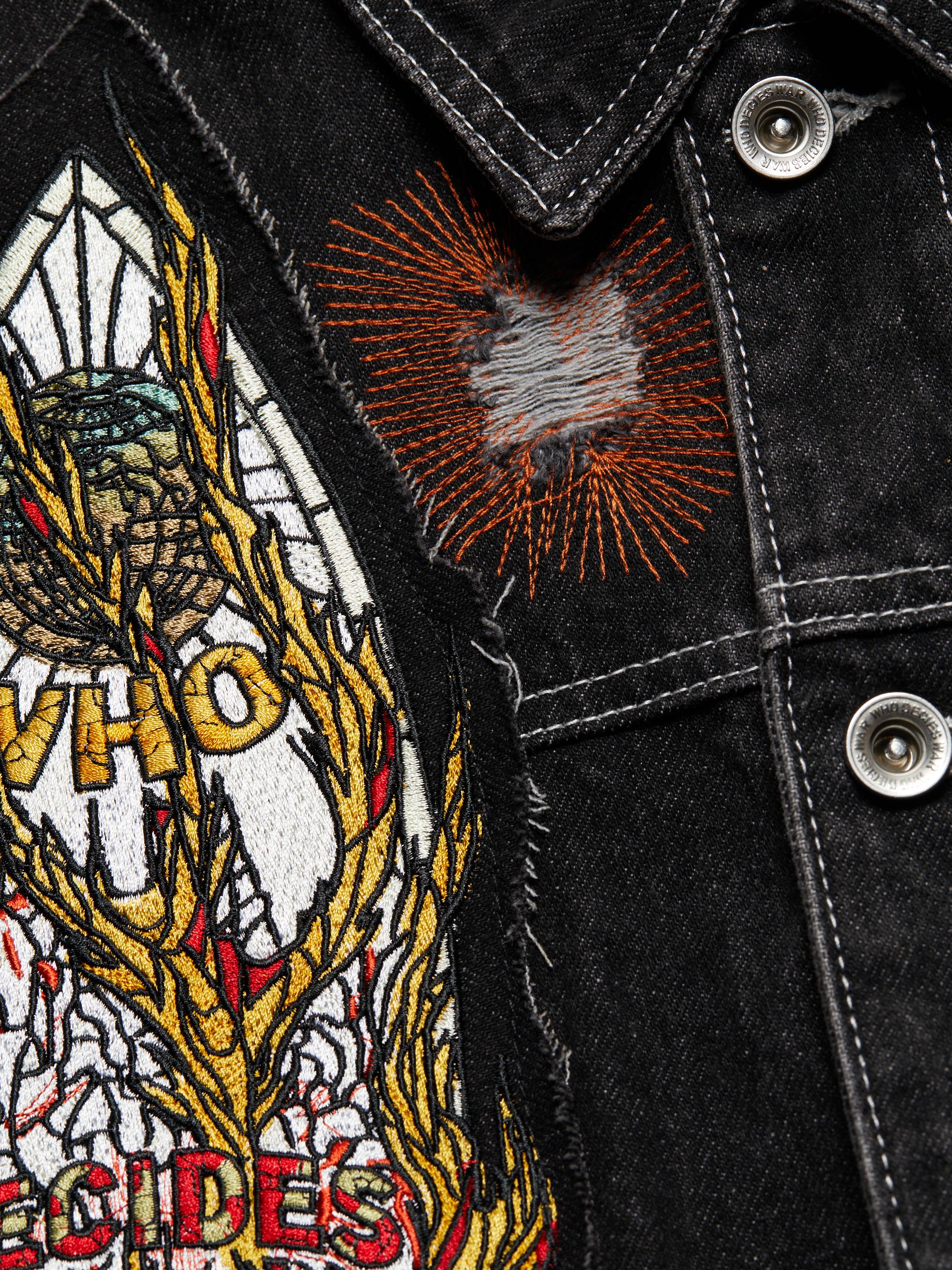 Who Decides War Embroidered Denim Trucker Jacket