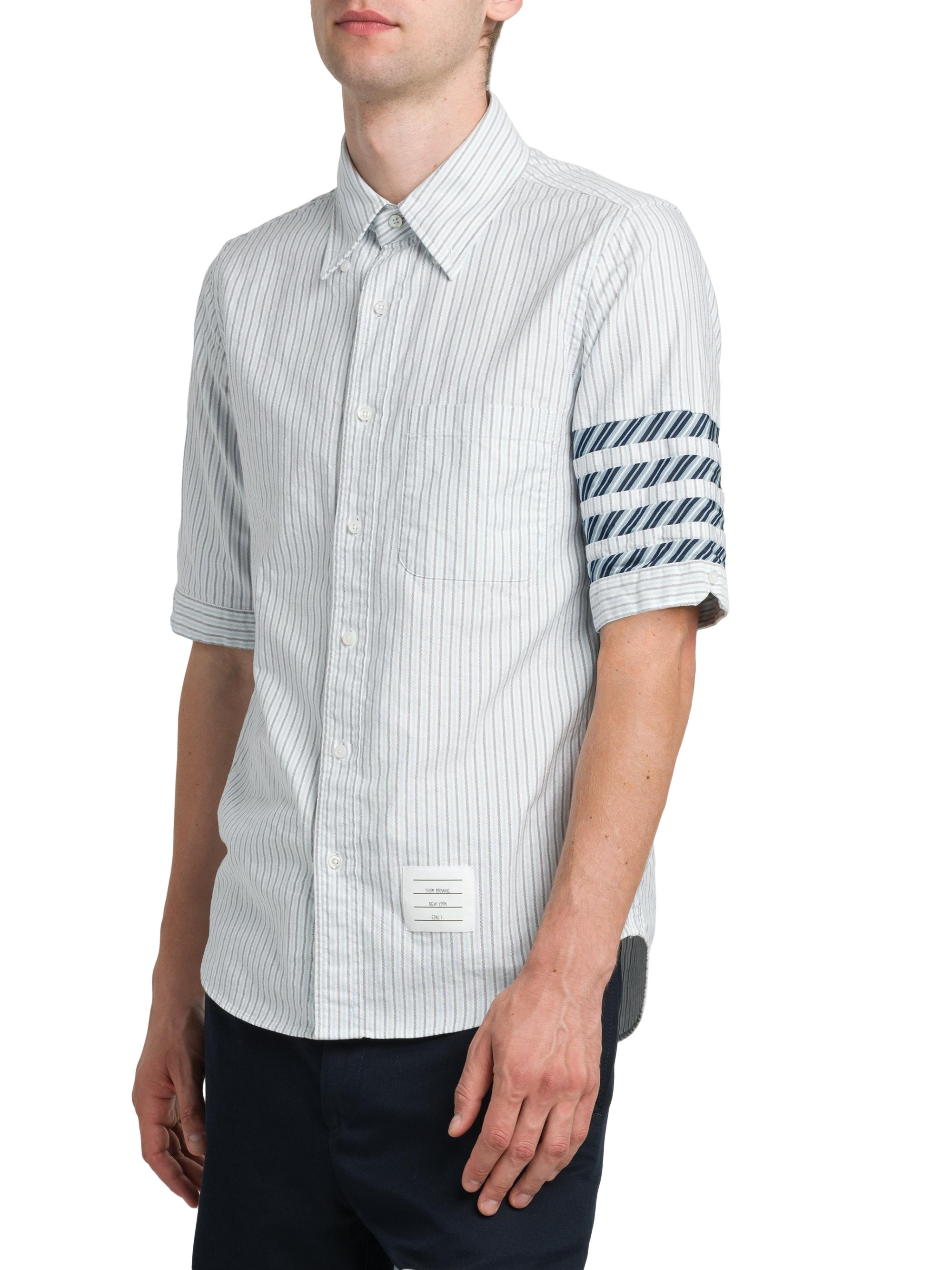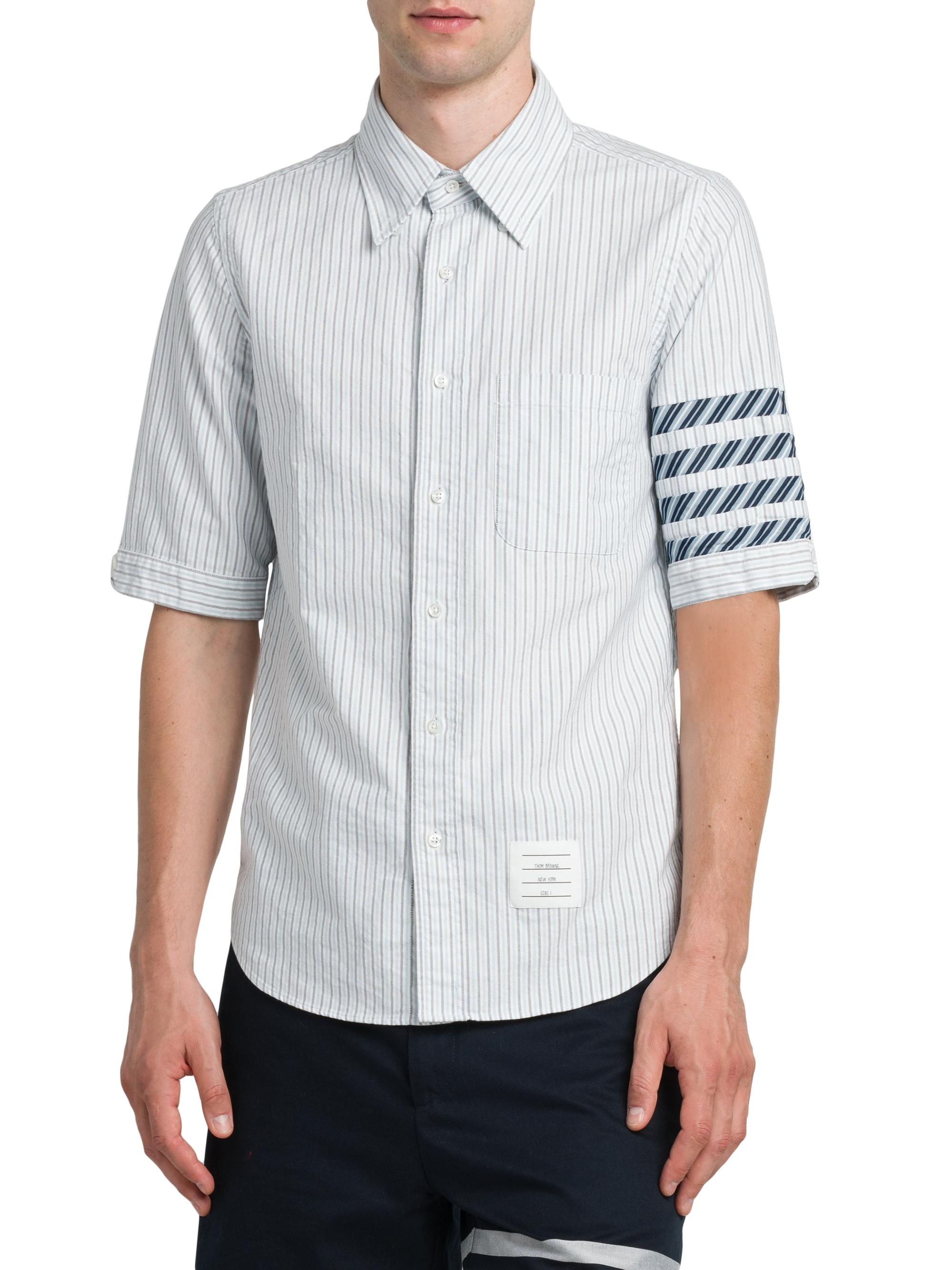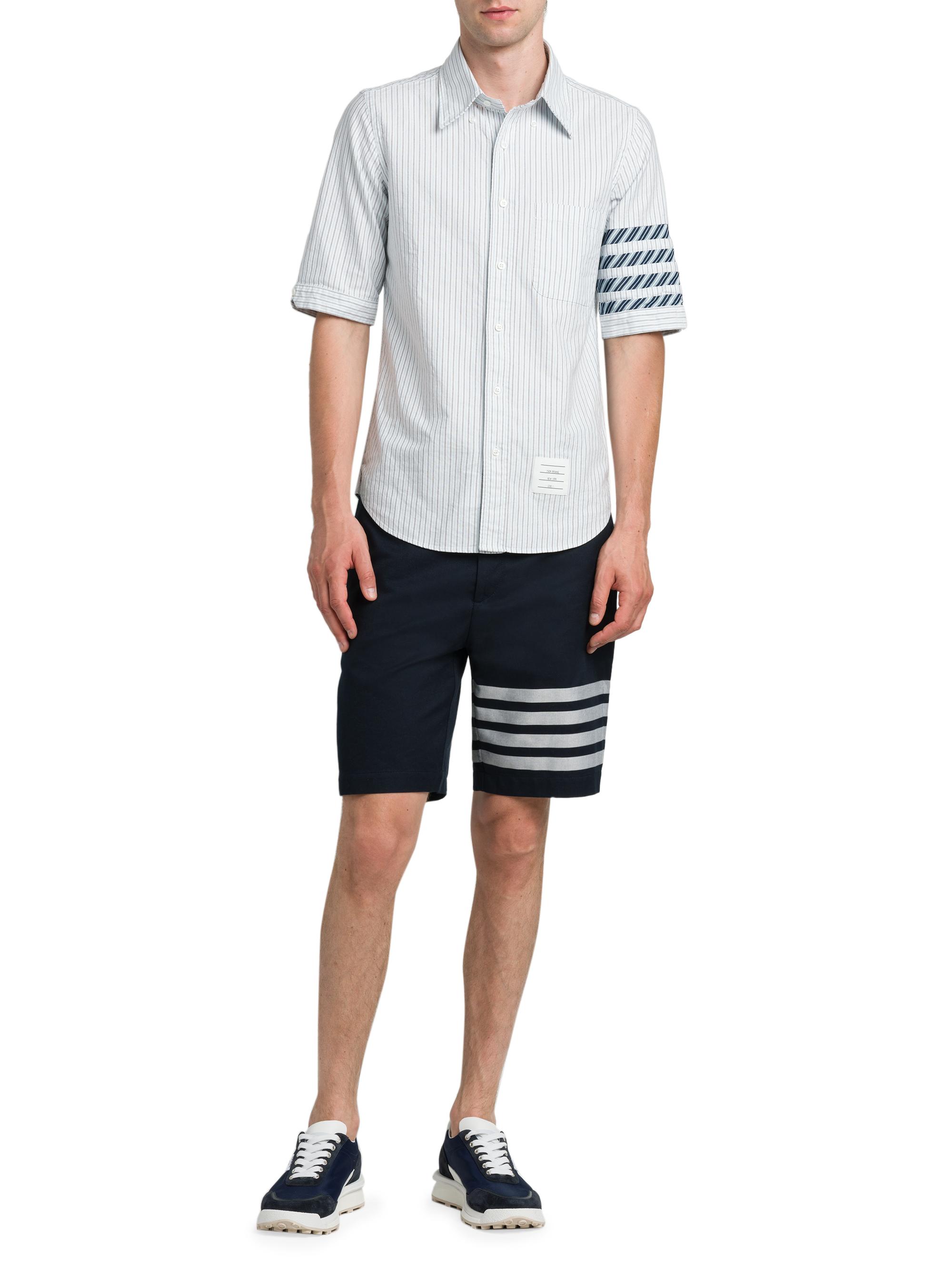Thom Browne 4-Bar Striped Button-Front Shirt