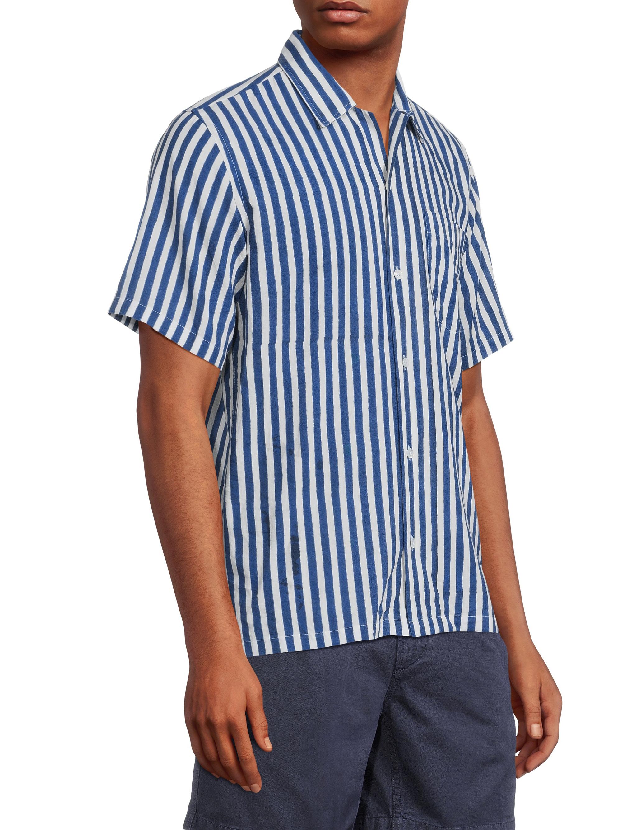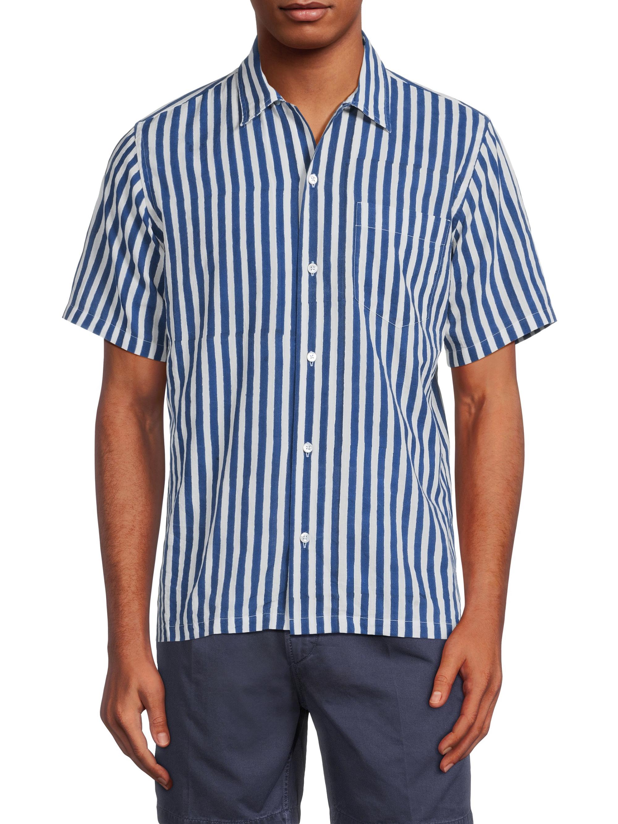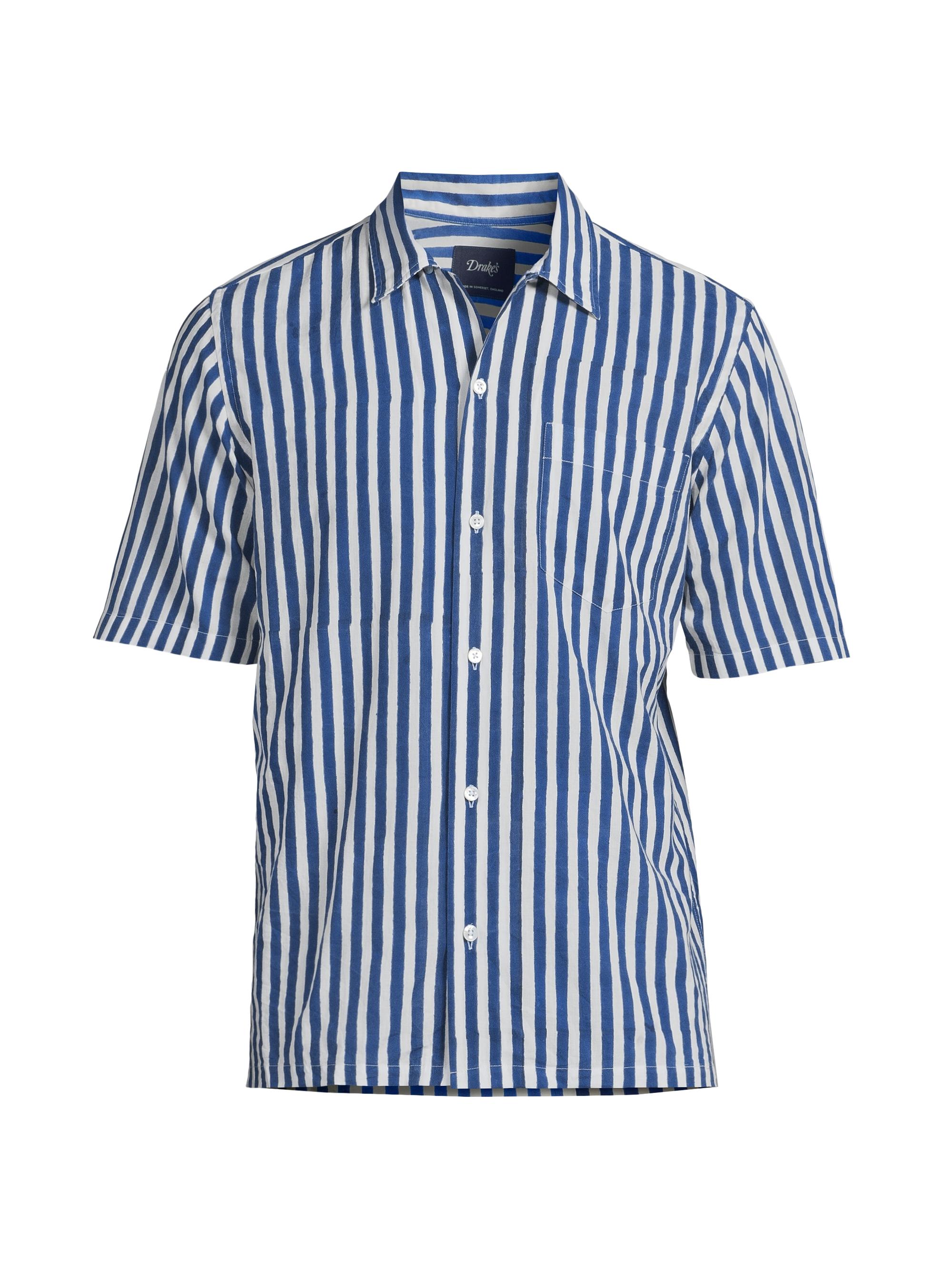 Drake s Camp Collar Striped Short-Sleeve Shirt