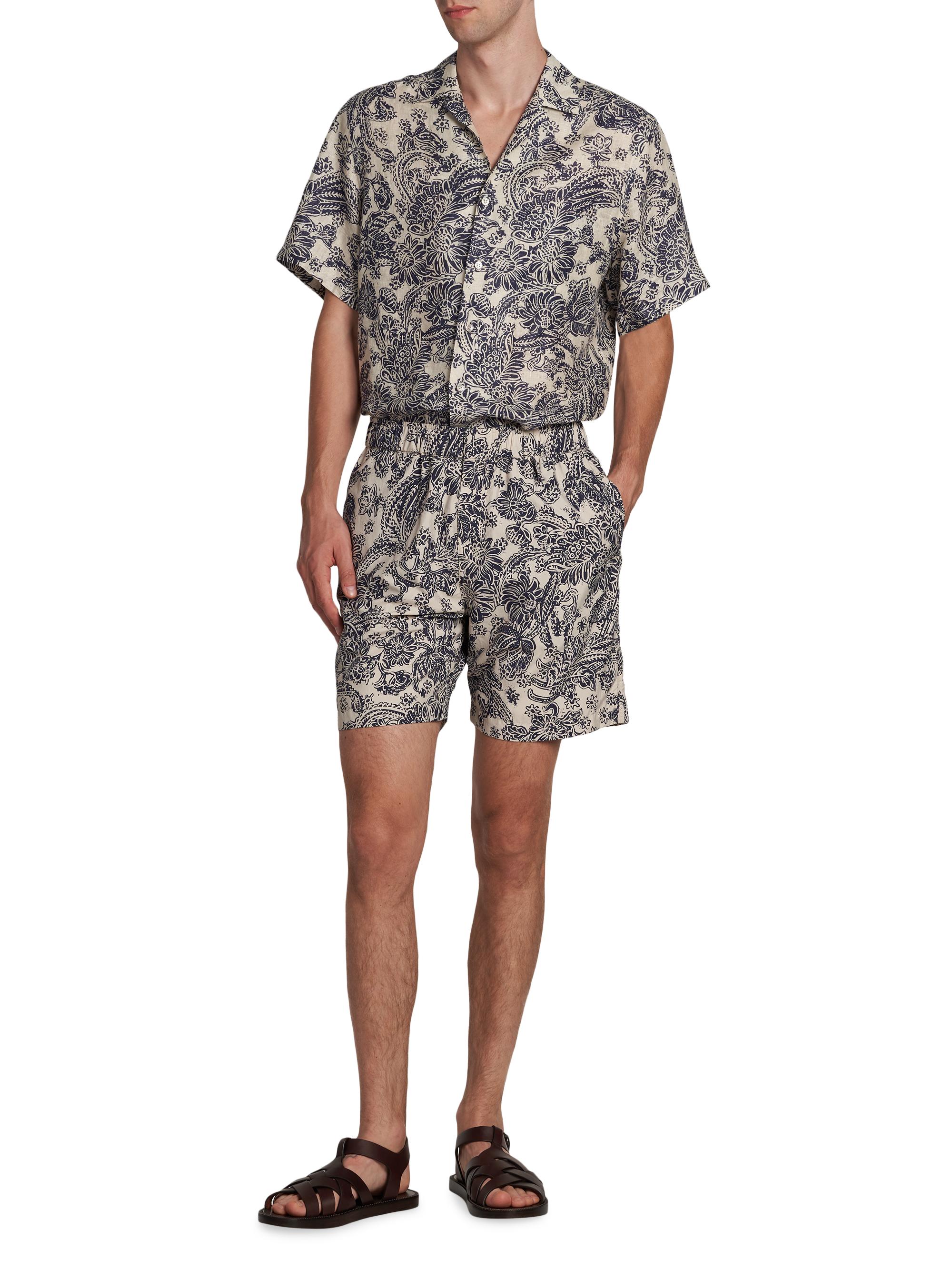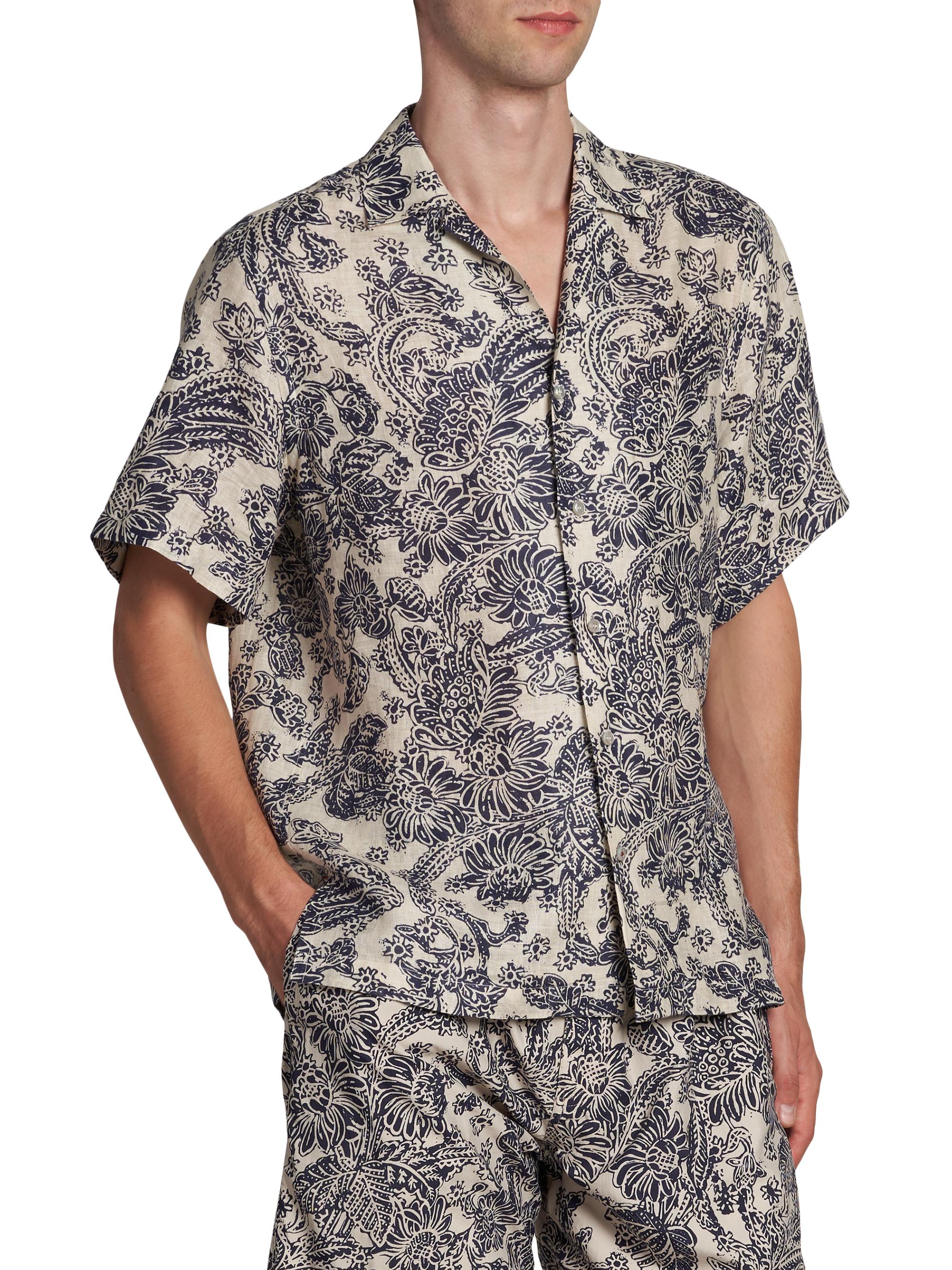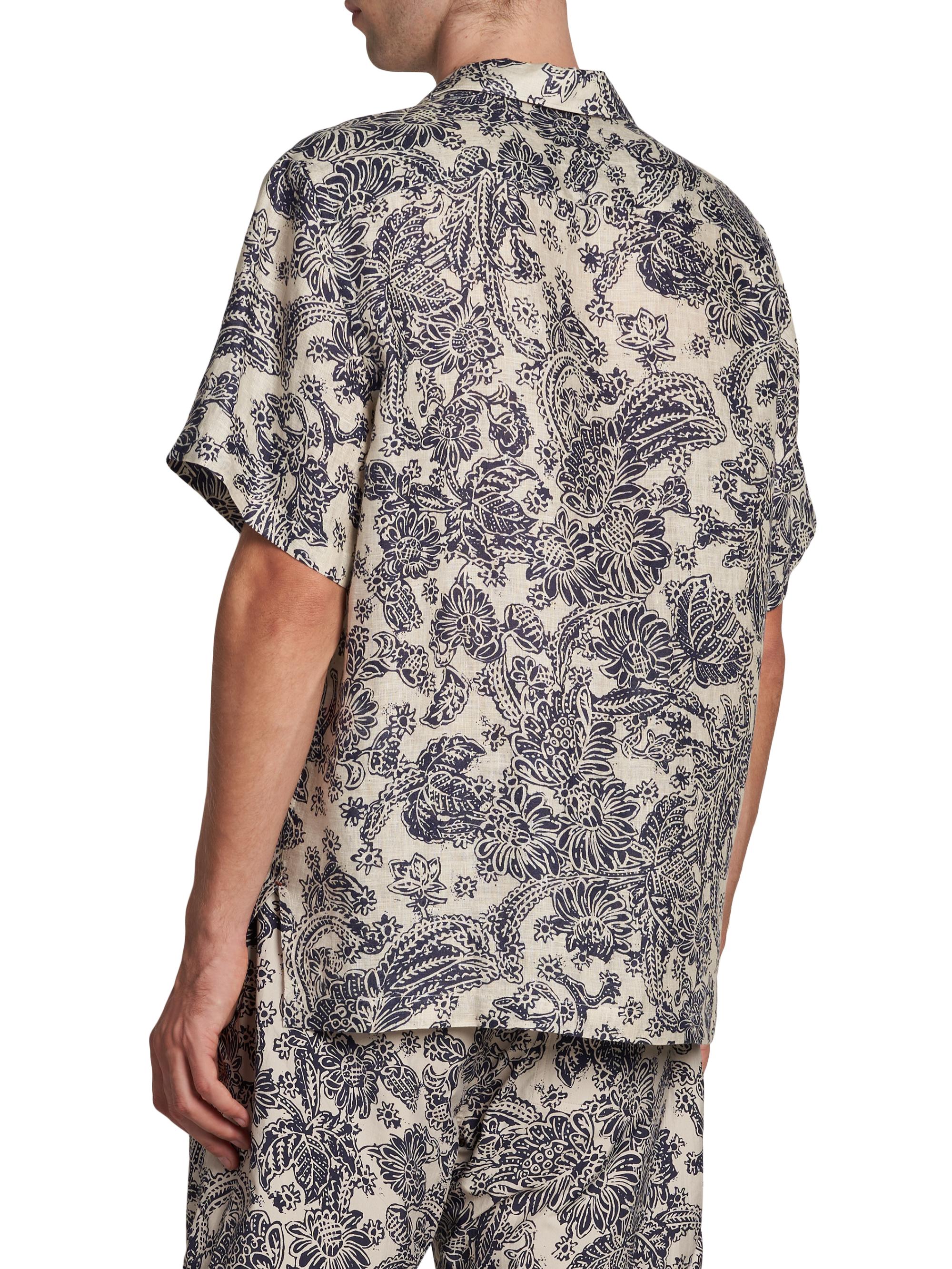 Loro Piana Tindaro Mc Woodblock Botanic Linen Camp Shirt