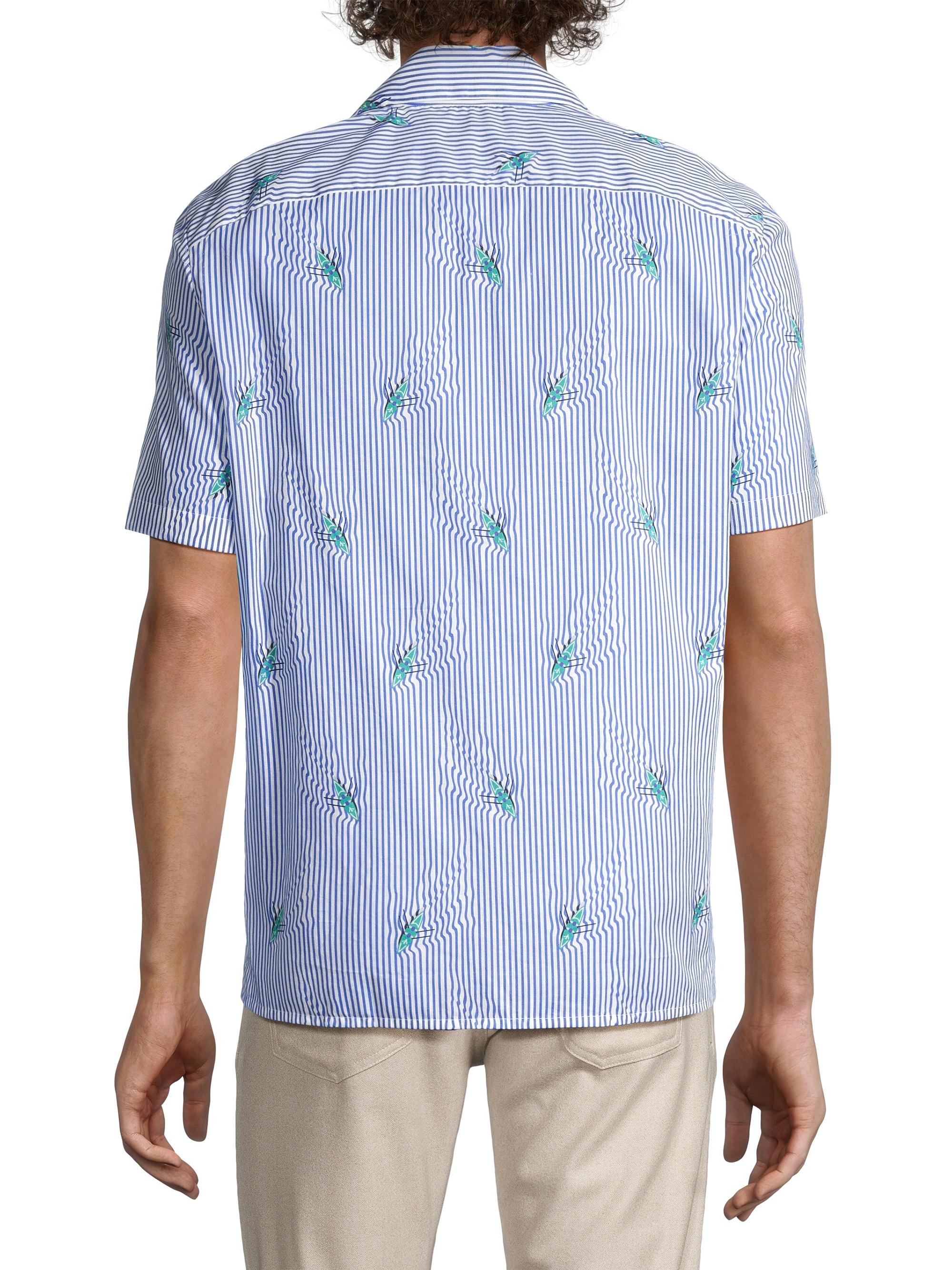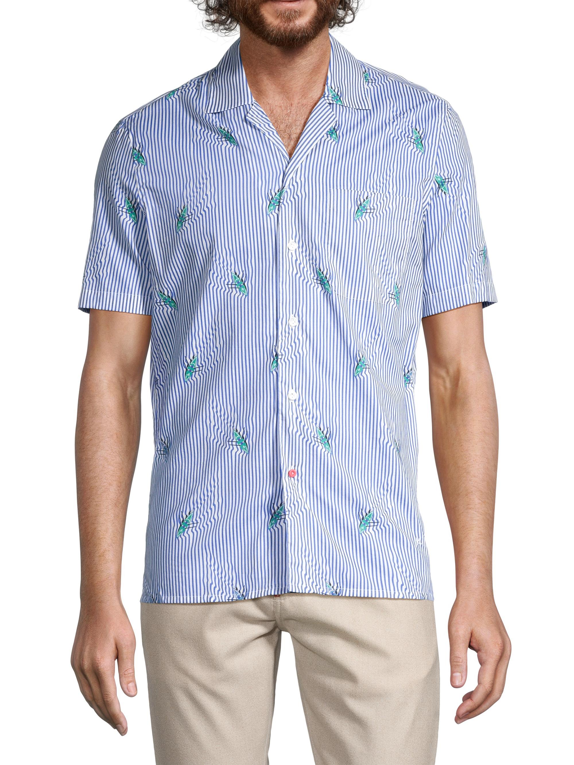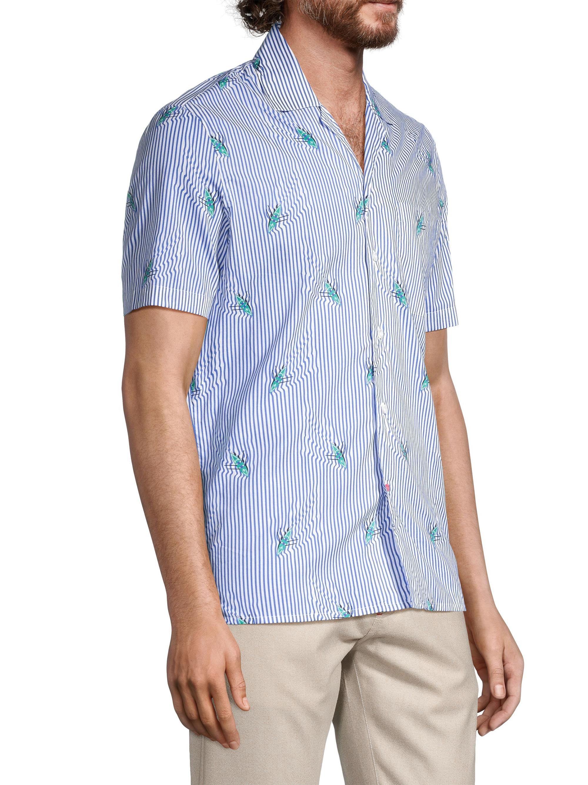 Isaia Kayak Stripe Print Camp Collar Shirt