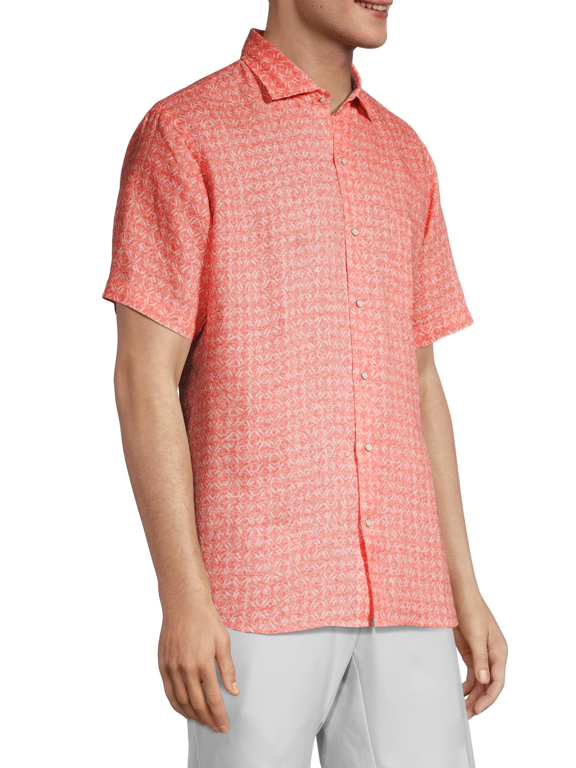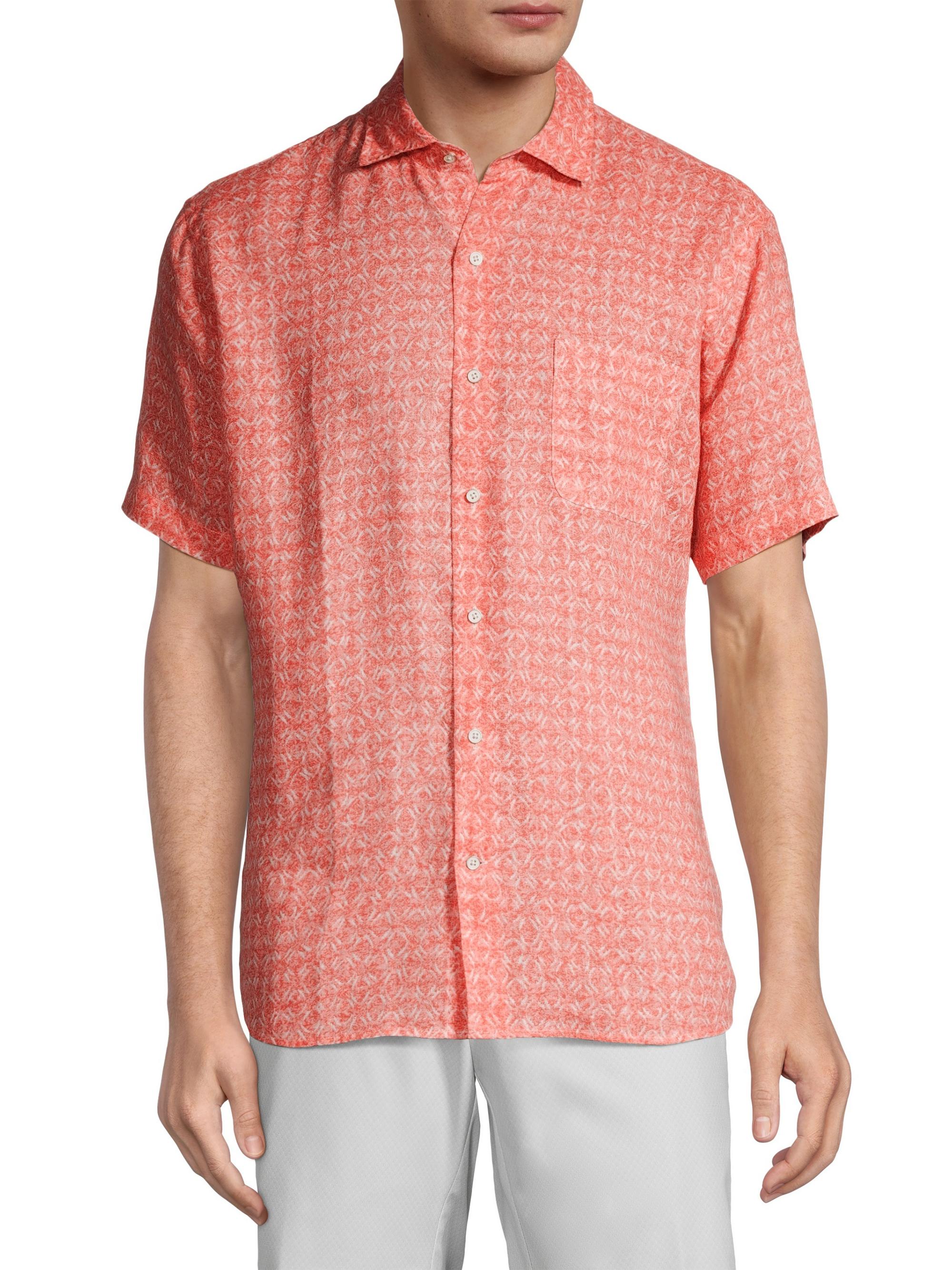 Peter Millar Crown Sandblast Linen Button-Front Shirt