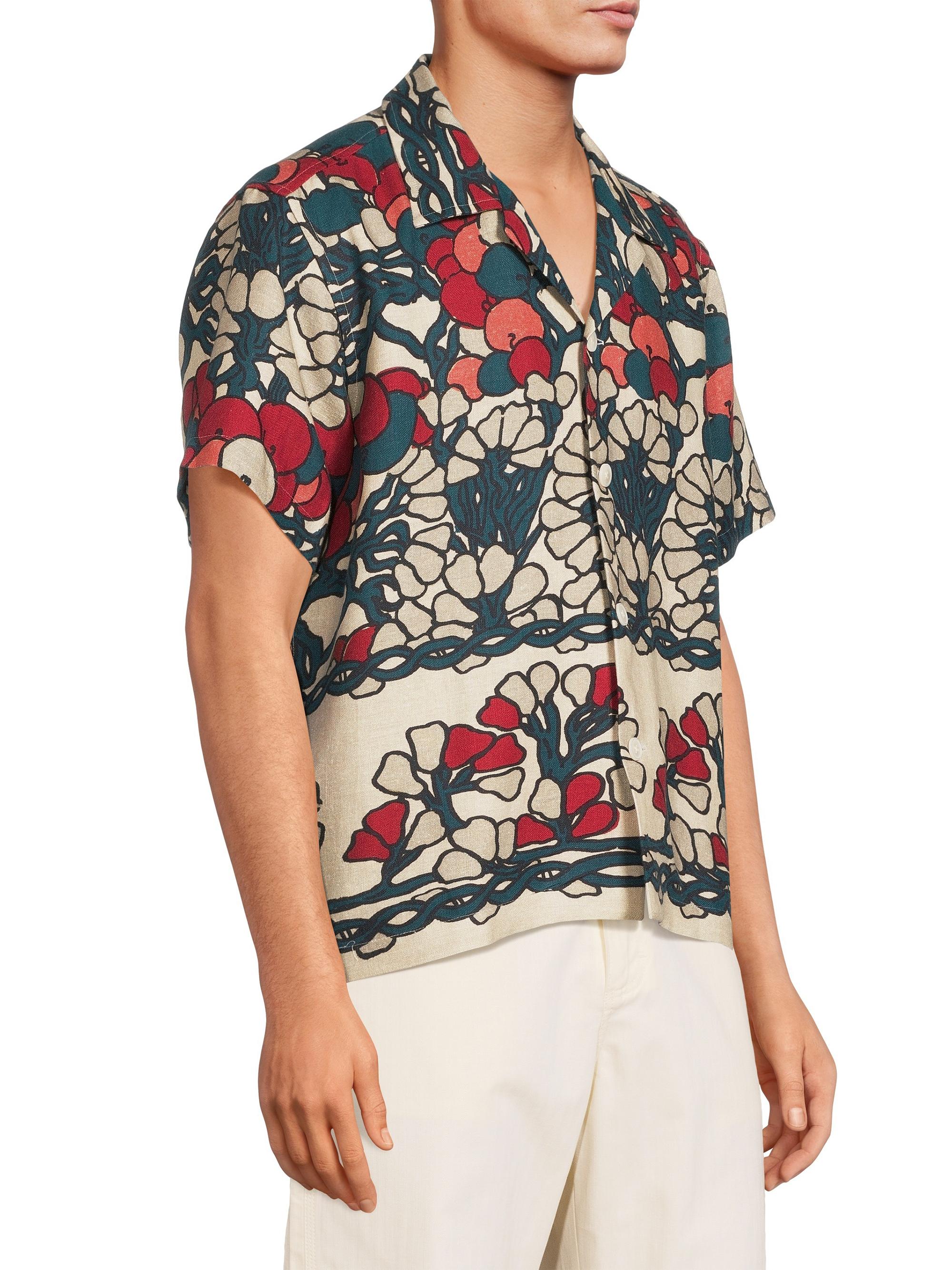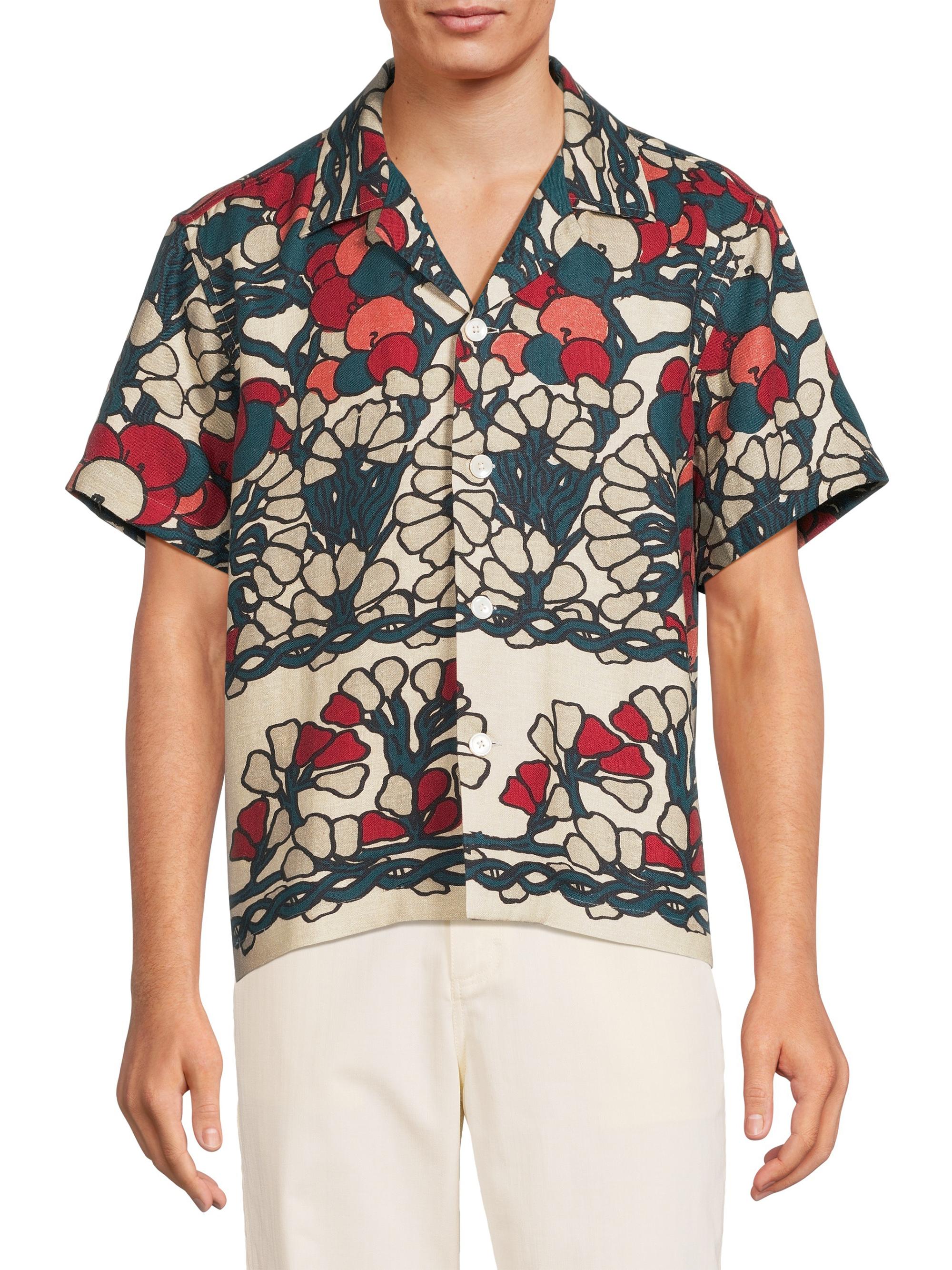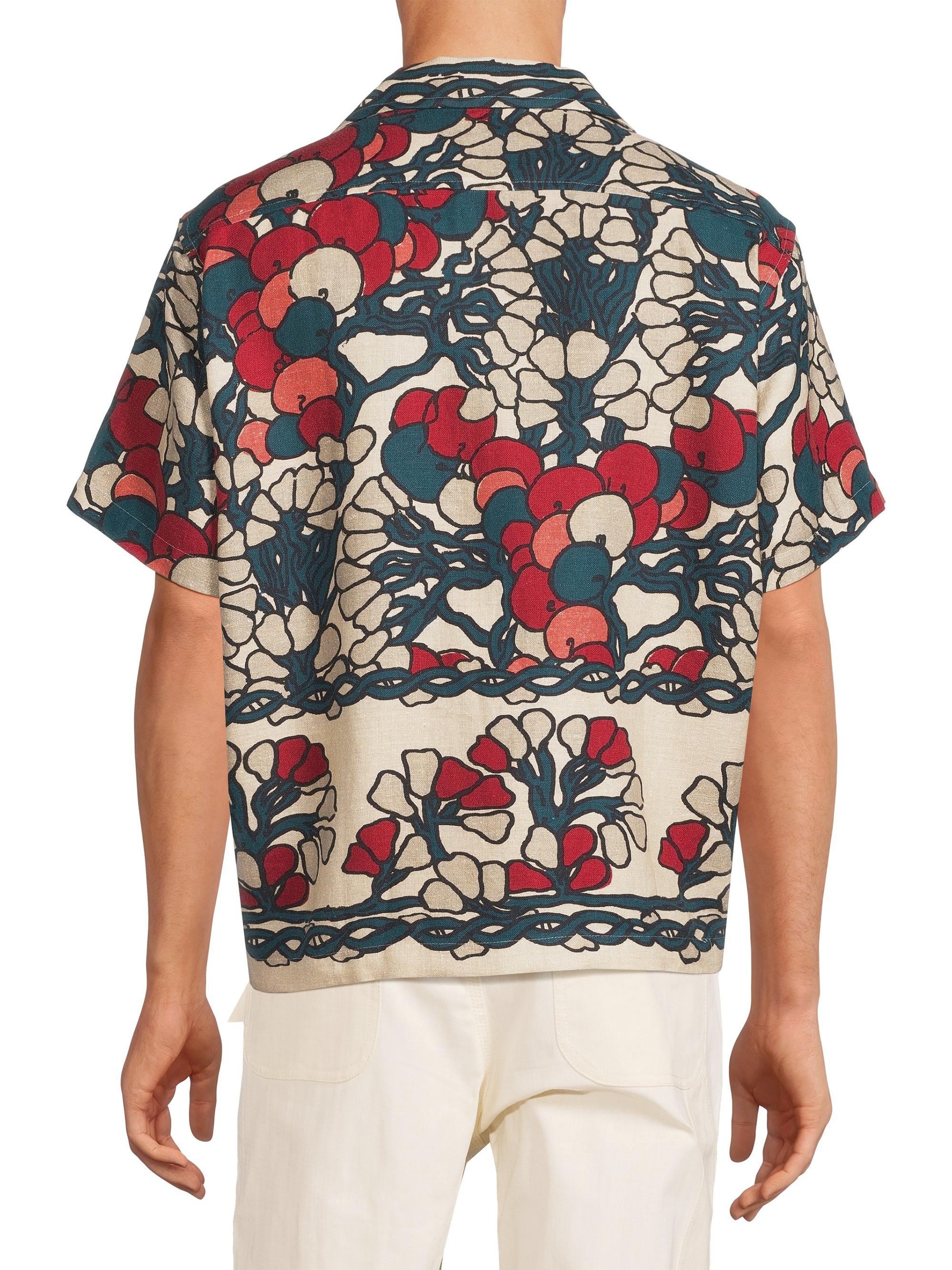 Bode Crane Estate Garden Lattice Linen Camp Shirt