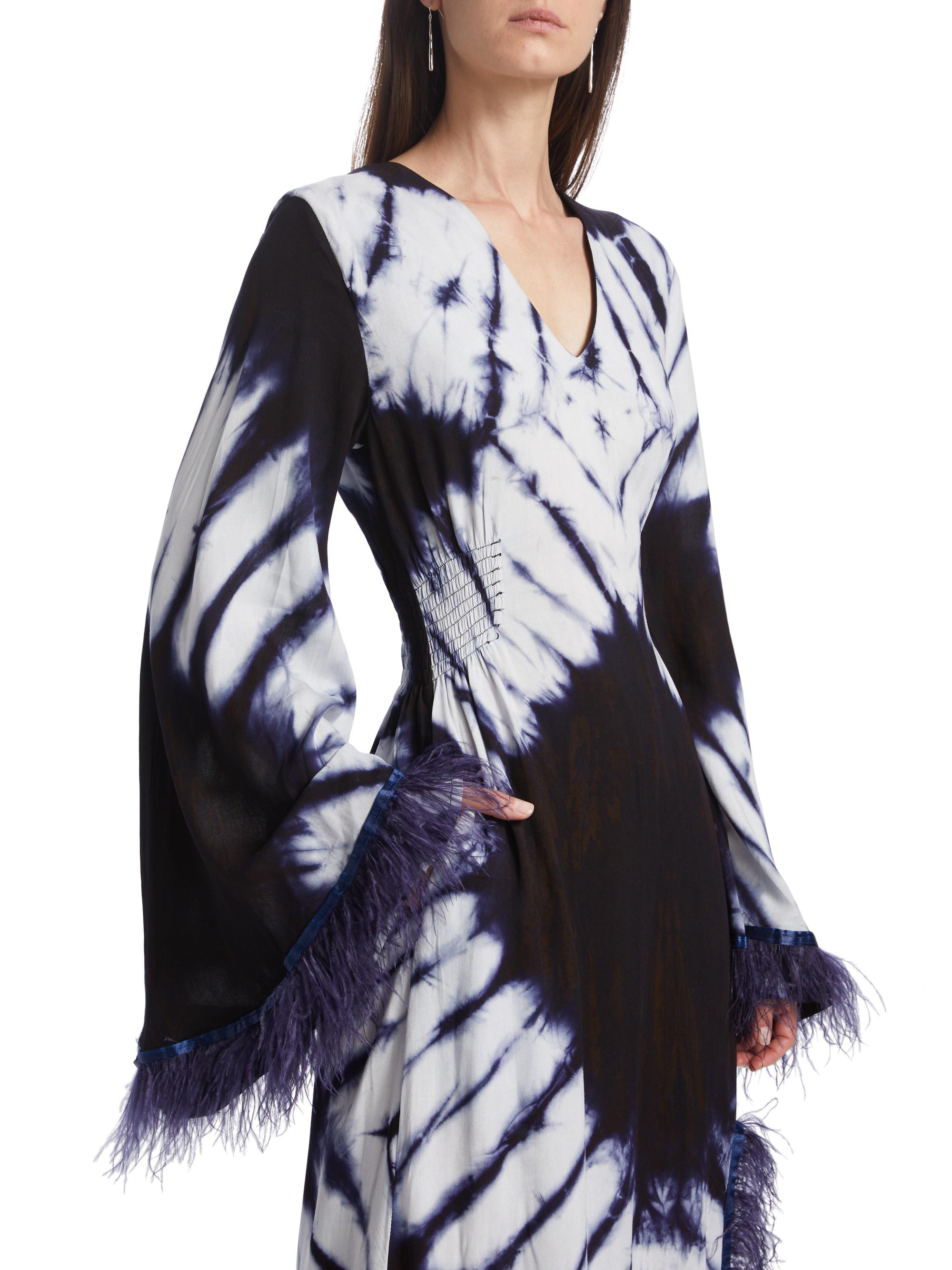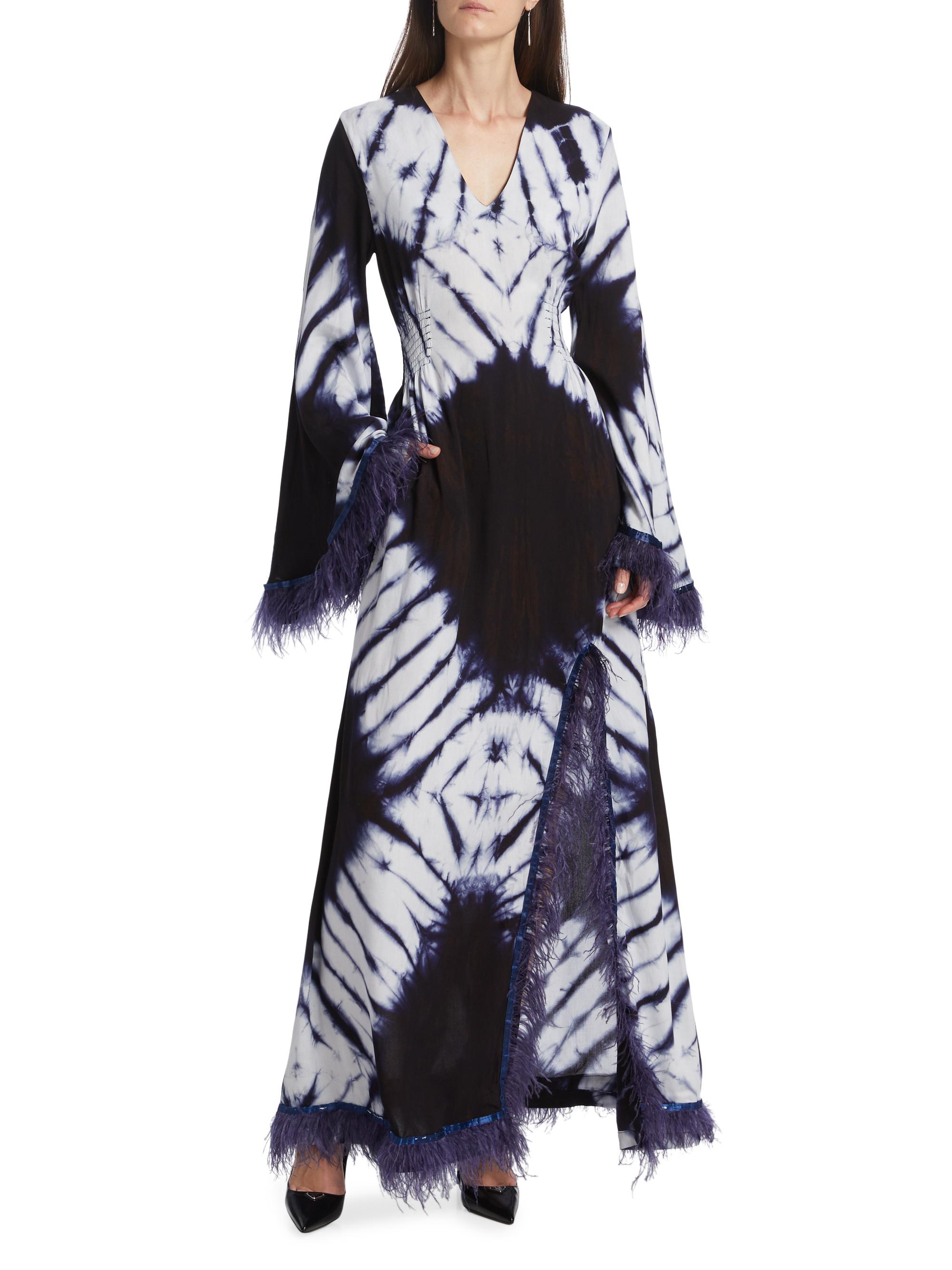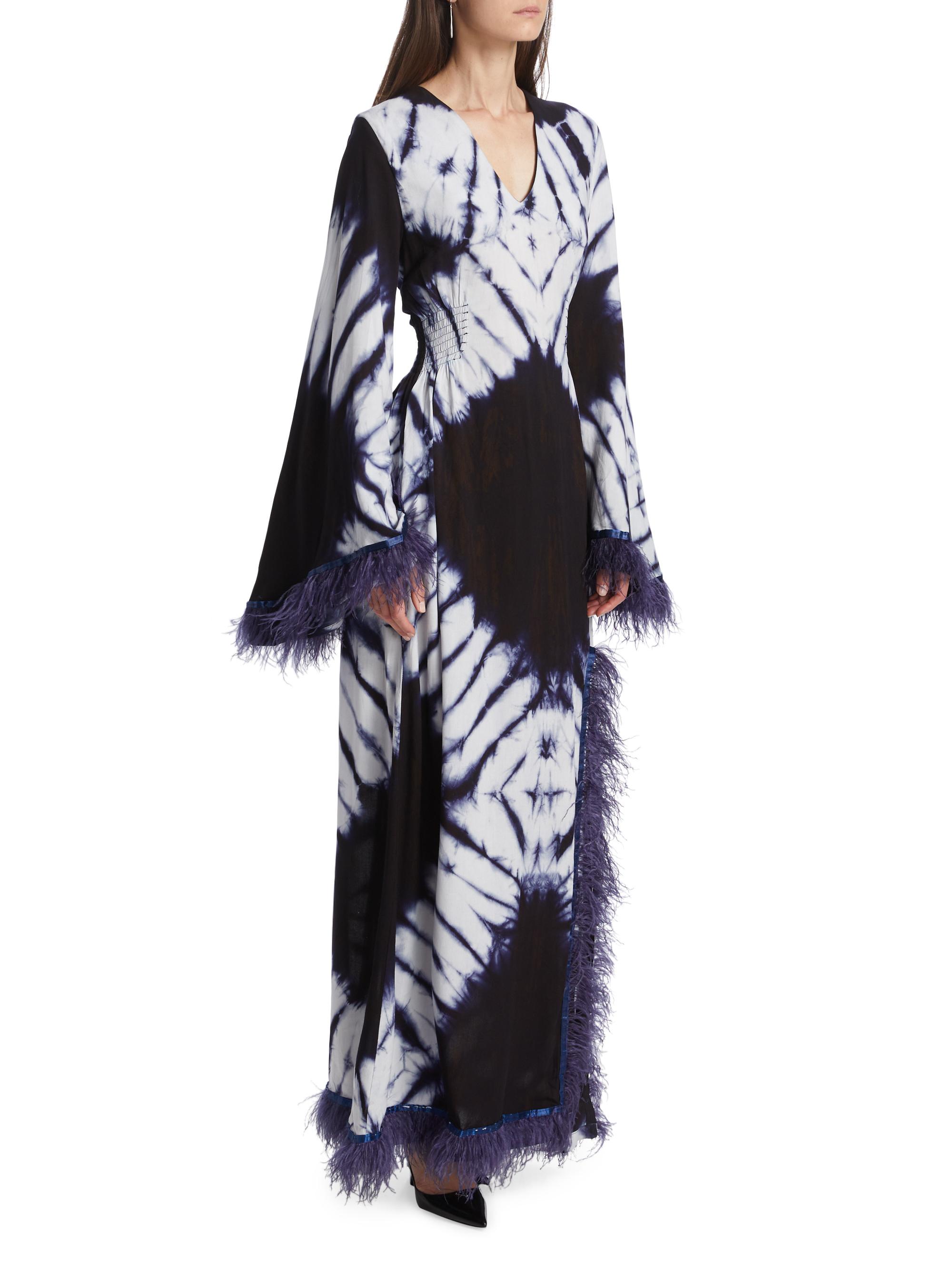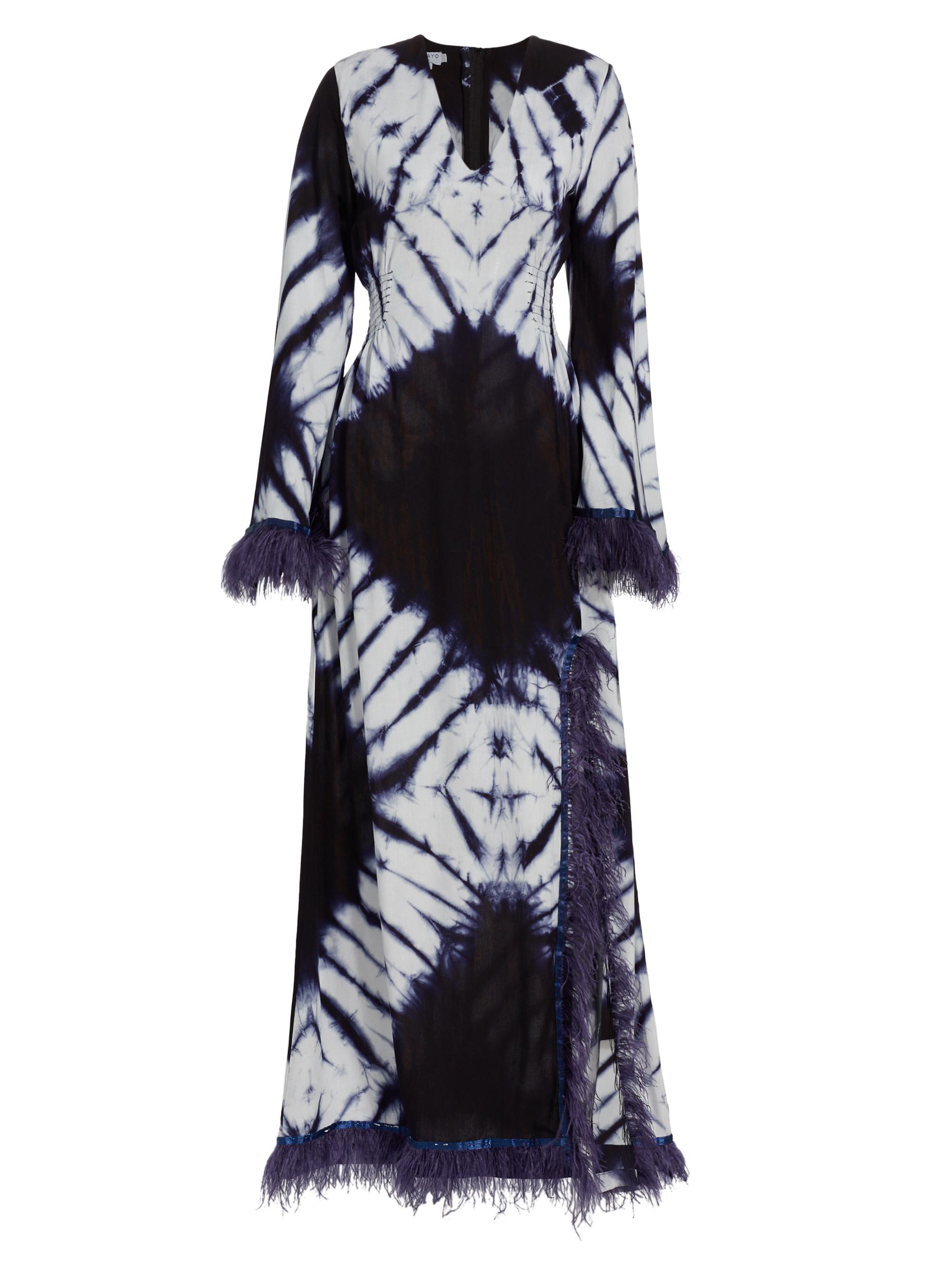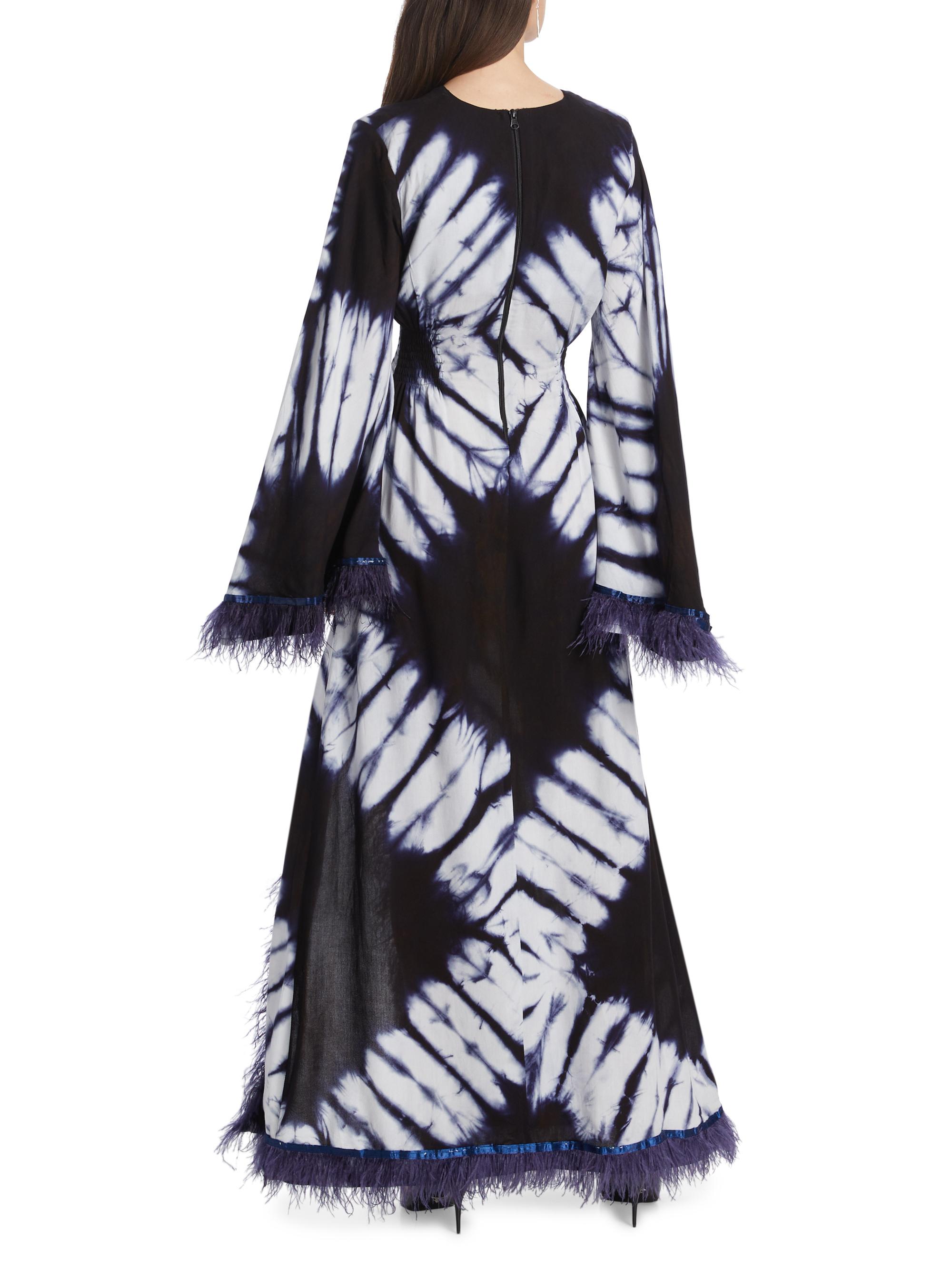 Busayo Moji Hand-Dyed Feather-Trim Maxi Dress
