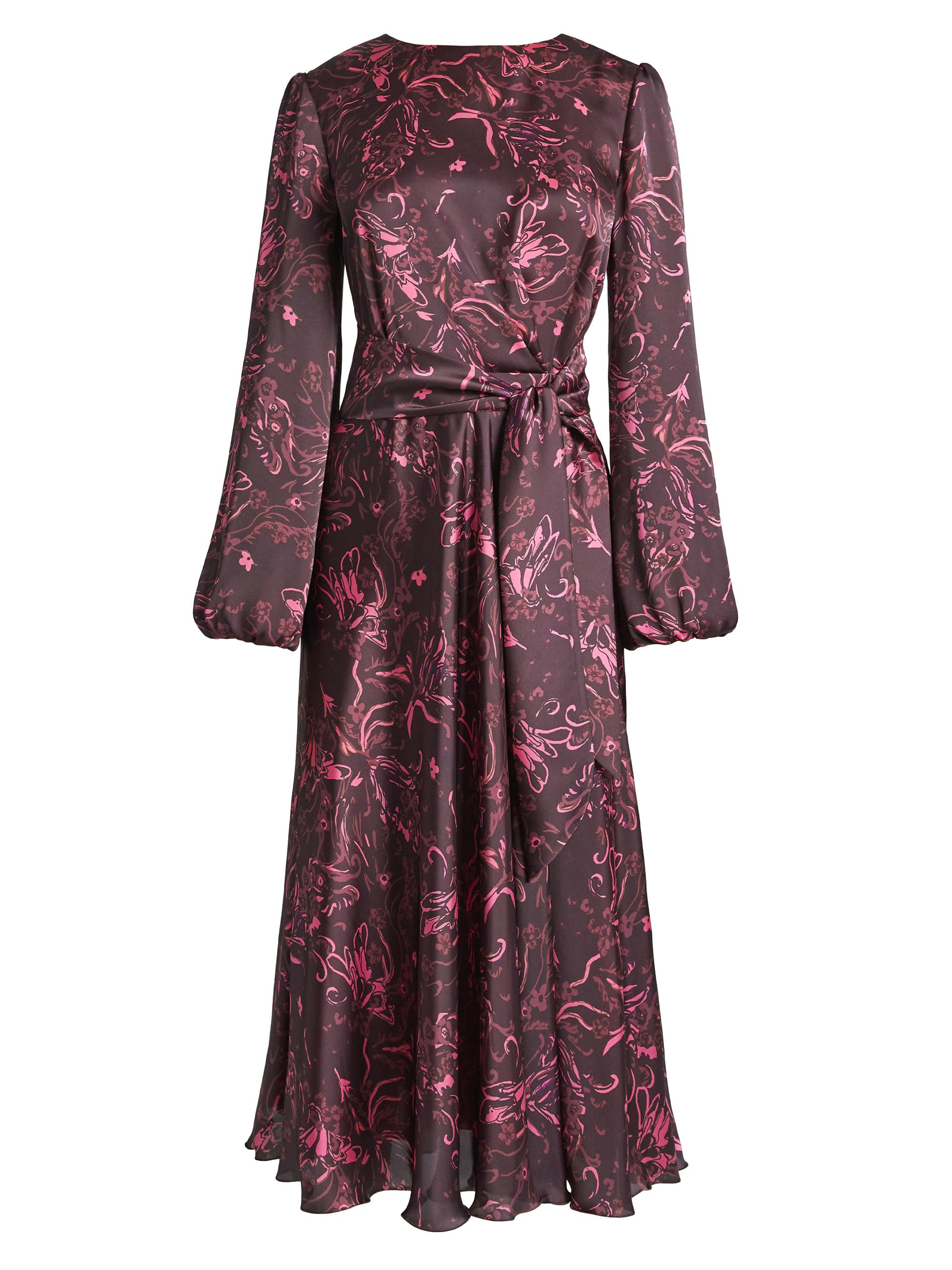 Santorelli Floral Charmeuse Fit & Flare Midi-Dress