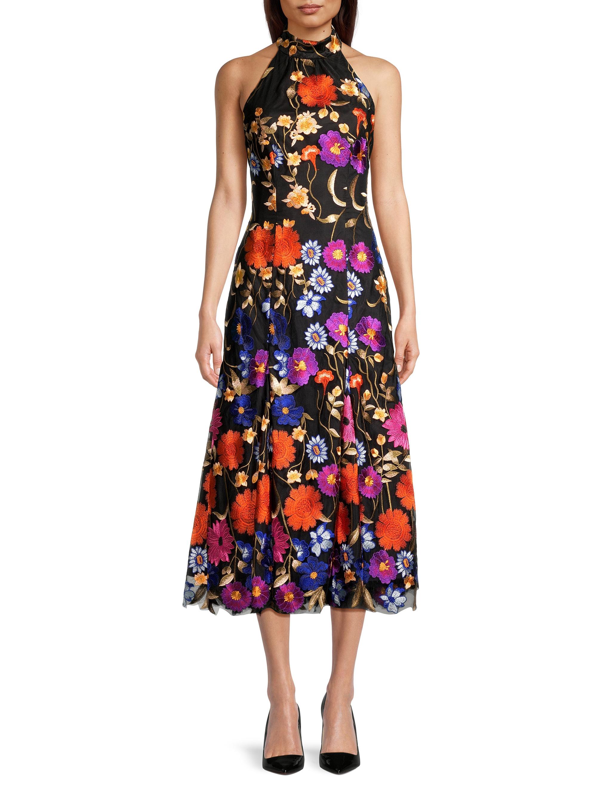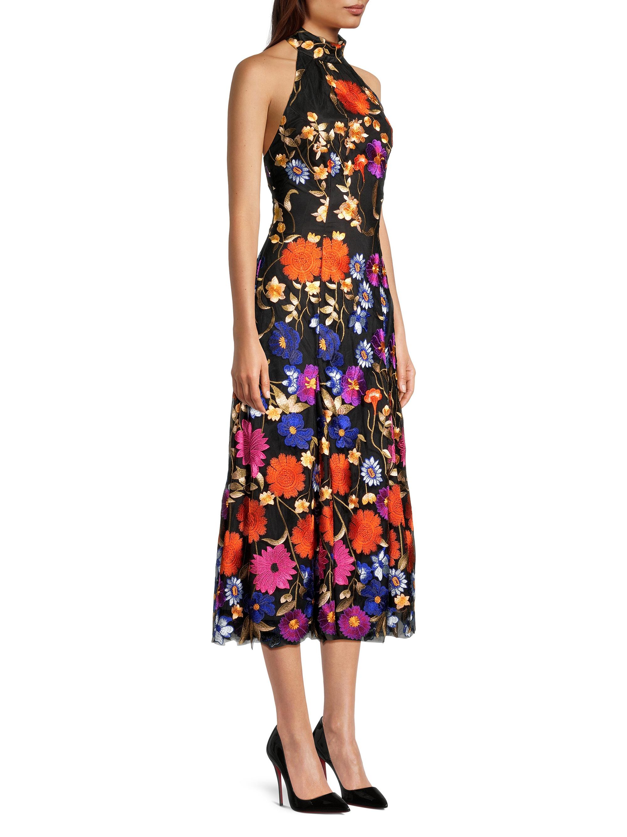 Milly Penelope Floral-Embroidered Midi-Dress