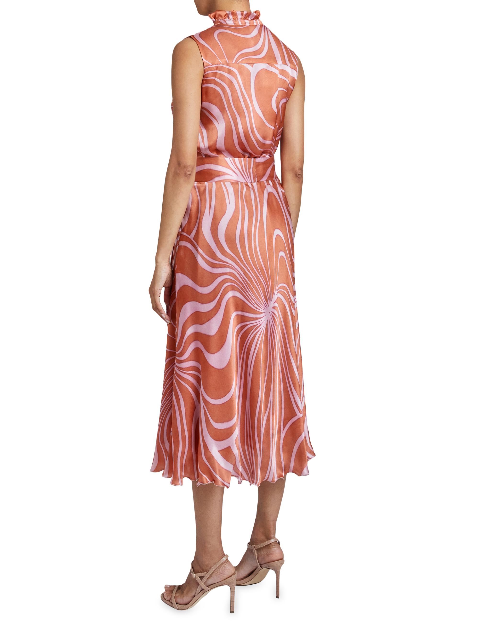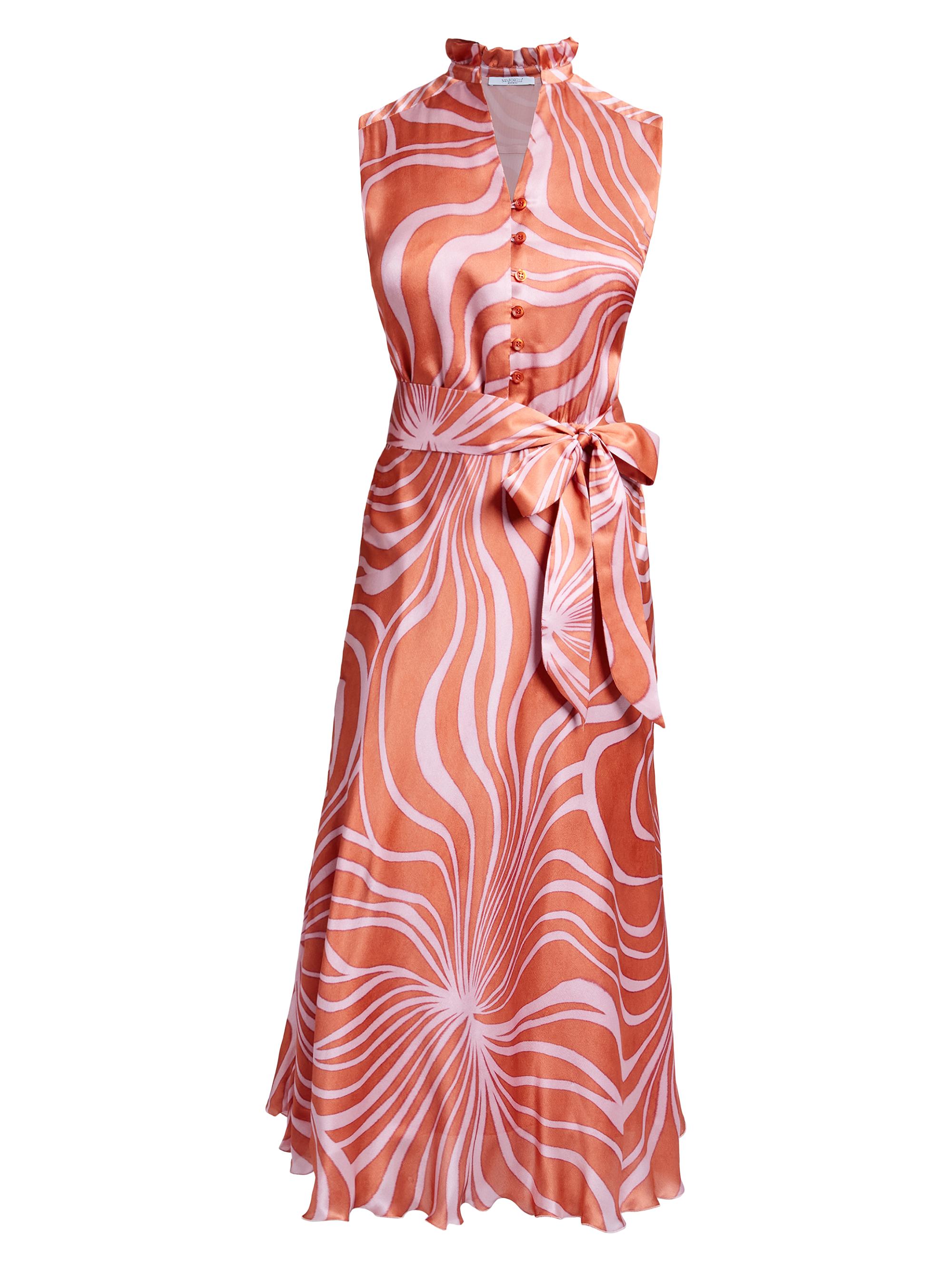 Santorelli Printed Silk Tie-Waist Midi-Dress