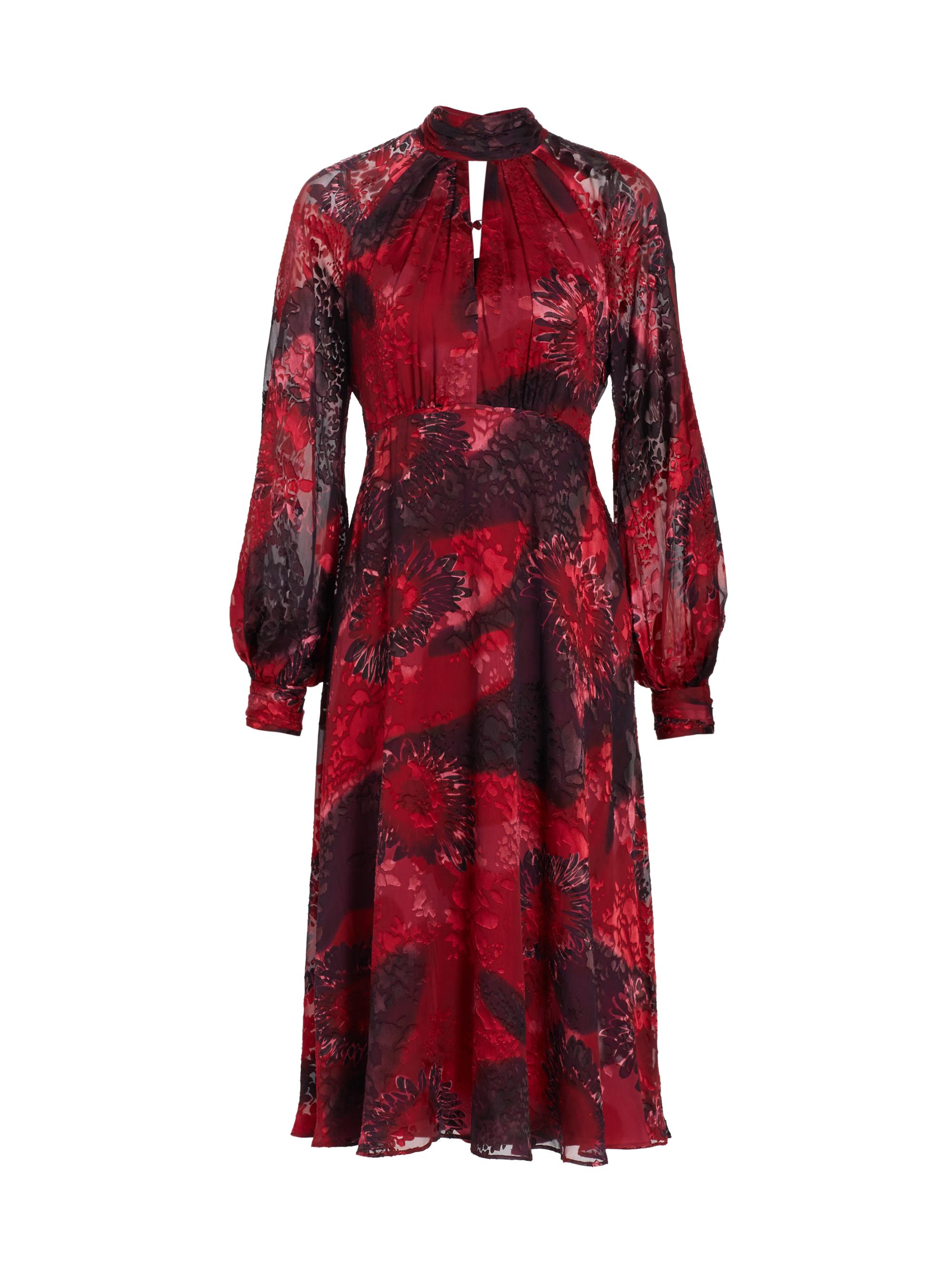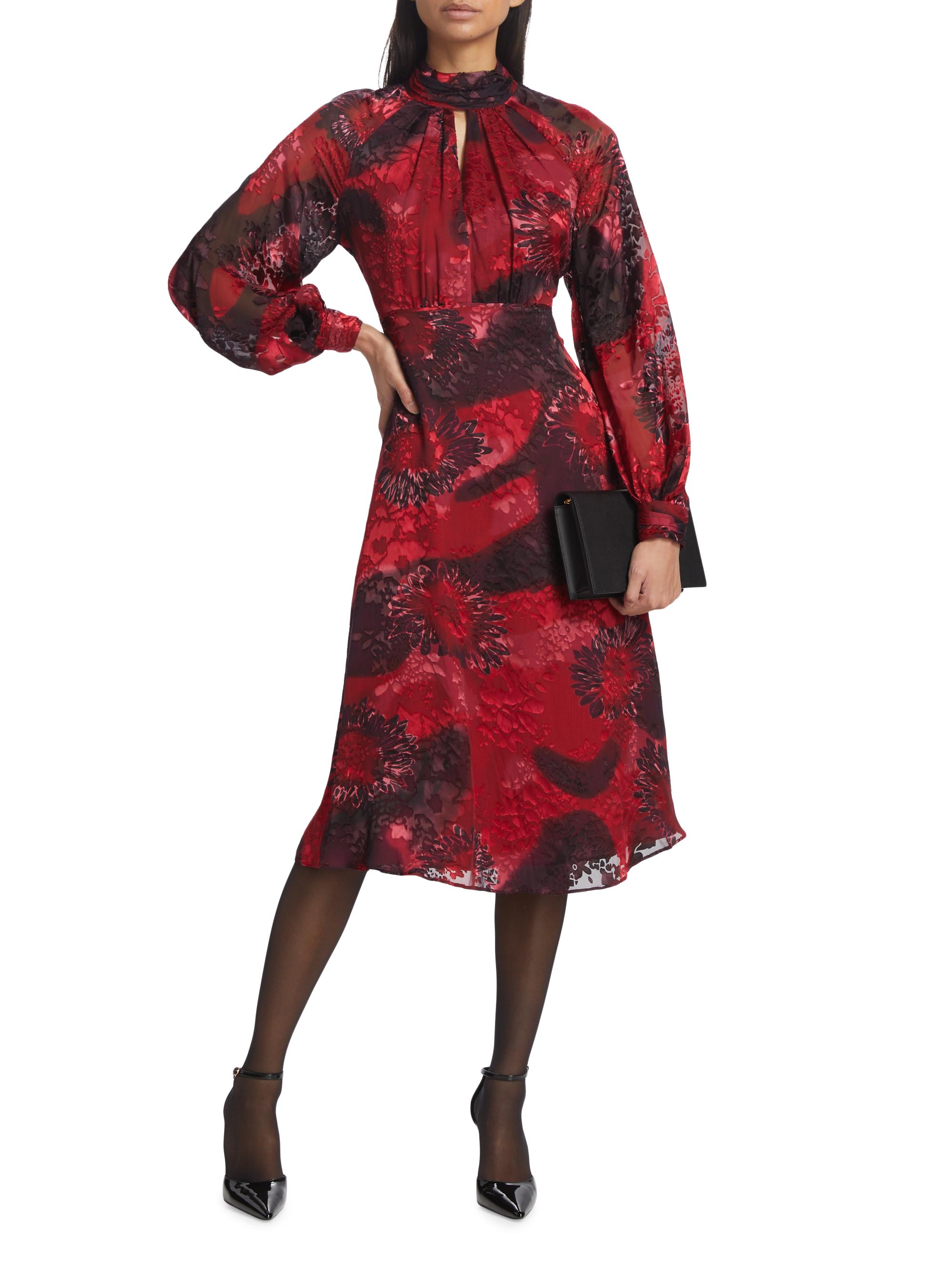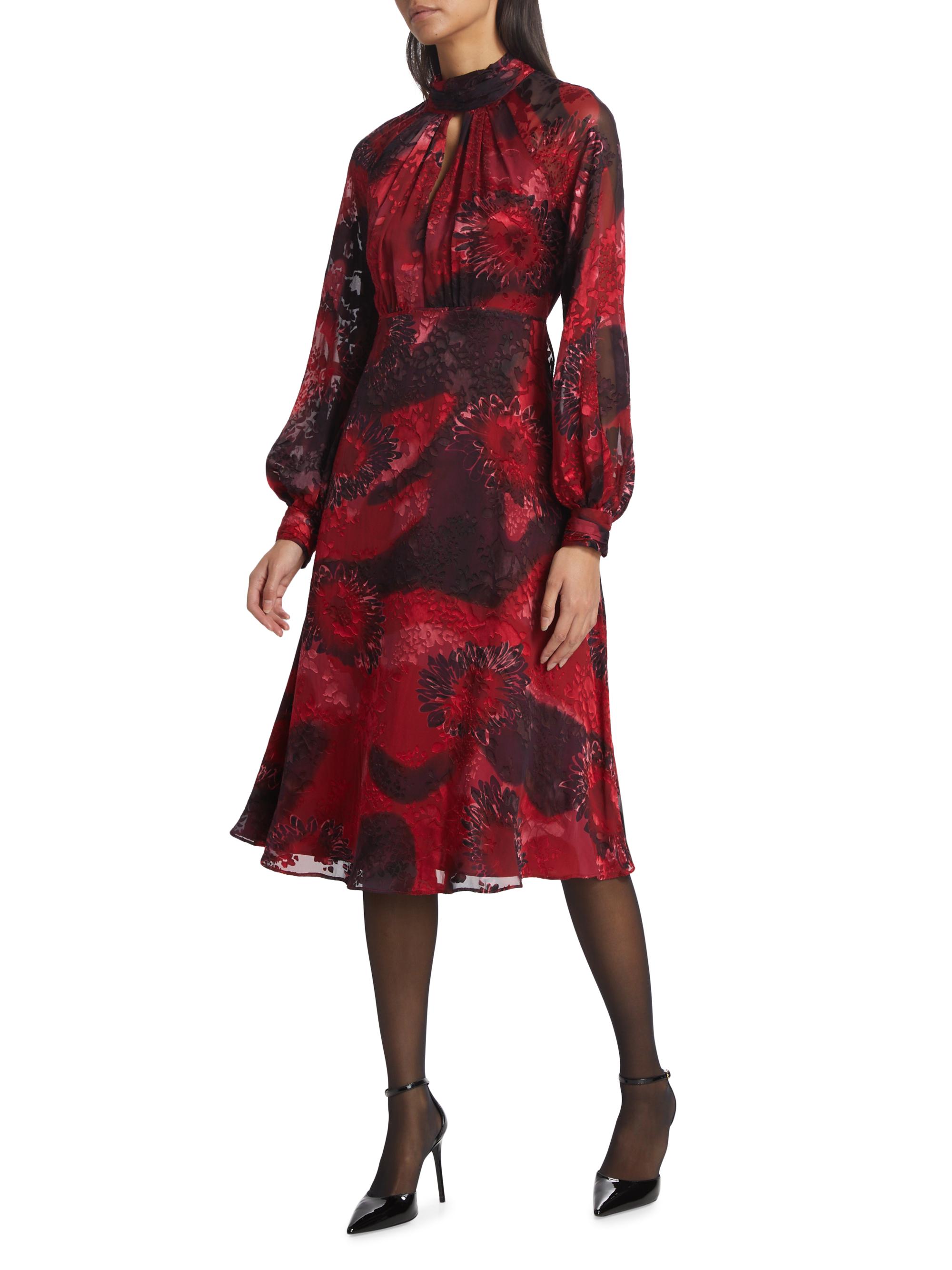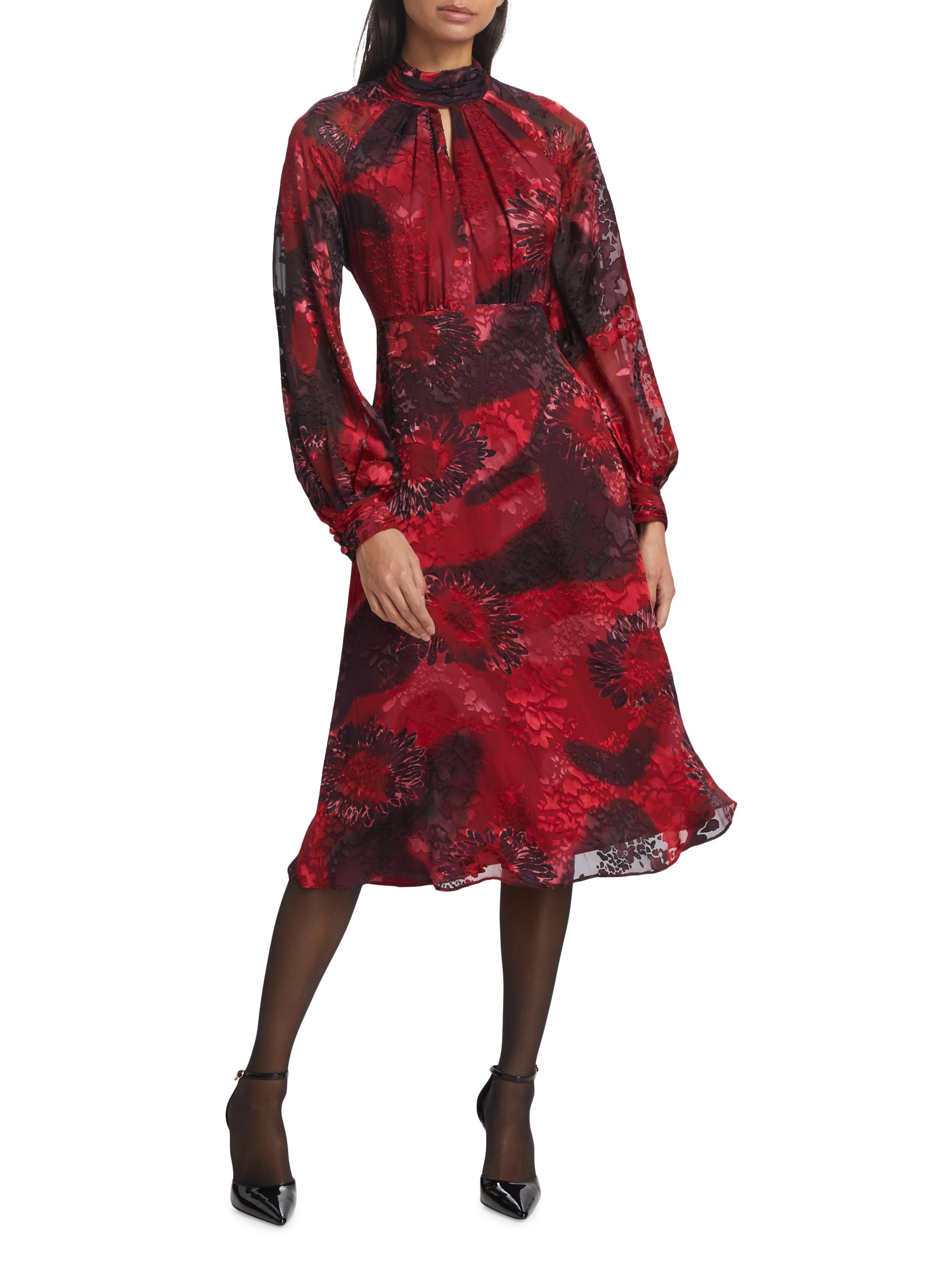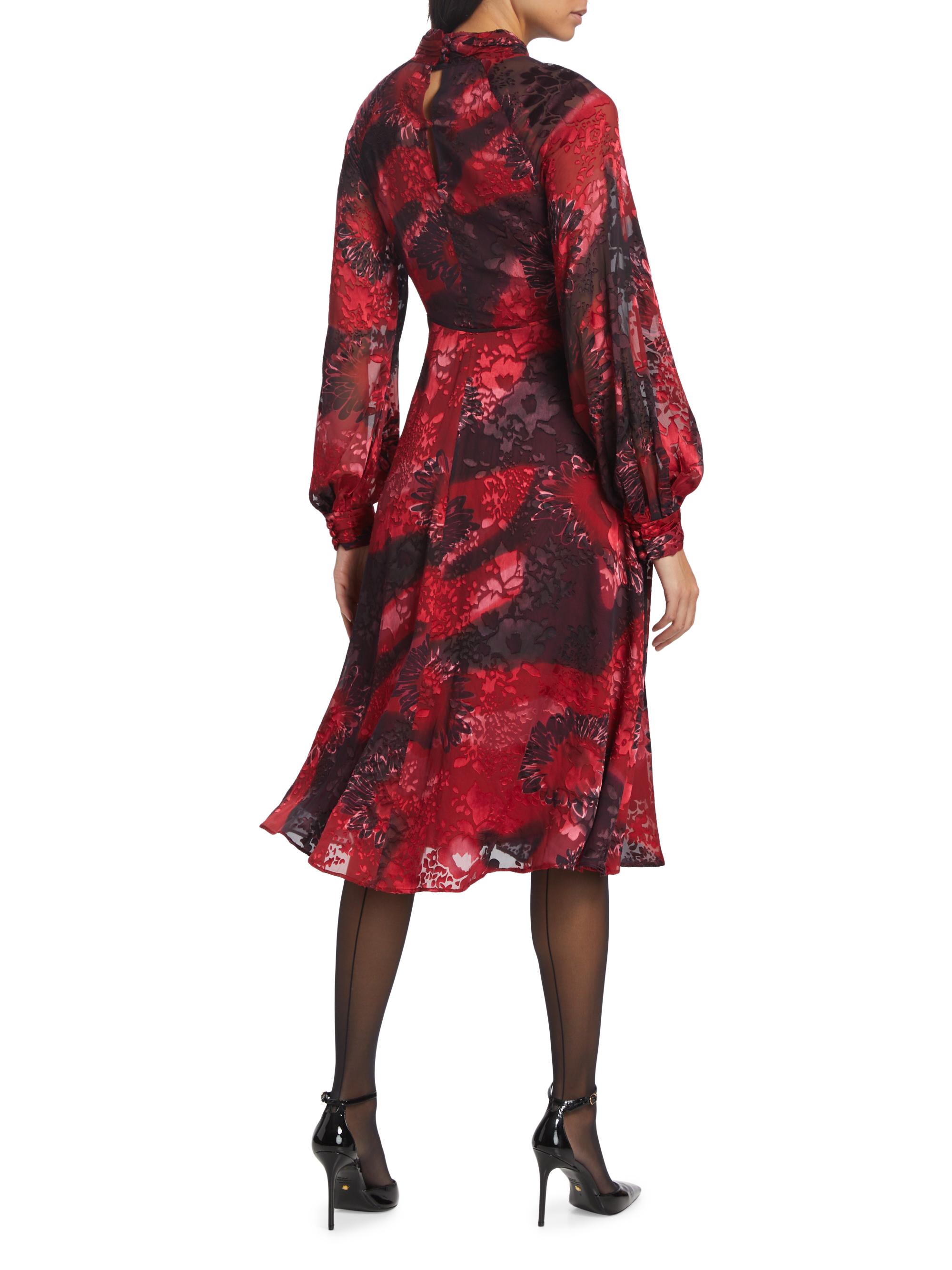 Teri Jon by Rickie Freeman Abstract Floral Chiffon Midi-Dress