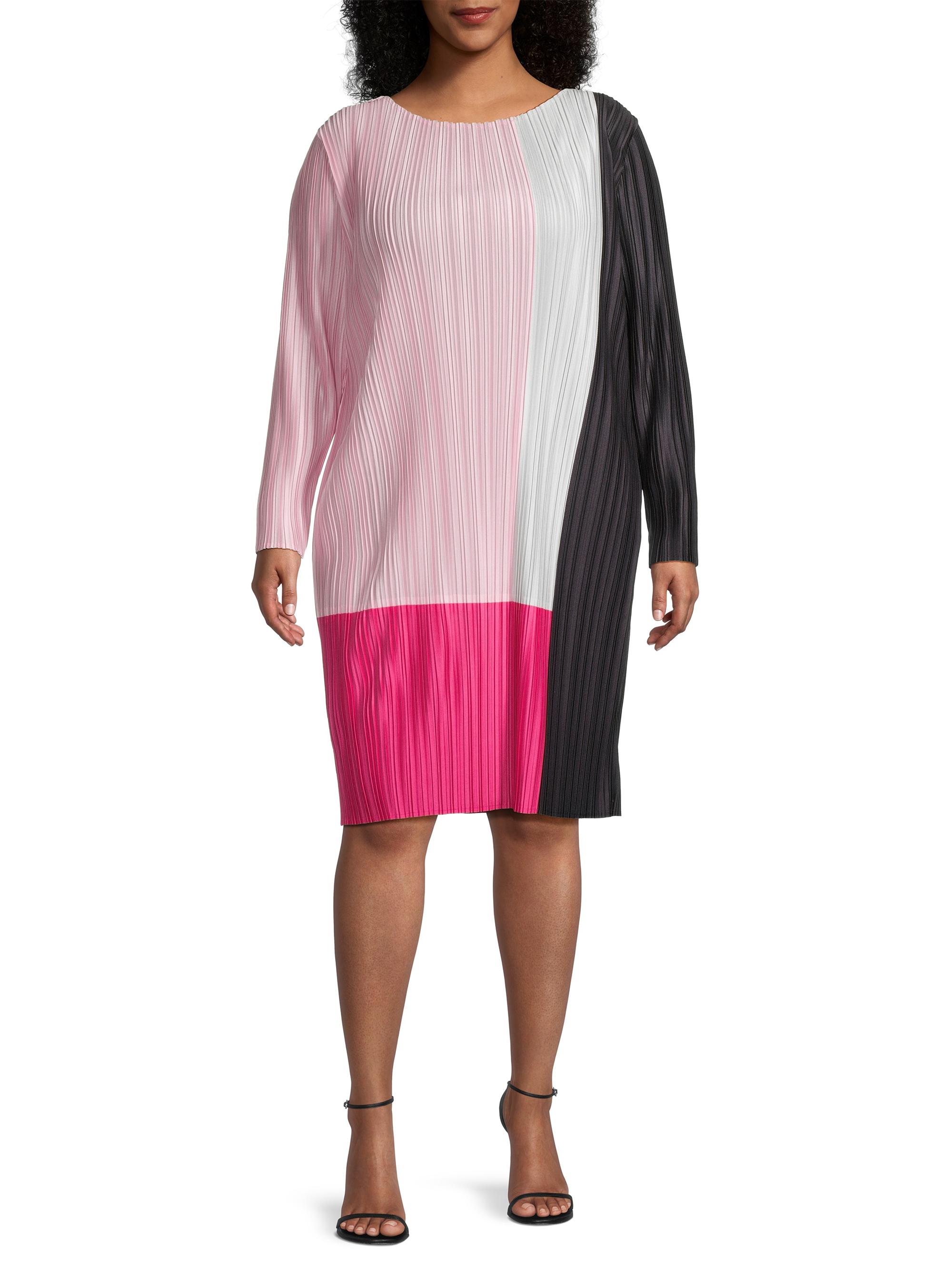 Ming Wang, Plus Size Colorblocked Knee-Length Dress