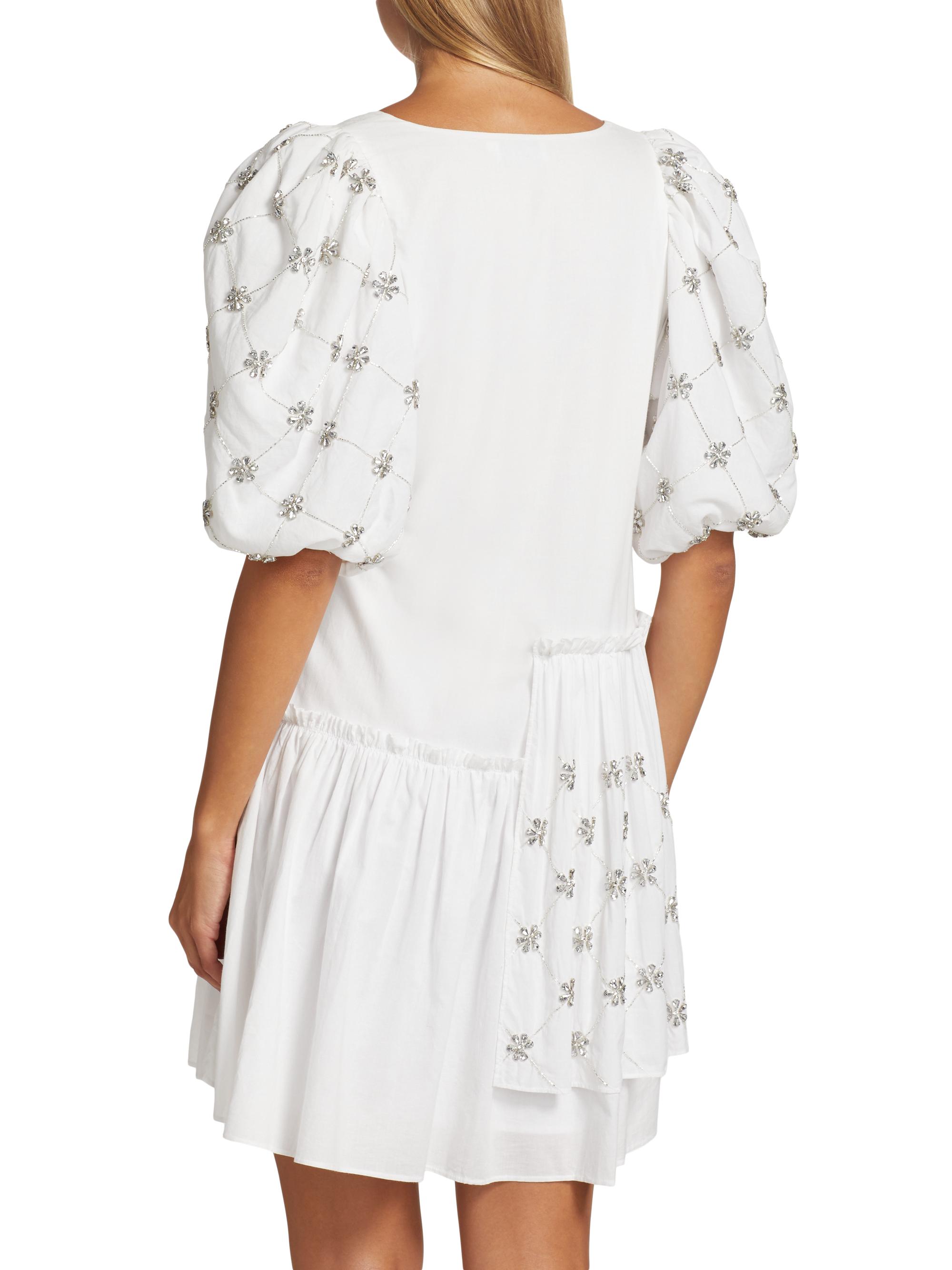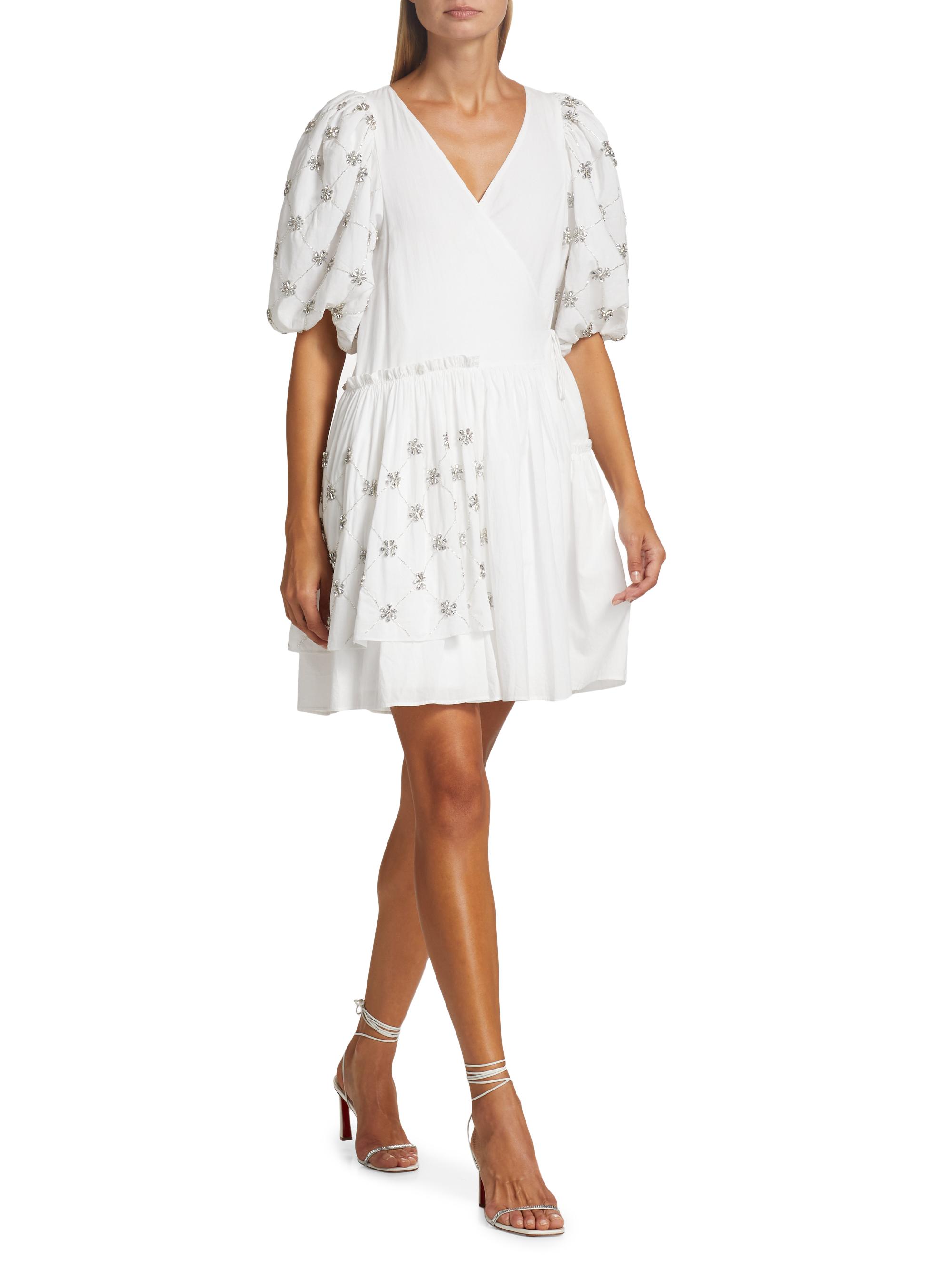 Rhode Elsa Embellished Cotton Wrap Minidress