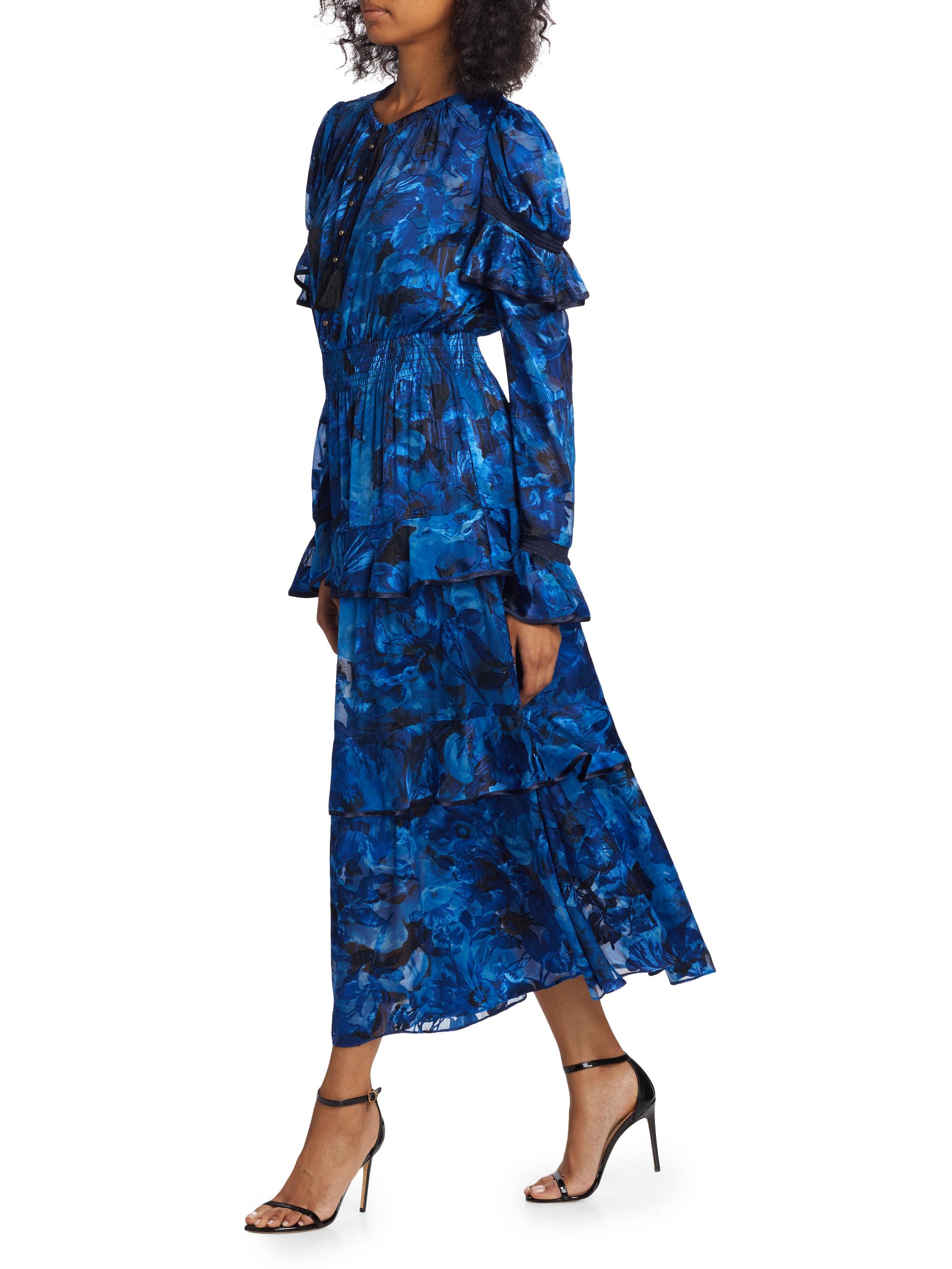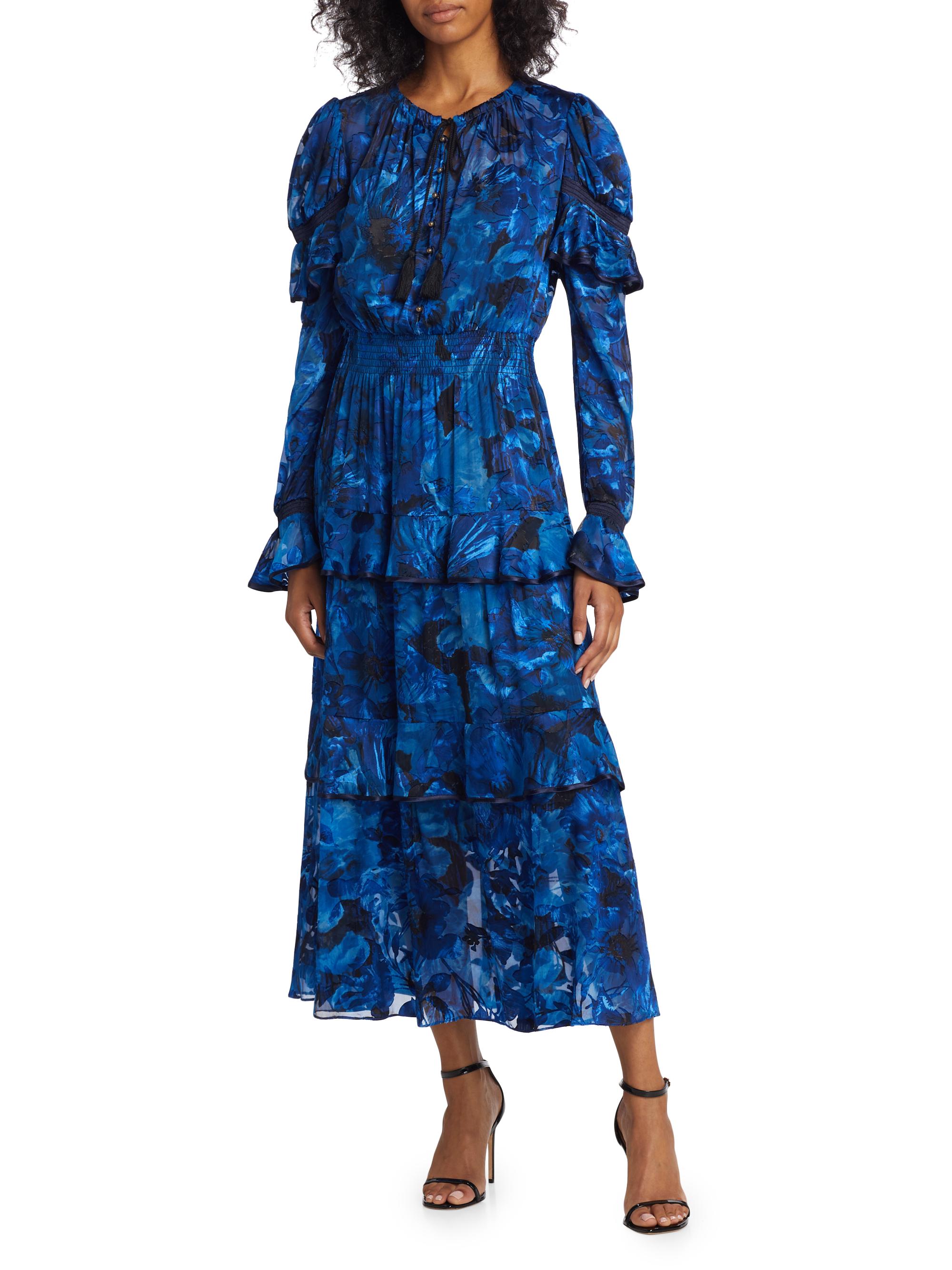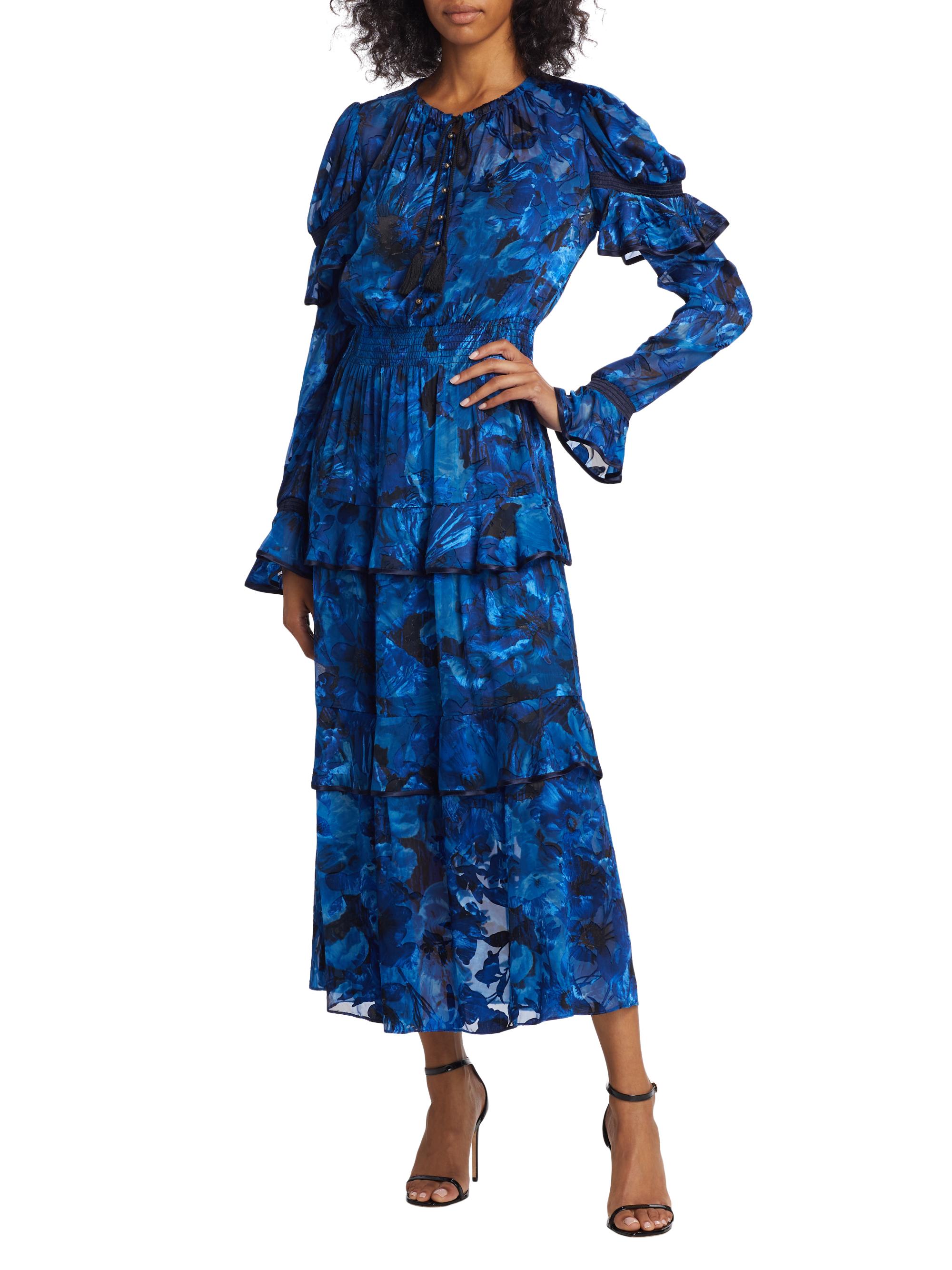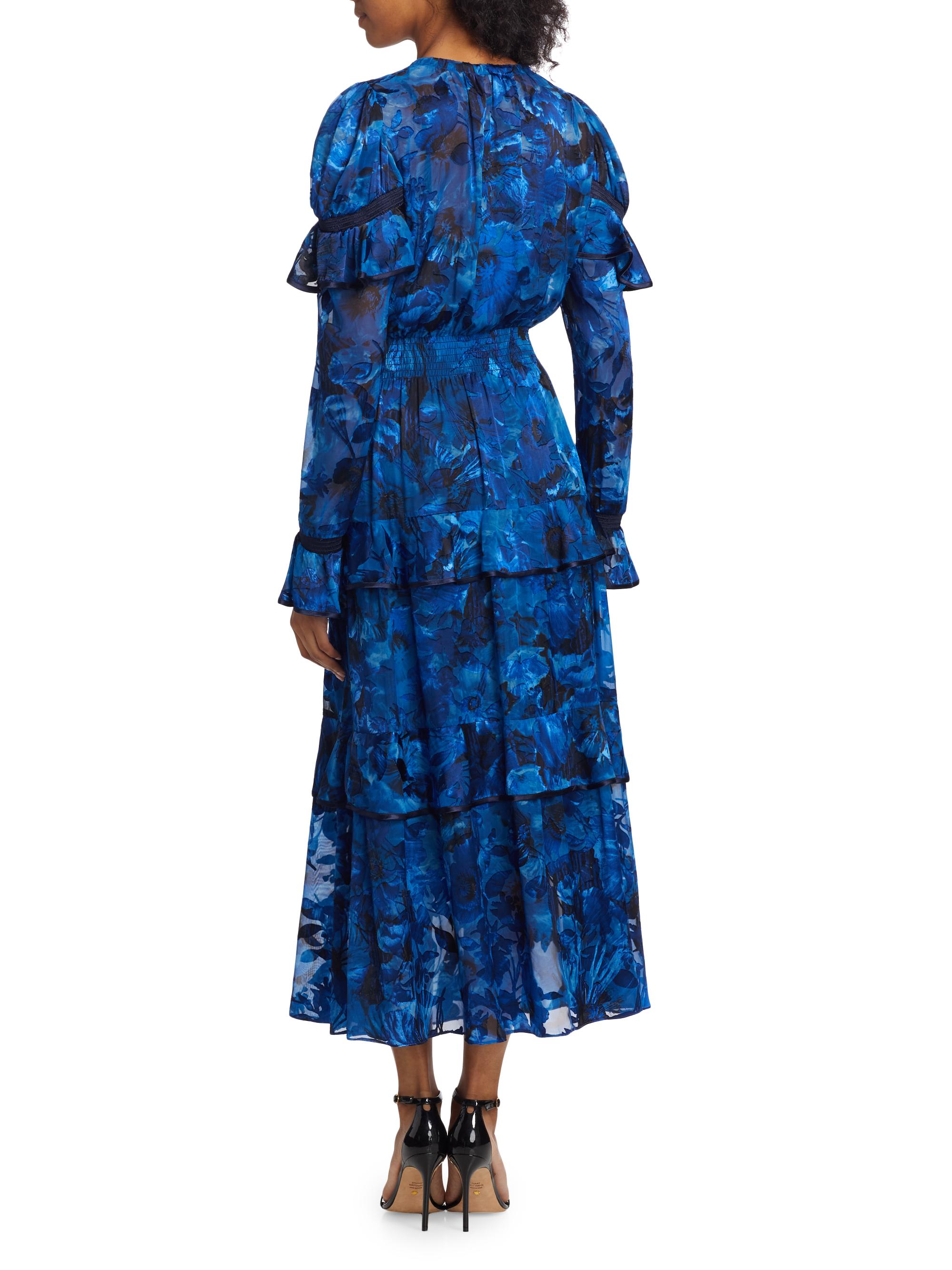Marchesa Rosa Diantha Tiered Floral Midi-Dress