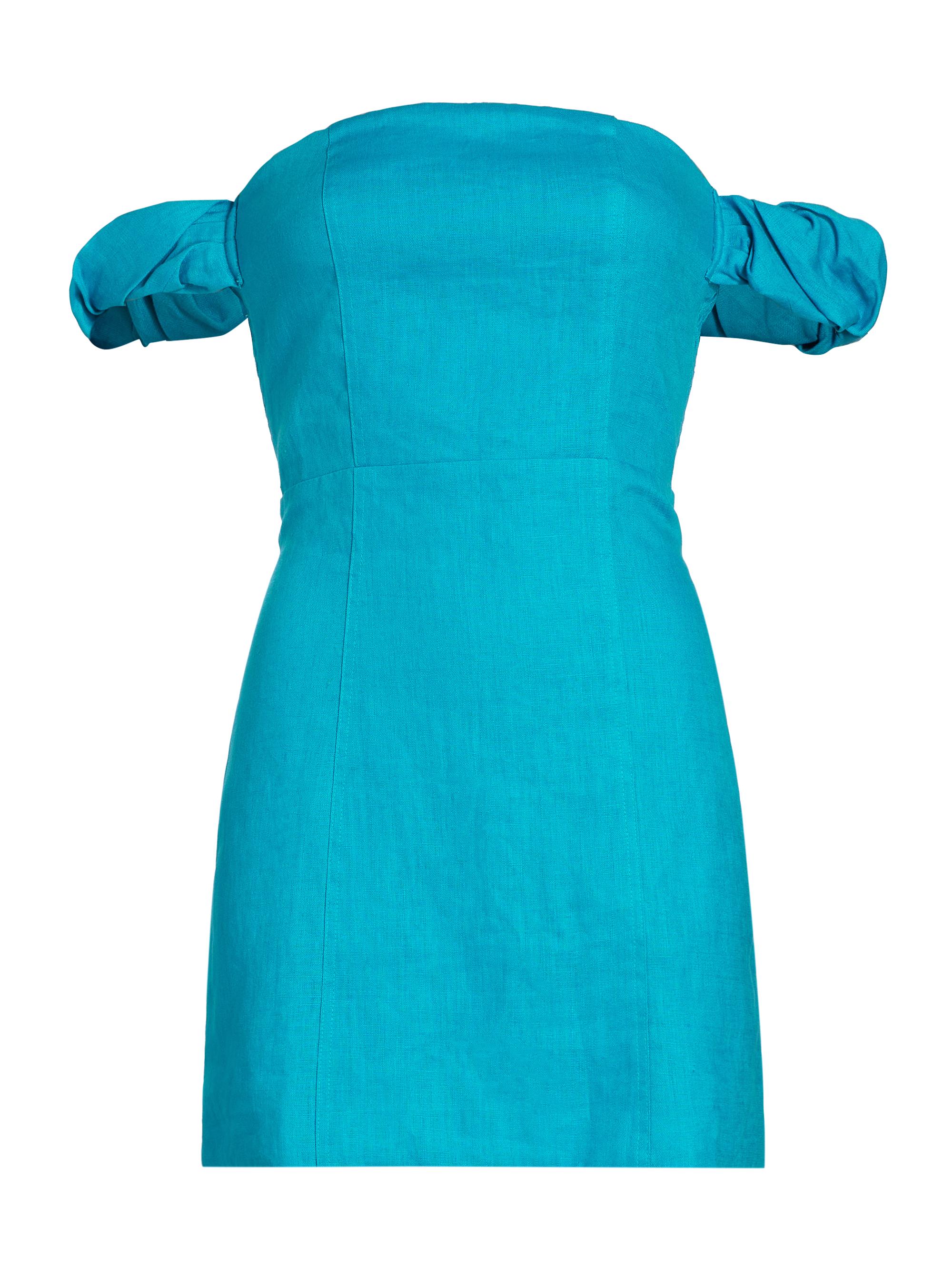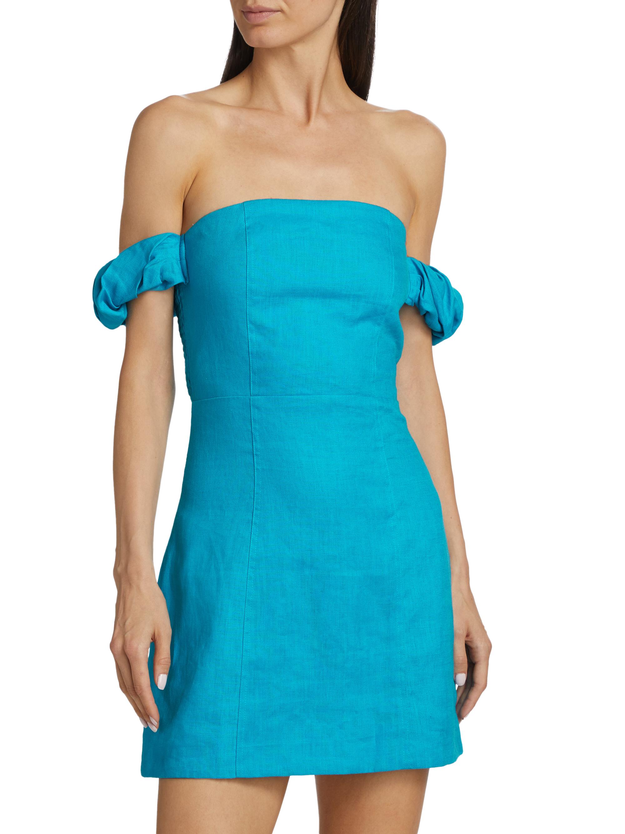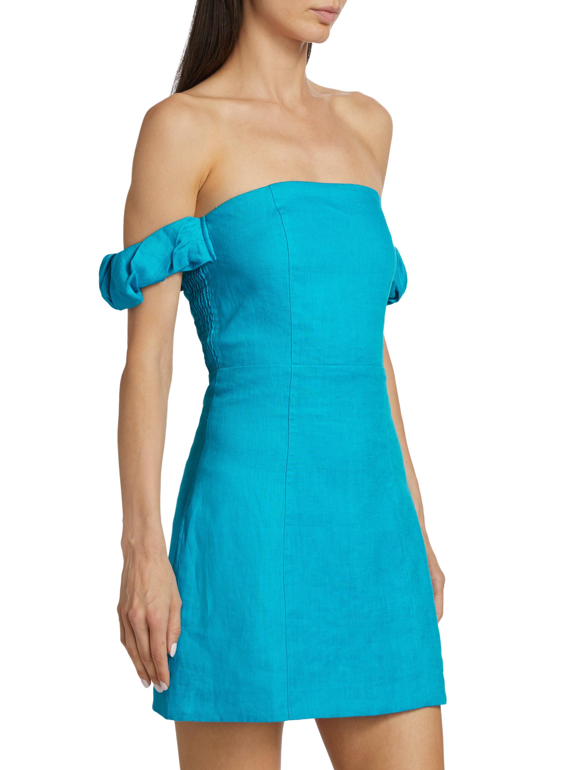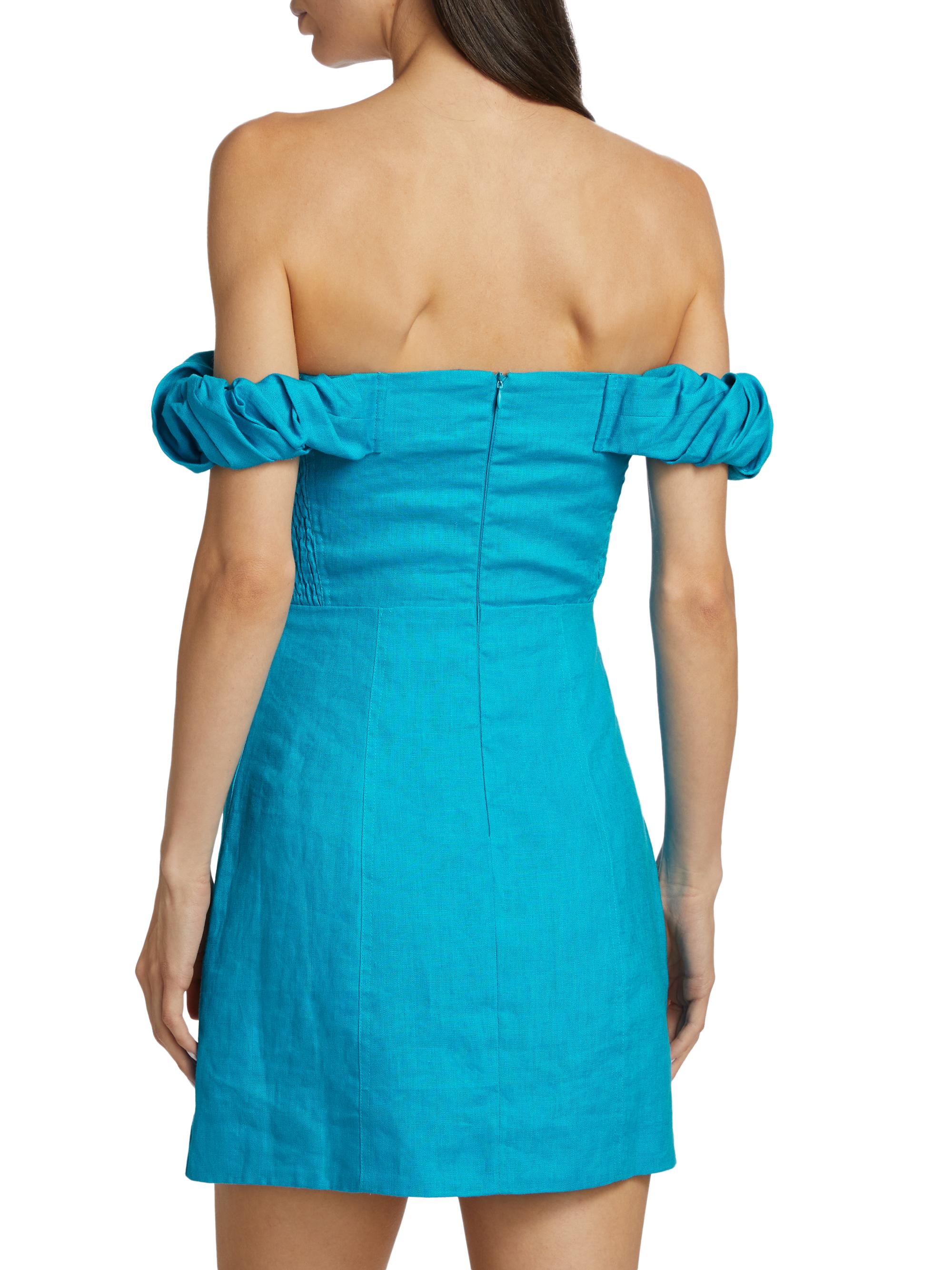 Hevron Sari Off-The-Shoulder Linen Minidress