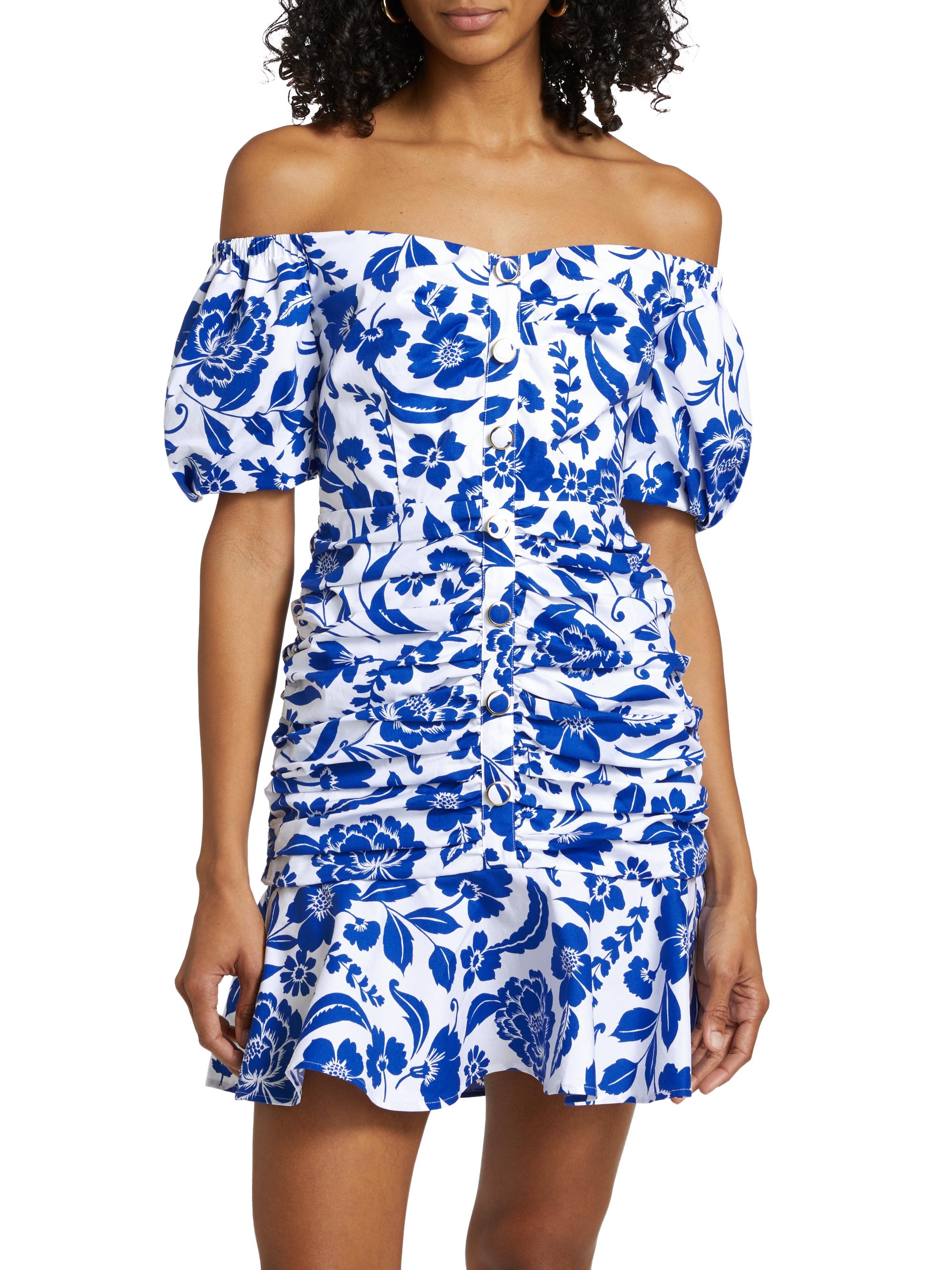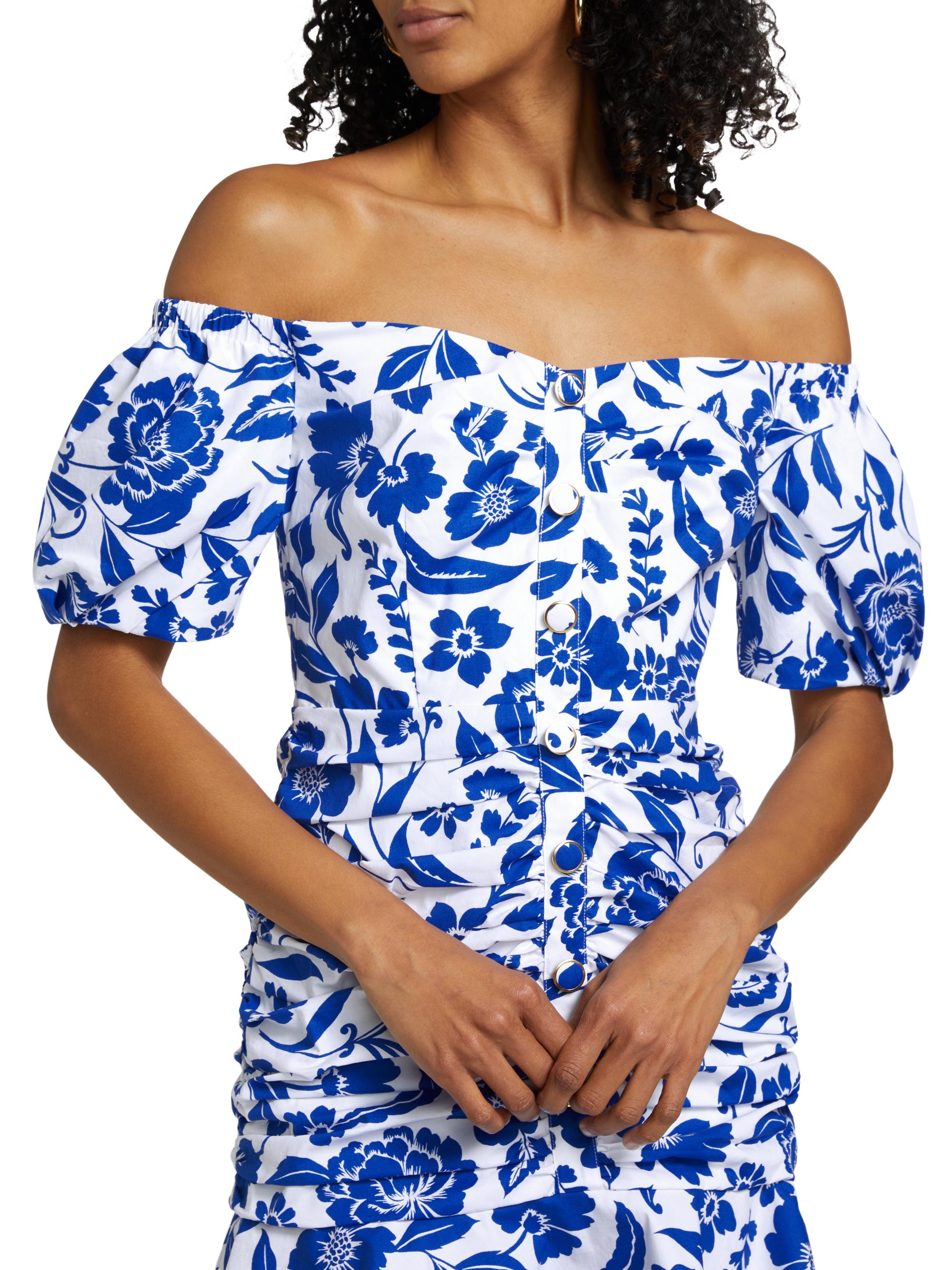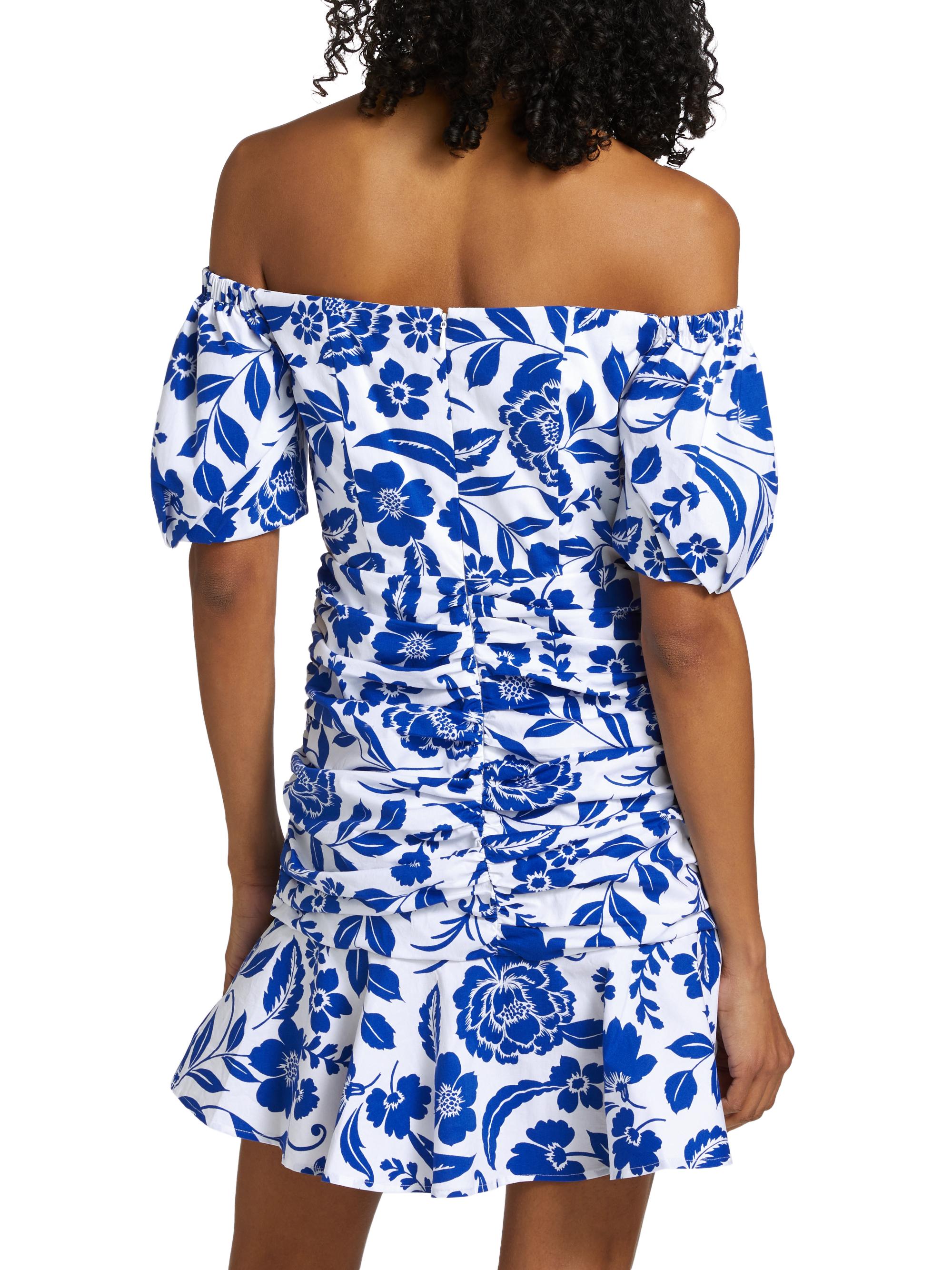Milly Flowers Of Spain Ruched Cotton Poplin Minidress