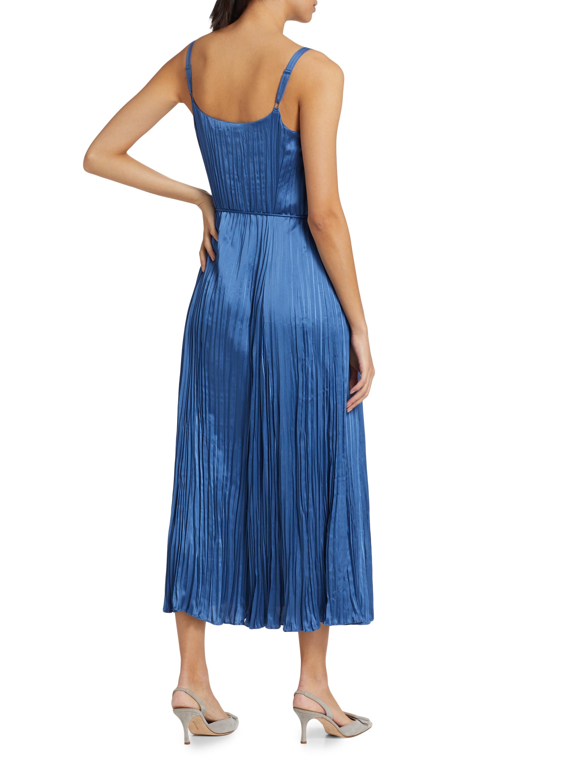 Vince Crushed Satin Pleated Tie-Waist Slip Midi-dress