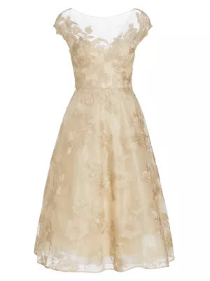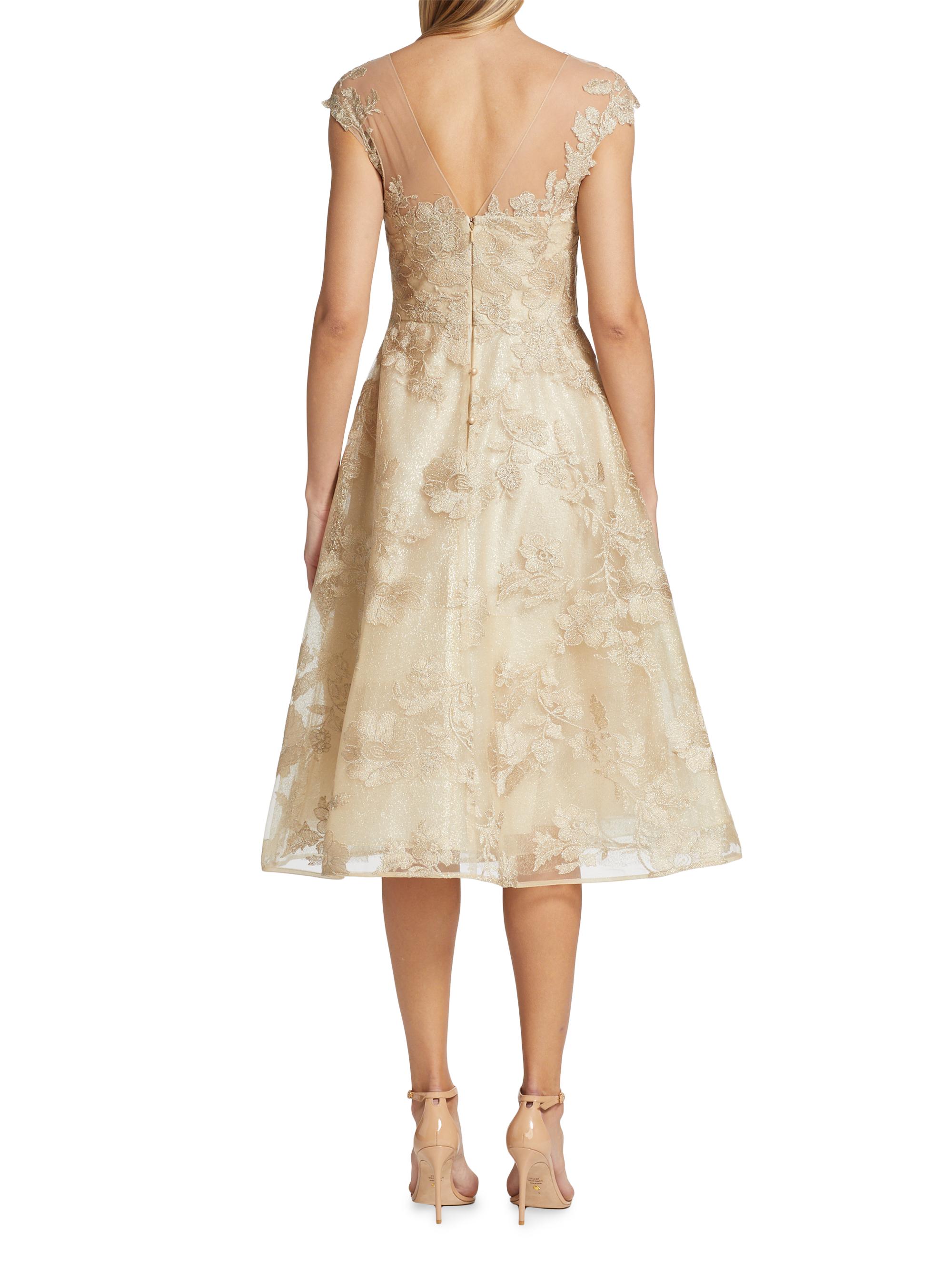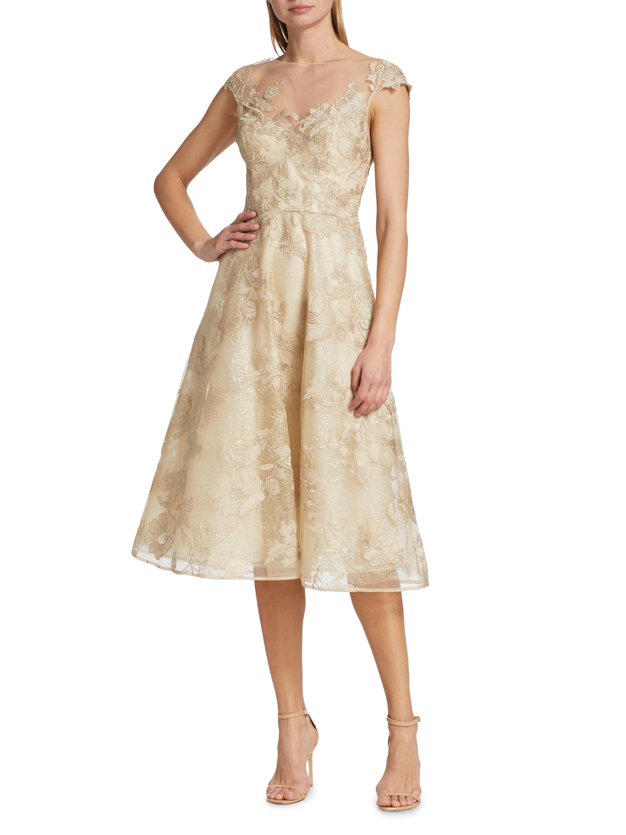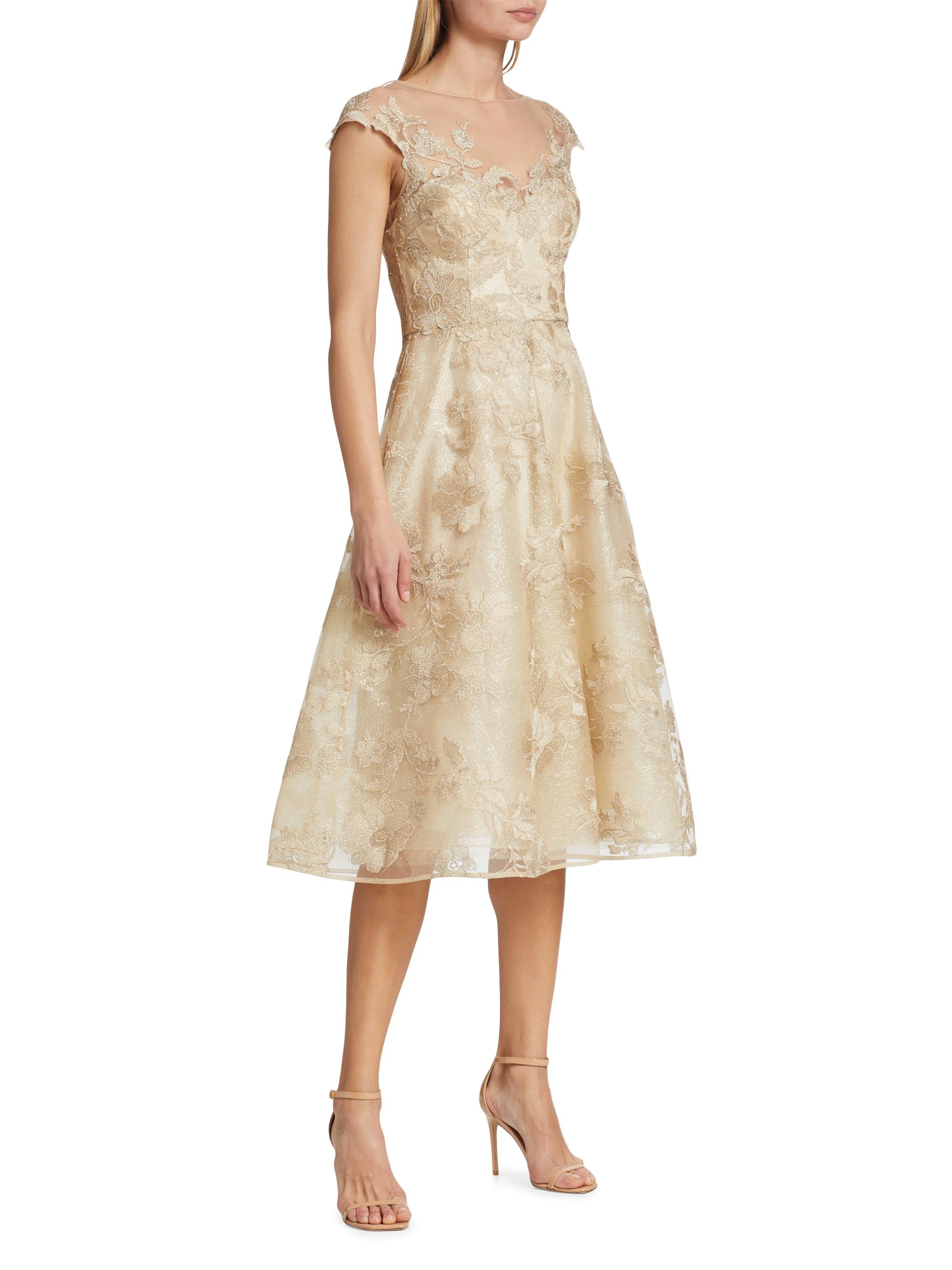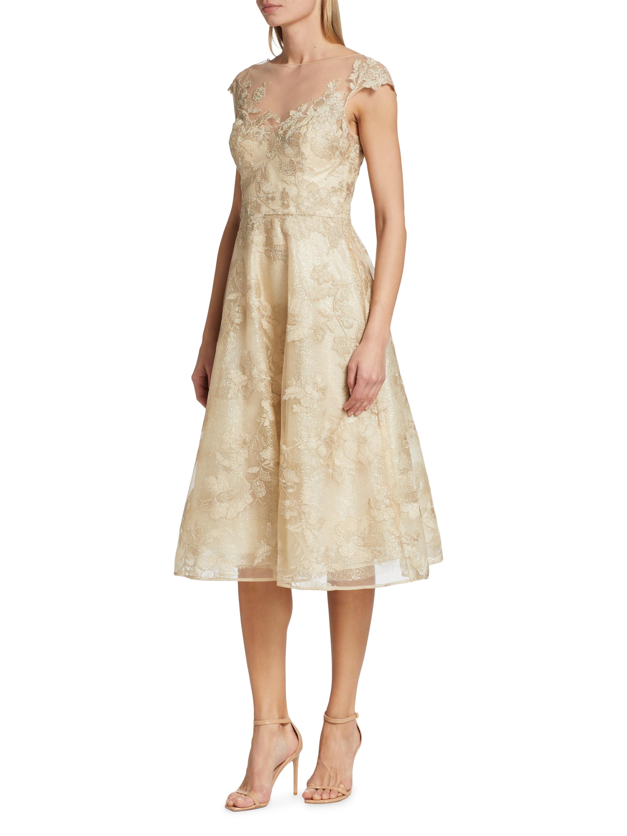 Teri Jon by Rickie Freeman Metallic Floral-Embroidered Midi-Dress