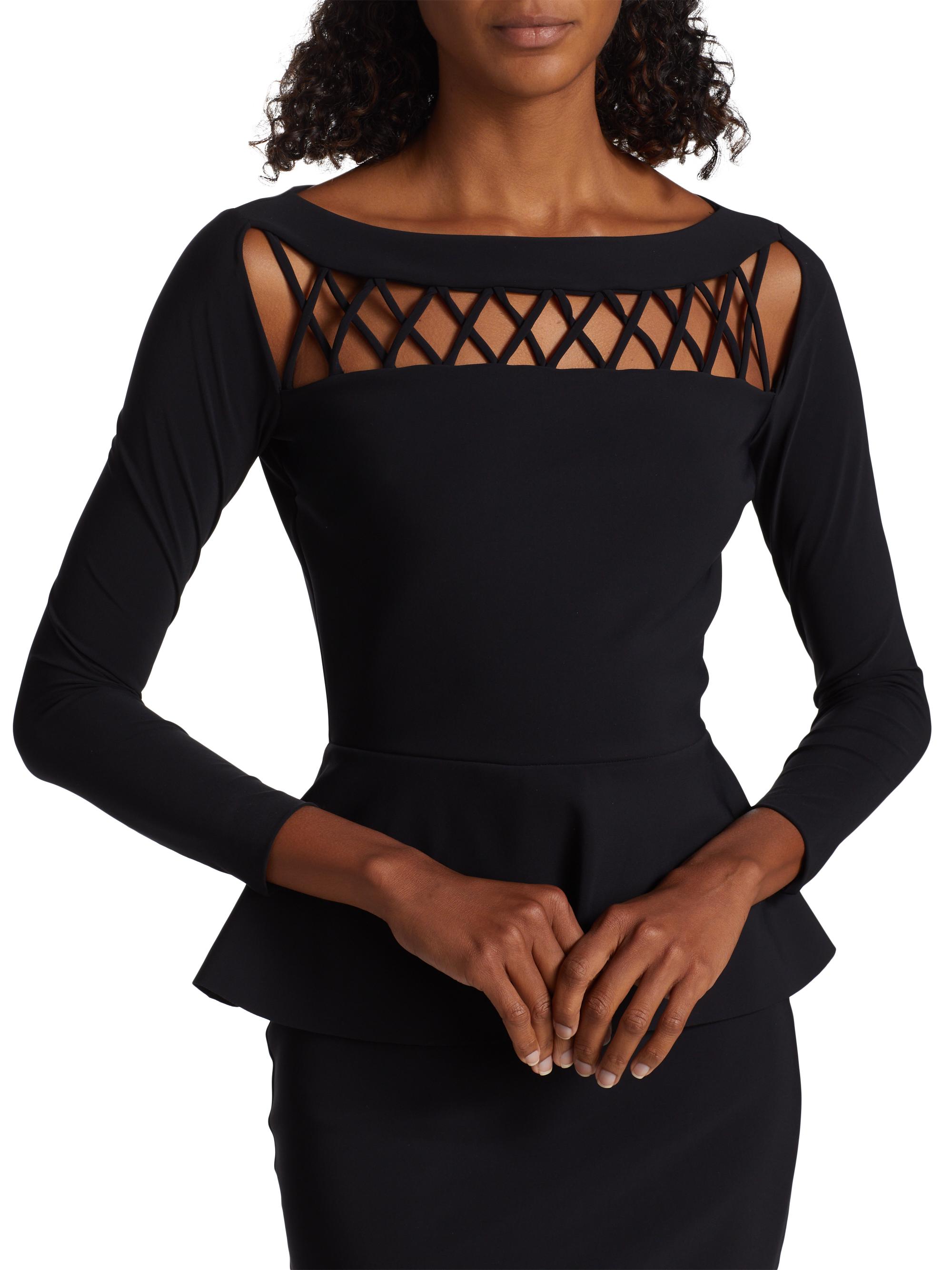 Chiara Boni La Petite Robe Lila Mixed-Media Peplum Midi-Dress