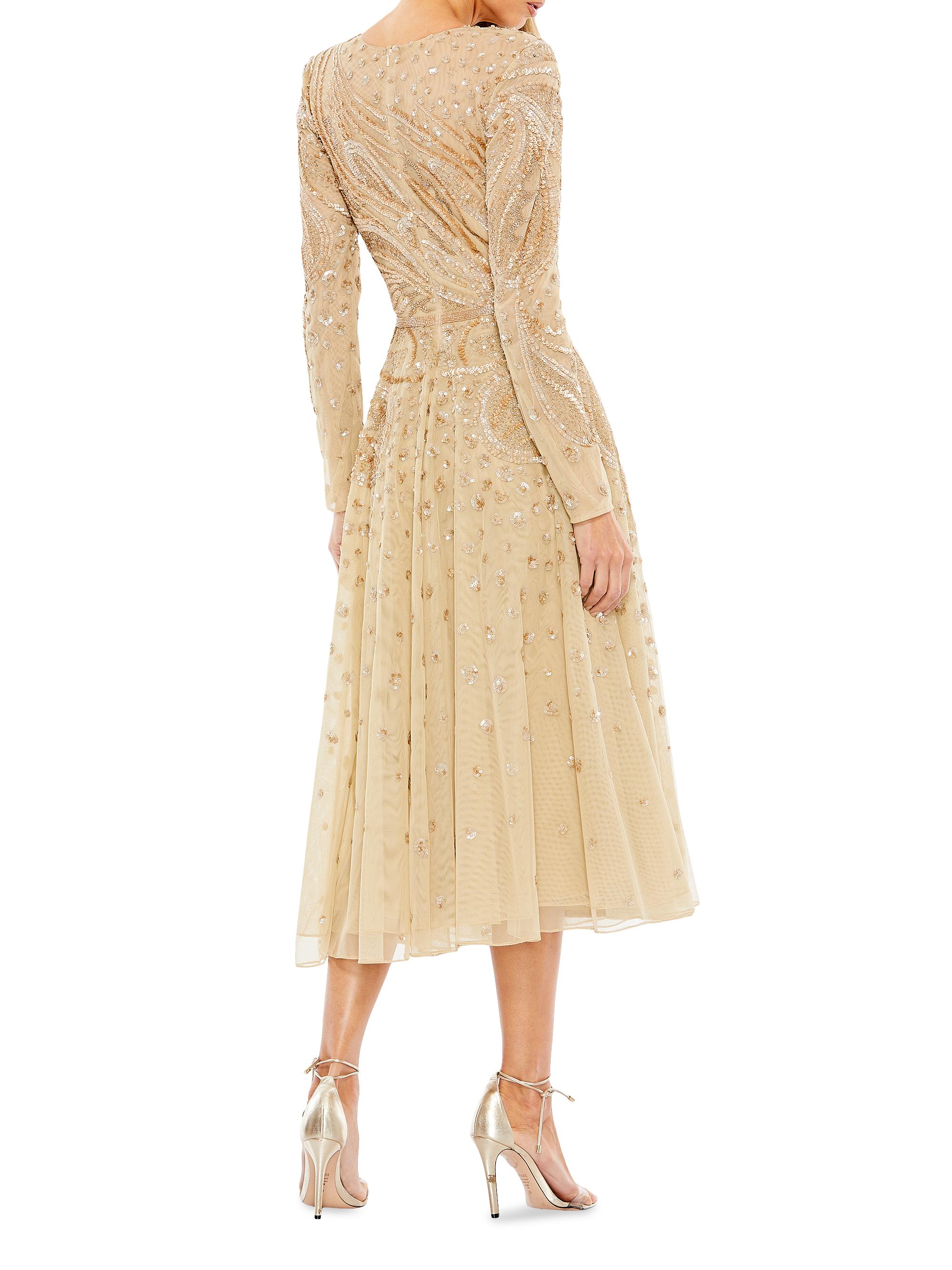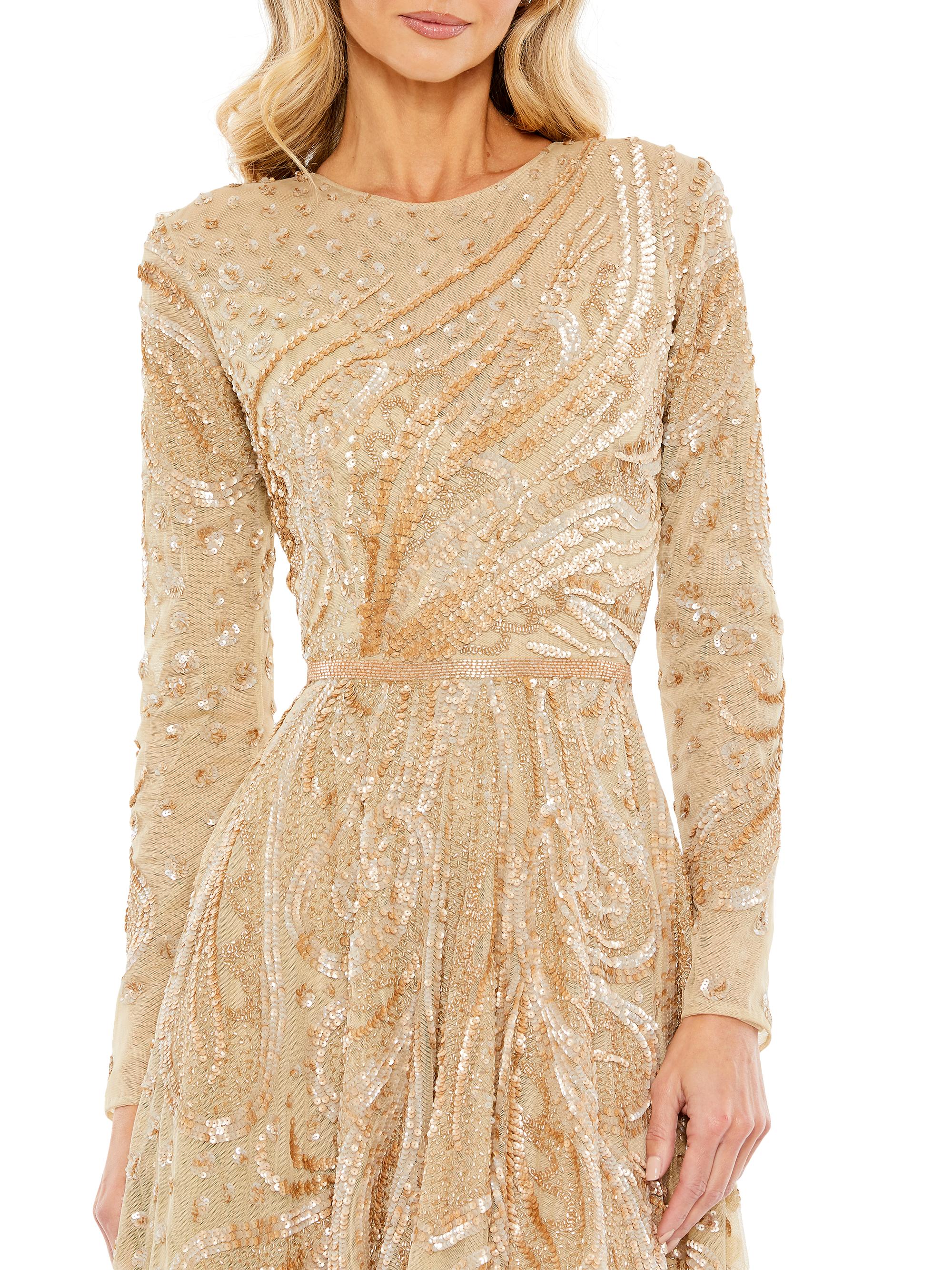 Mac Duggal Embellished Illusion Long-Sleeve Dress