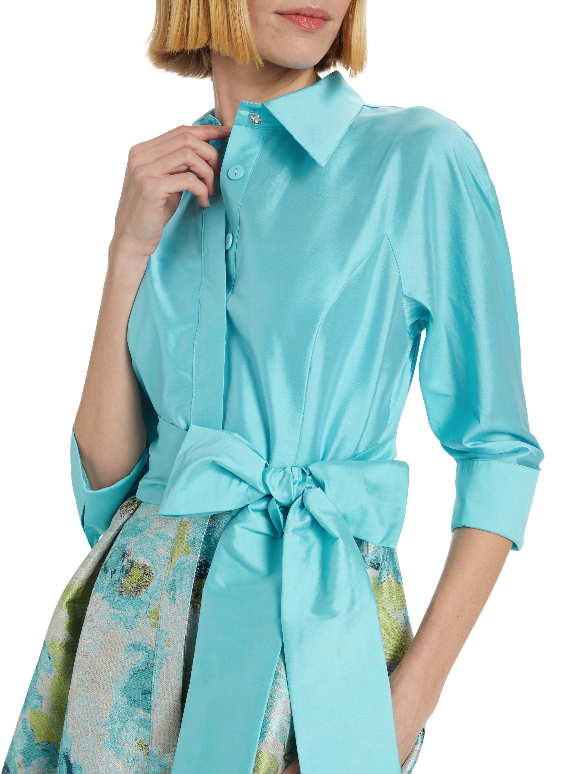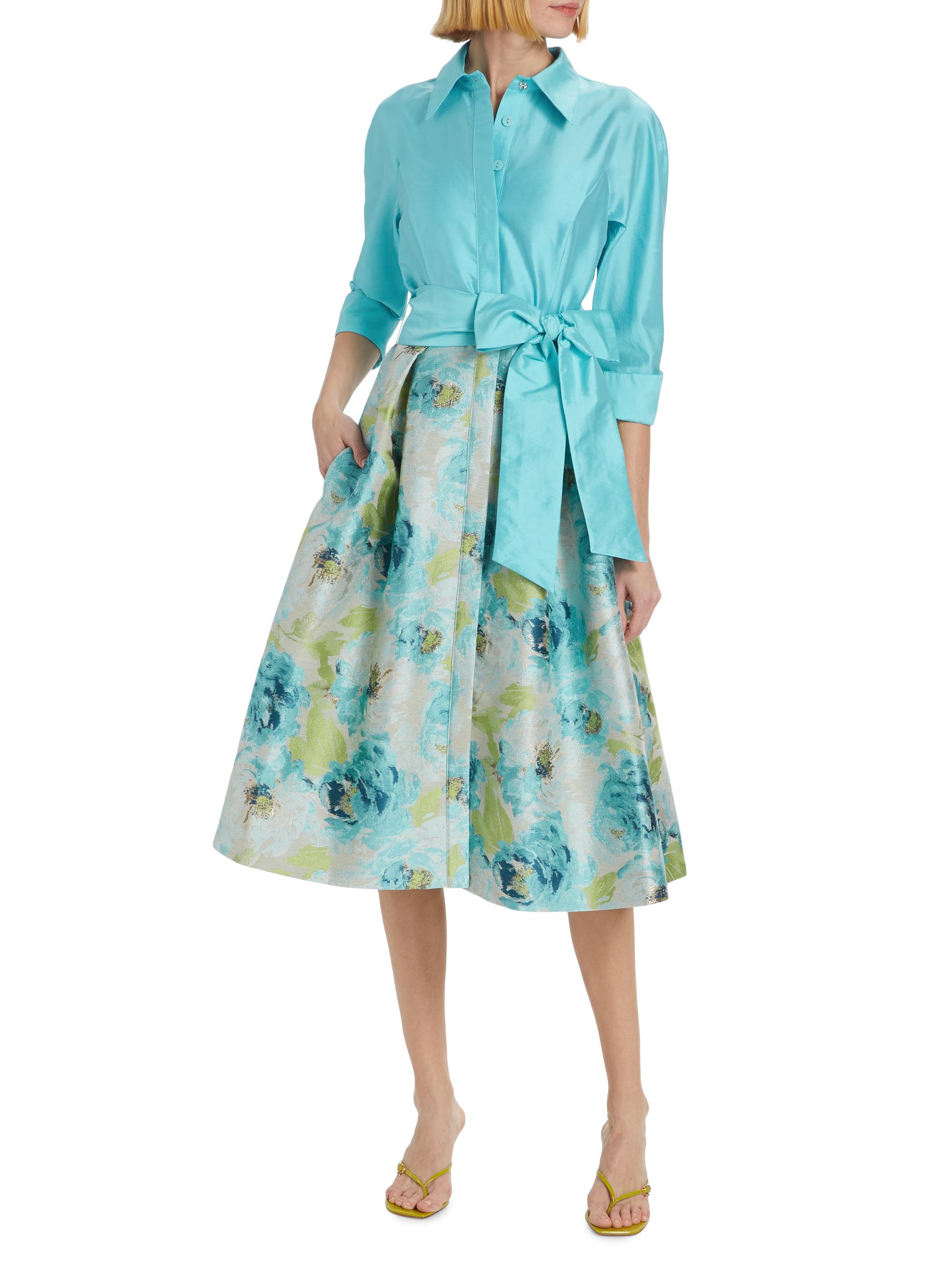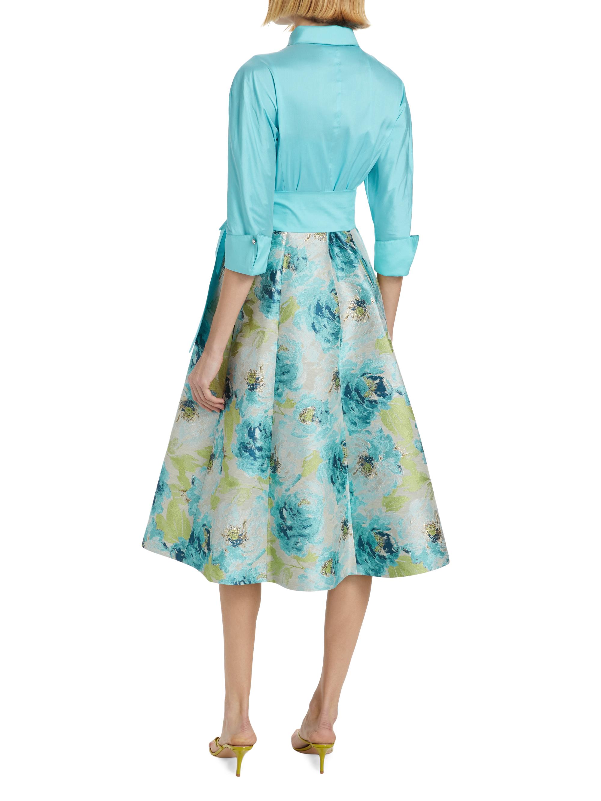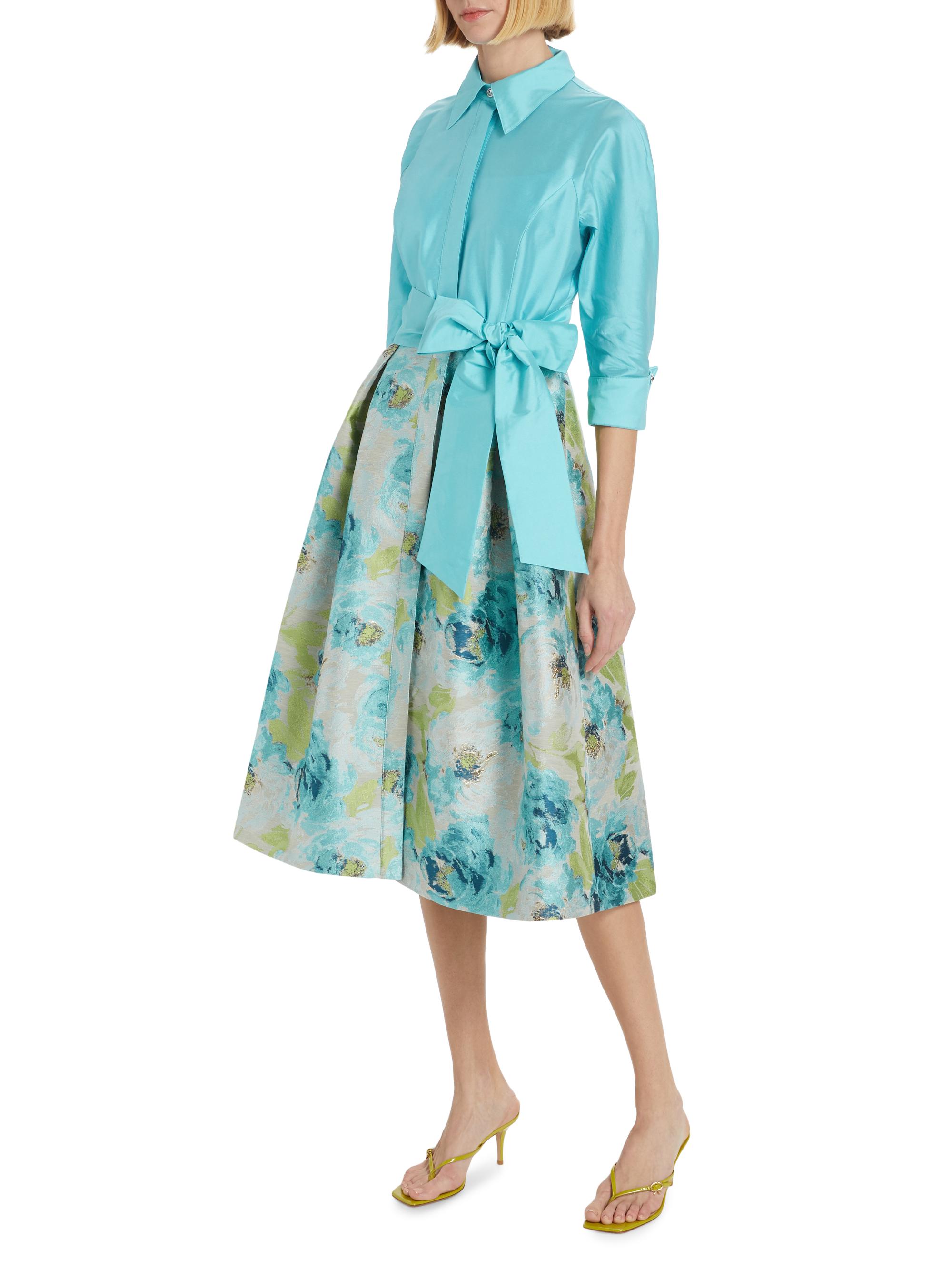 Teri Jon by Rickie Freeman Taffeta & Floral Jacquard Bow Cocktail Dress