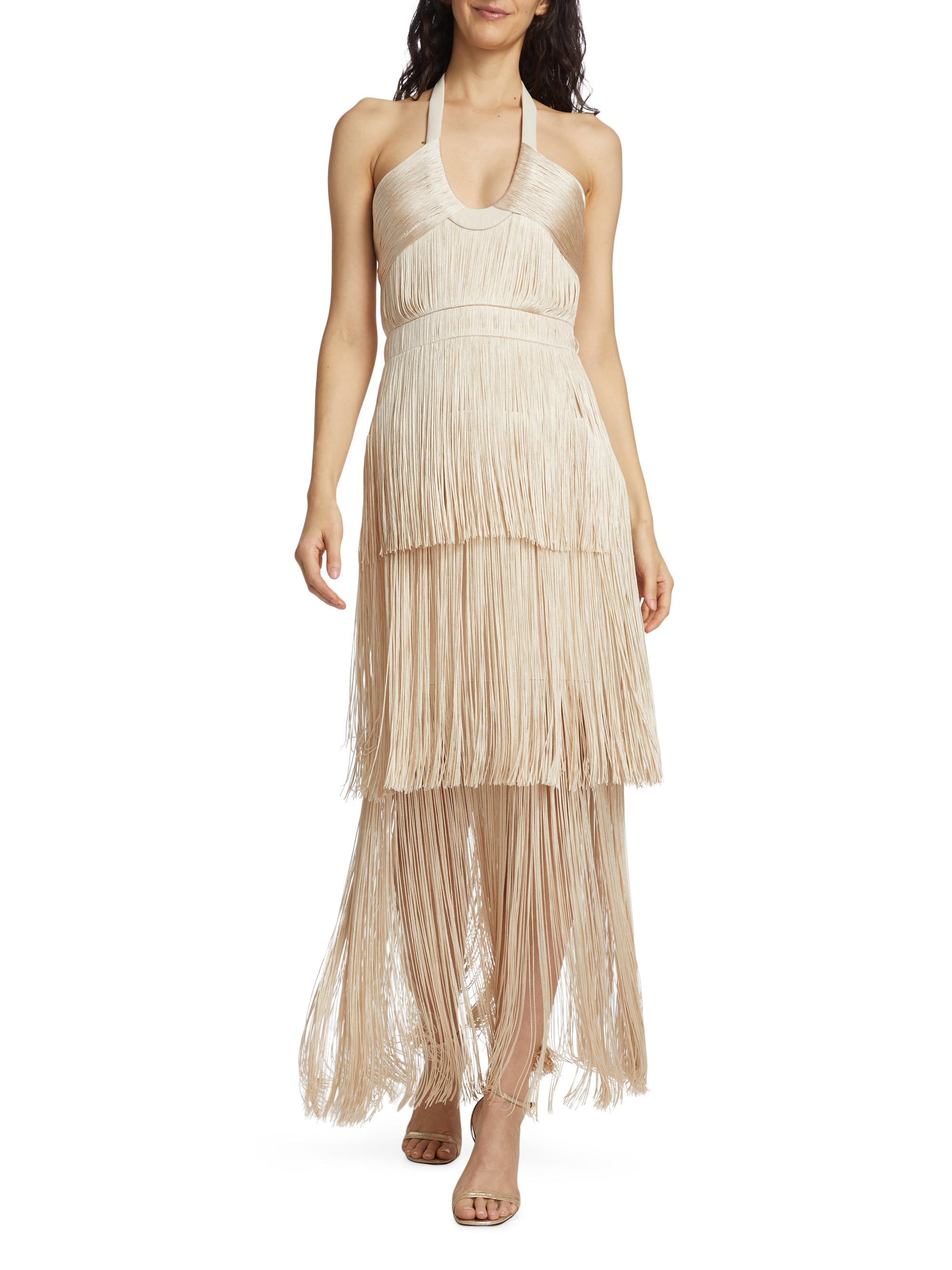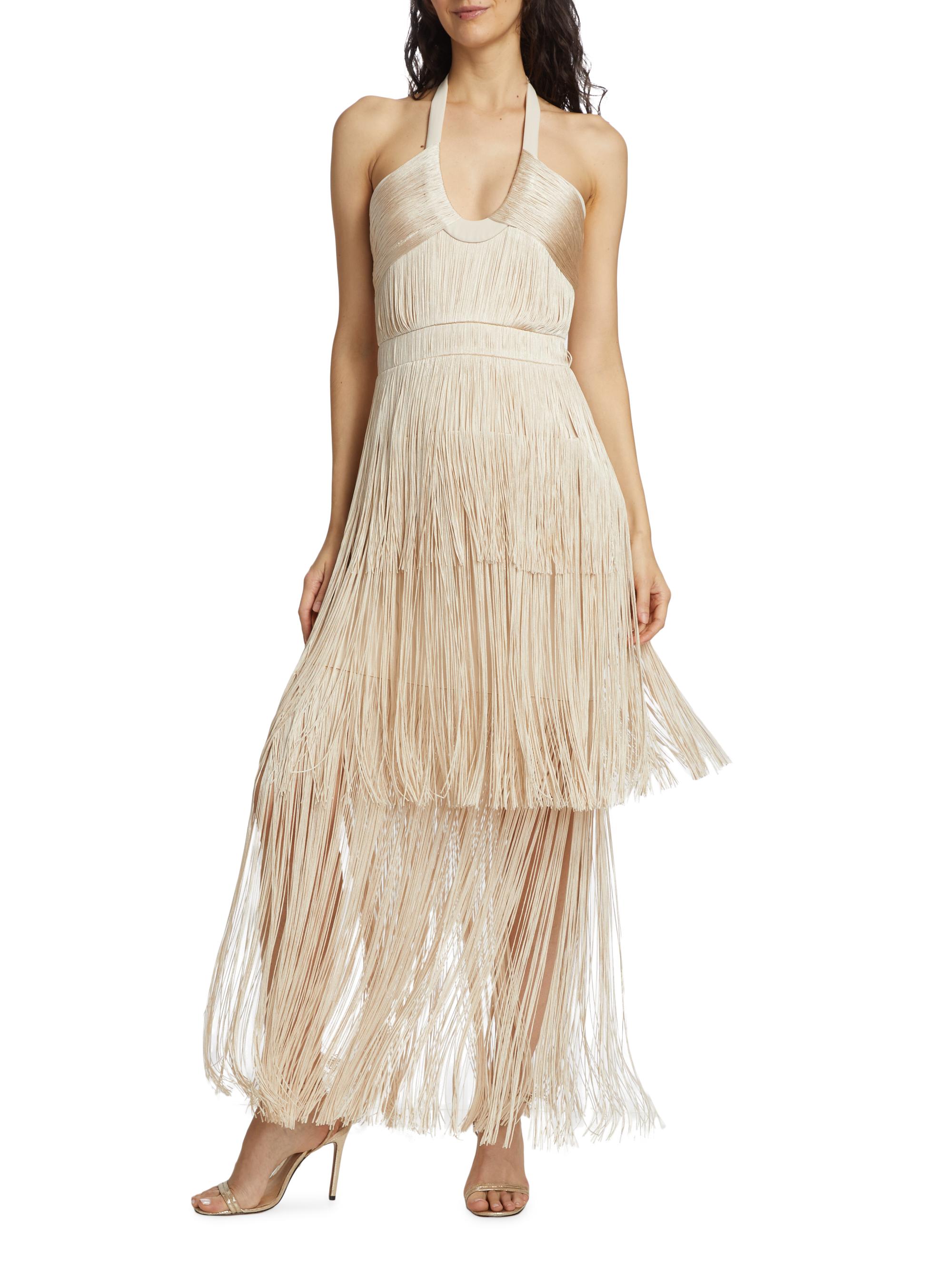 SIMKHAI Baldwin Draped Fring Halter Midi-Dress