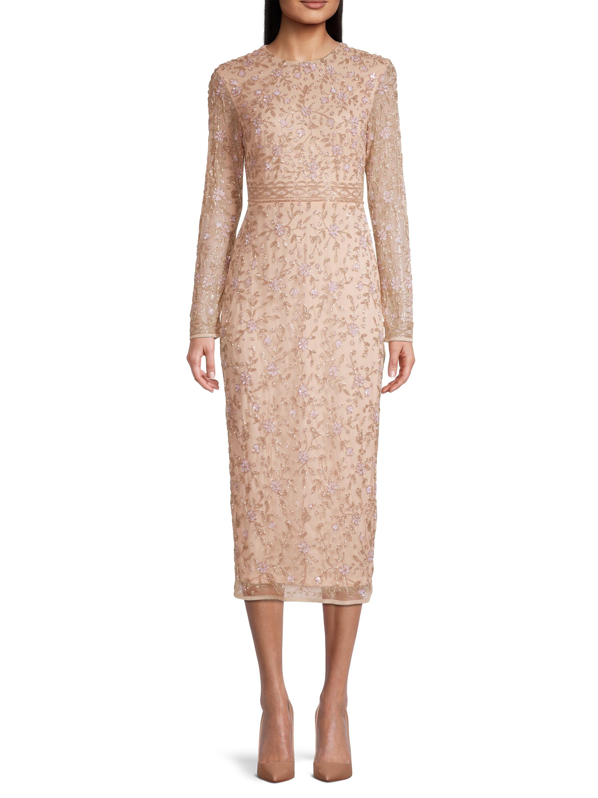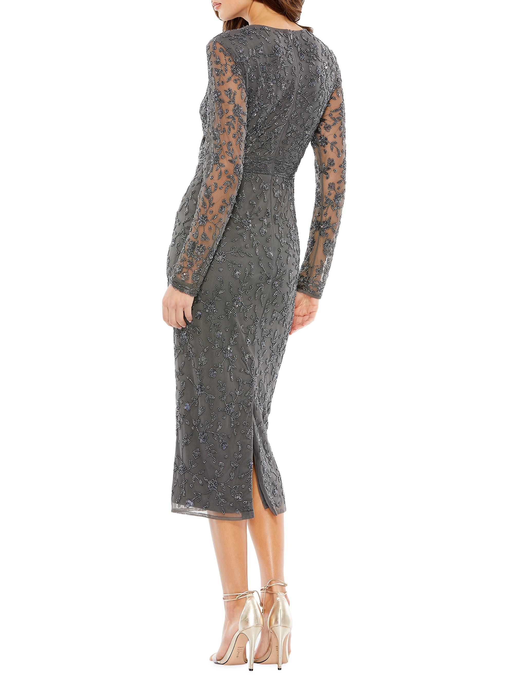 Mac Duggal Floral Beaded Long Sleeve Sheath Dress